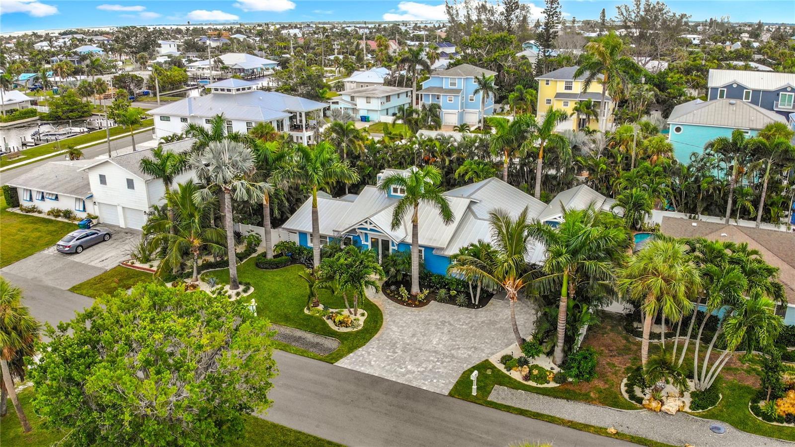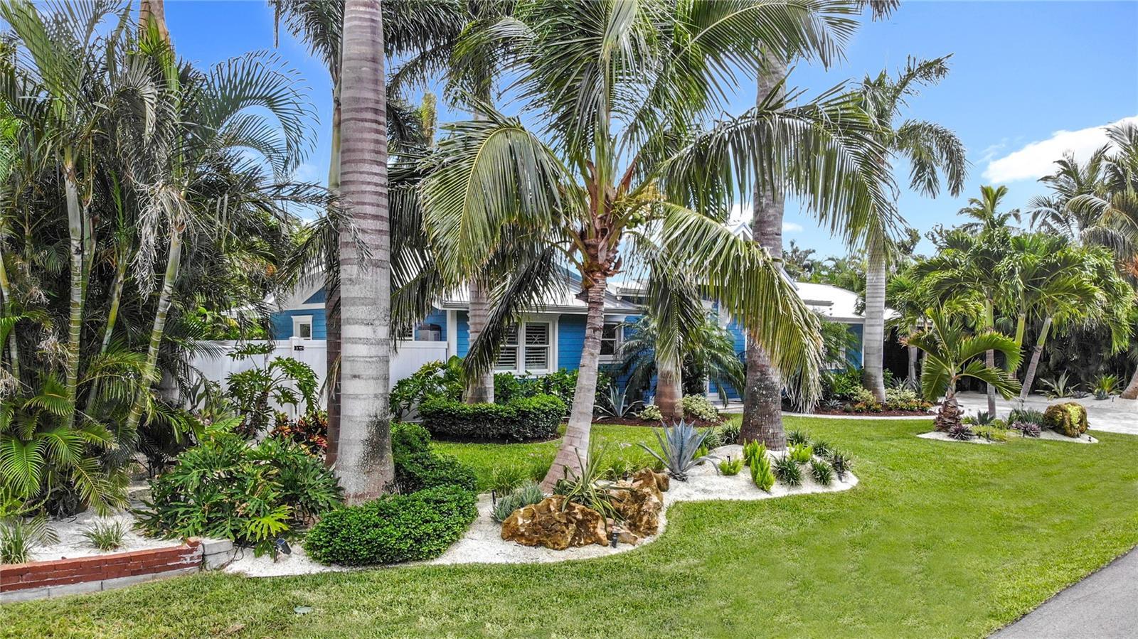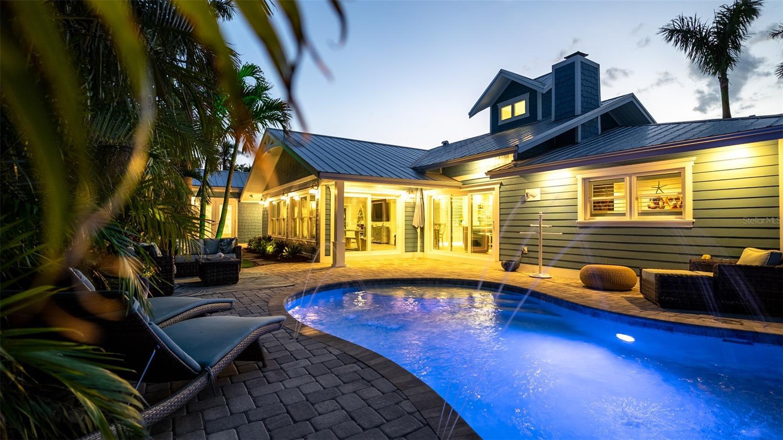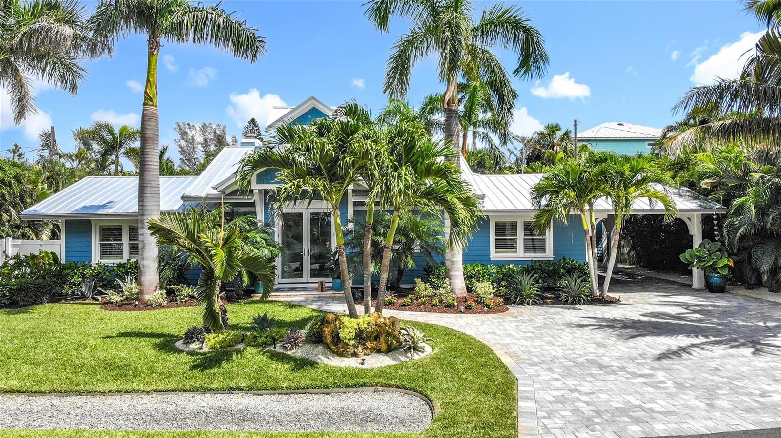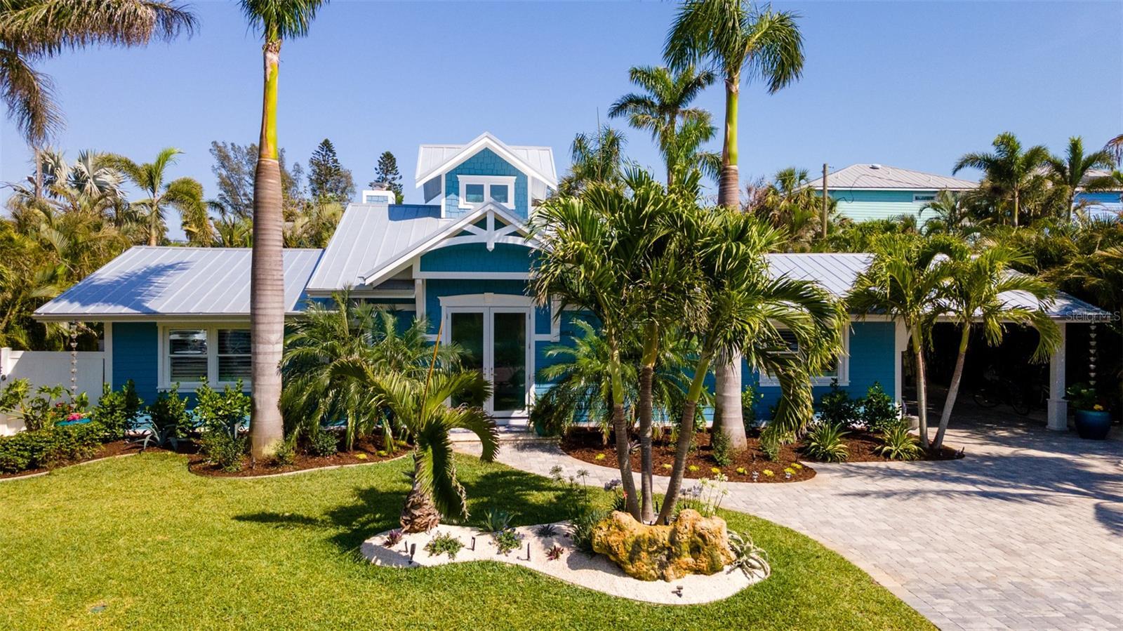 Charming Coastal Cottage in Holmes Beach. Welcome to this newly and meticulously remodeled coastal retreat, ideally located in the heart of Holmes Beach. This one-of-a-kind, artsy beach cottage blends timeless charm with modern elegance and smart technology. Step through the inviting rain glass double doors into a spacious open-concept living, dining, and kitchen area, where a dramatic lighted cupola and vaulted ceilings create a stunning first impression. A custom shell stone fireplace with a wood mantle adds warmth to the cozy seating area—perfect for relaxing or entertaining. The chef’s kitchen is a true showstopper, featuring an oversized, lighted quartz island with seating, beadboard cabinetry, and a custom wave-patterned glass backsplash. High-end appliances include an ILVE Majestic 4-burner gas stove with griddle, GE Café refrigerator, wine fridge, and porcelain farm sink—all designed with entertaining in mind.Craftsmanship continues throughout with custom millwork, shiplap accents, paneled walls, and solid-core doors. Oversized sliding glass doors open to reveal a tropical backyard oasis, complete with a free-form heated pool and spa, paver patio with artificial turf. The lush, mature landscaping with up lighting show off the tall palm trees, perfect for a evening cocktail party under the stars. The southern-facing yard is perfect for dining, lounging, and soaking up the sun. Each of the three bedrooms and 2.5 baths showcases custom chrome period fixtures, retro-inspired sinks, and designer details. Tech-savvy buyers will love the smart home features, including Lutron lighting controls, LED lighting, Sonos sound system, security cameras, and plantation shutters. The property includes a 250-gallon buried propane tank serving the on-demand water heater, gas grill, pool heater, and stove. It’s also generator-ready with existing plumbing and wiring in place. There is city dockage close by for boating enthusiast's This extraordinary home offers a rare blend of beachy charm and luxurious amenities—an absolute must-see!