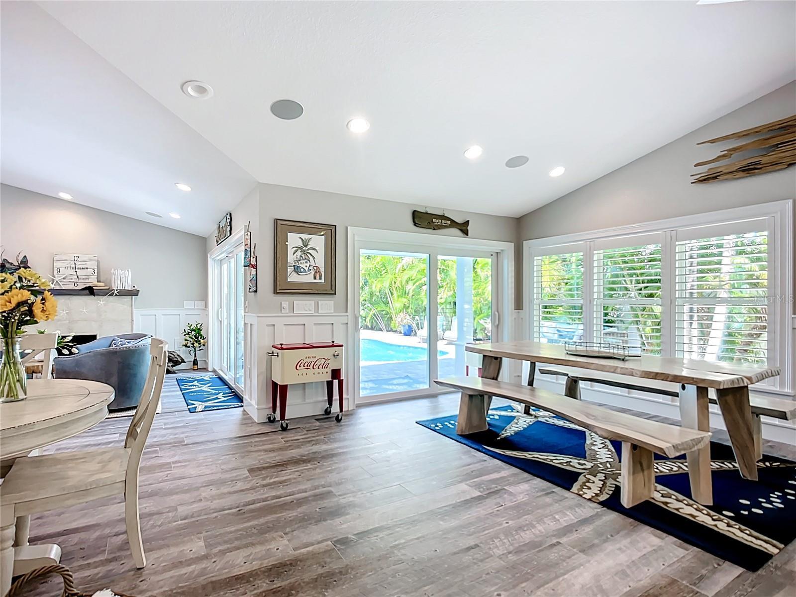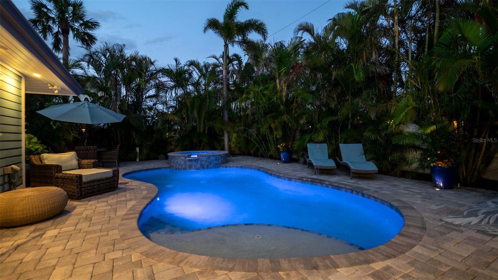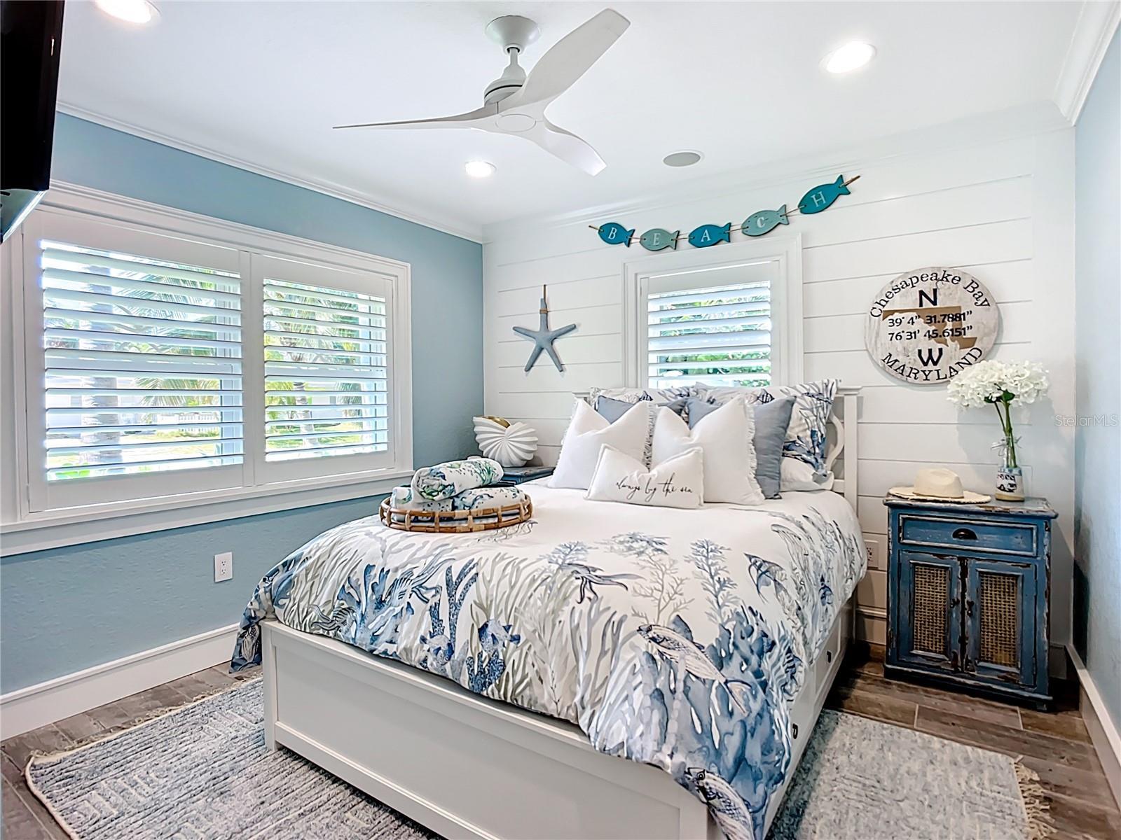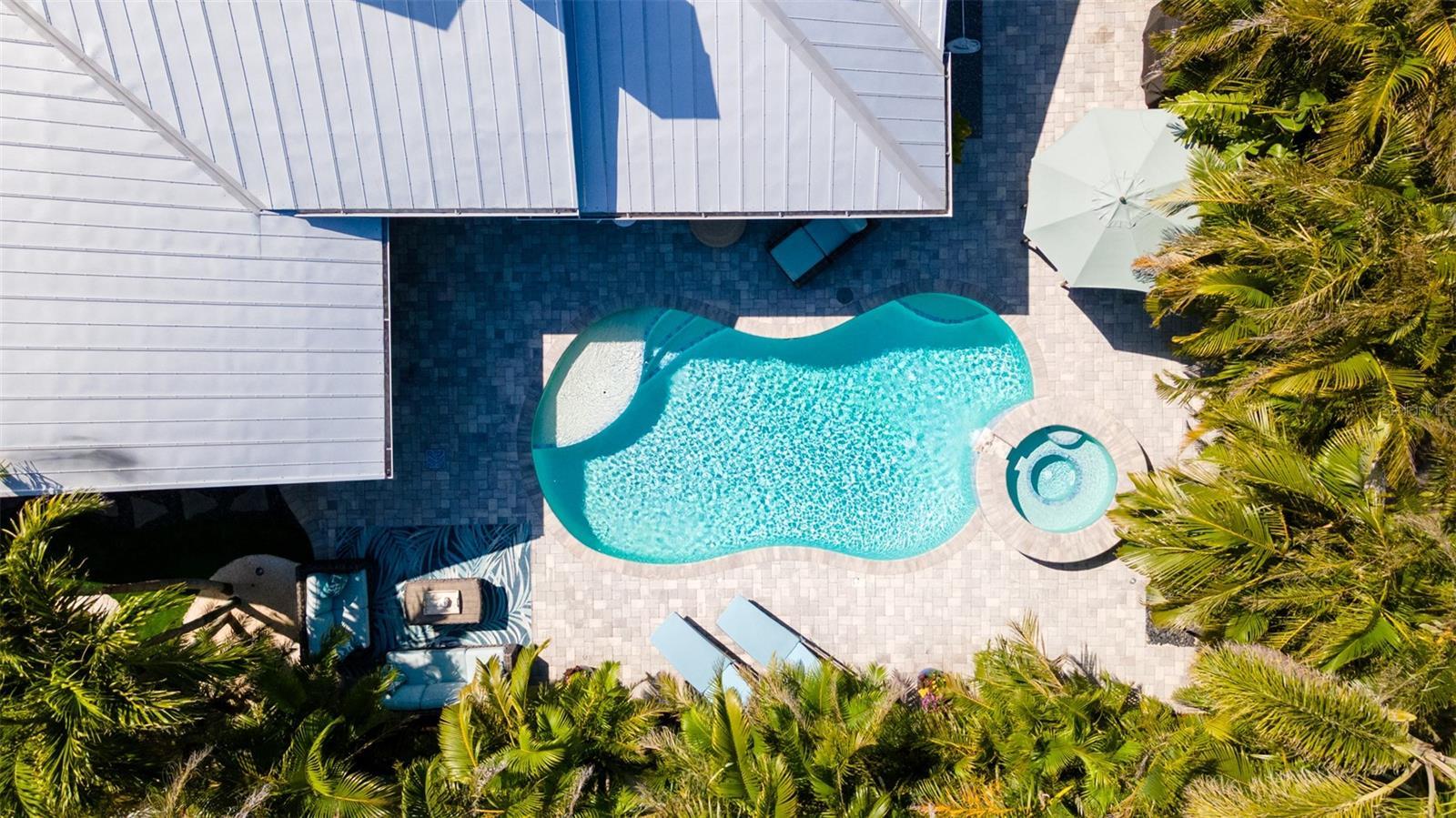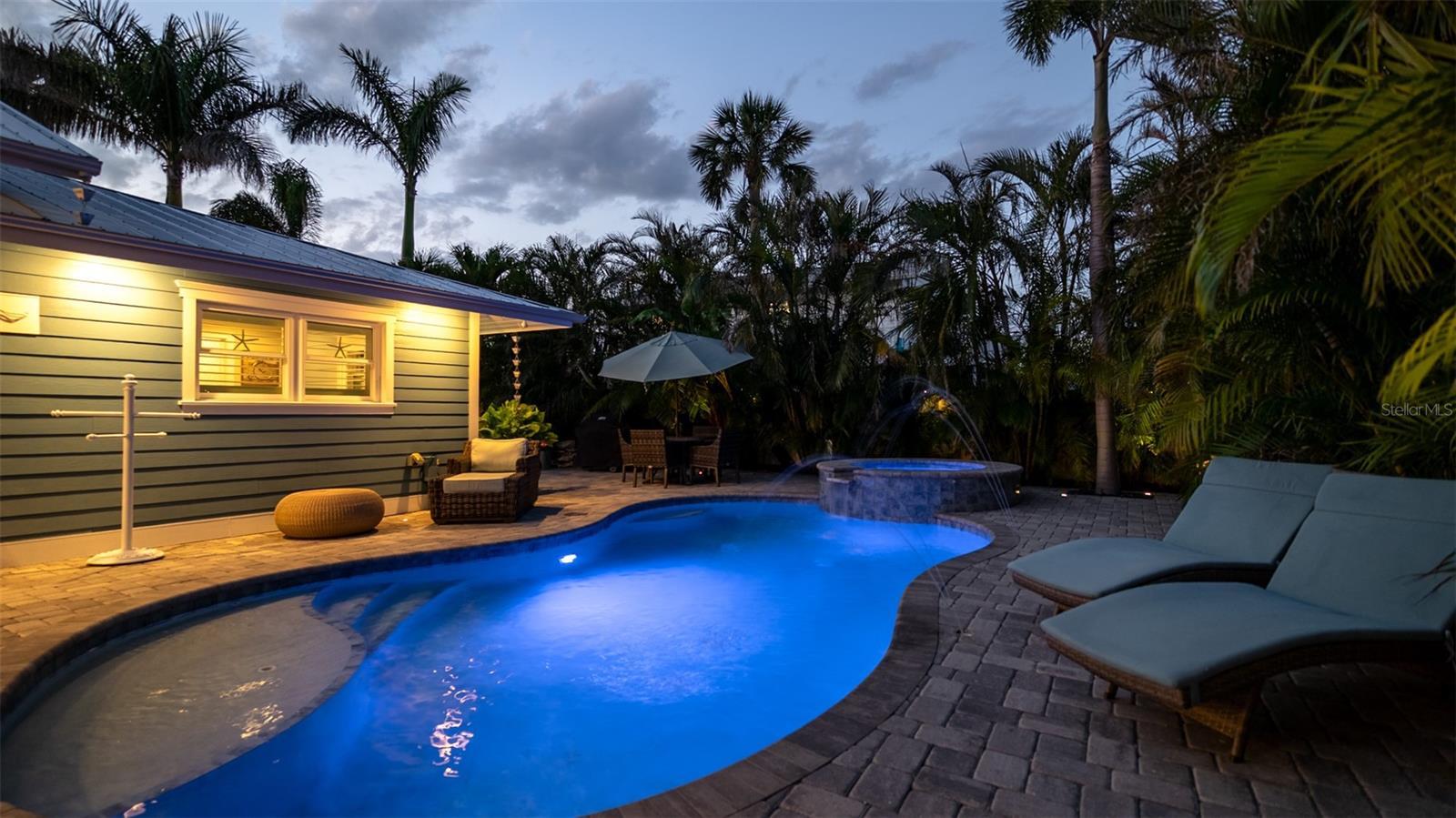 Charming Coastal Cottage in Holmes Beach. Welcome to this newly and meticulously remodeled coastal retreat, ideally located in the heart of Holmes Beach. This one-of-a-kind, artsy beach cottage blends timeless charm with modern elegance and smart technology. Step through the inviting rain glass double doors into a spacious open-concept living, dining, and kitchen area, where a dramatic lighted cupola and vaulted ceilings create a stunning first impression. A custom shell stone fireplace with a wood mantle adds warmth to the cozy seating area—perfect for relaxing or entertaining. The chef’s kitchen is a true showstopper, featuring an oversized, lighted quartz island with seating, beadboard cabinetry, and a custom wave-patterned glass backsplash. High-end appliances include an ILVE Majestic 4-burner gas stove with griddle, GE Café refrigerator, wine fridge, and porcelain farm sink—all designed with entertaining in mind.Craftsmanship continues throughout with custom millwork, shiplap accents, paneled walls, and solid-core doors. Oversized sliding glass doors open to reveal a tropical backyard oasis, complete with a free-form heated pool and spa, paver patio with artificial turf. The lush, mature landscaping with up lighting show off the tall palm trees, perfect for a evening cocktail party under the stars. The southern-facing yard is perfect for dining, lounging, and soaking up the sun. Each of the three bedrooms and 2.5 baths showcases custom chrome period fixtures, retro-inspired sinks, and designer details. Tech-savvy buyers will love the smart home features, including Lutron lighting controls, LED lighting, Sonos sound system, security cameras, and plantation shutters. The property includes a 250-gallon buried propane tank serving the on-demand water heater, gas grill, pool heater, and stove. It’s also generator-ready with existing plumbing and wiring in place. There is city dockage close by for boating enthusiast's This extraordinary home offers a rare blend of beachy charm and luxurious amenities—an absolute must-see!