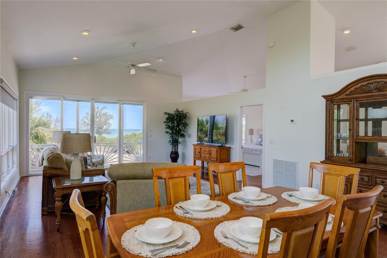 This Home truly paints a picture of coastal paradise! From the private pathway leading to the pristine sands of Nokomis Beach providing access to endless adventures on the Gulf of Mexico, every detail seems designed to immerse residents in luxury and tranquility. The three-level retreat embodies a masterpiece of design and comfort, with each floor offering its own unique charm. The screened-in balcony, where one can savor the coastal breeze while gazing at the mesmerizing waves, is the perfect spot for relaxation. And the fully enclosed yard, shaded by swaying palm trees, creates an idyllic setting for outdoor gatherings and leisurely moments. Ascending to the third floor via elevator is like stepping into a world of unparalleled beauty, with the kitchen, living room, and primary bedroom strategically positioned to maximize the breathtaking views. The kitchen, adorned with stylish solid surface countertops and top-of-the-line appliances, is like a culinary haven where gourmet meals are effortlessly prepared. And the living room, with its panoramic vistas, promises moments of pure indulgence and relaxation. After a full day of beachcombing or boating adventures, retreating to the luxurious embrace of the primary suite and all of its comforts. With a king bed, a walk-in closet and opulent bathroom featuring dual vanities and a large jetted soaking tub, it's a sanctuary of comfort and luxury. There is a second bedroom with a queen and a full bed and a third bedroom with 2 twin beds. In the family room, there are two queen size pull-out sofas. Overall, this residence epitomizes coastal living at its finest. Impeccably maintained and freshly painted throughout, it's ready to welcome each guest to embrace the allure of Casey Key and make unforgettable memories in this breathtaking oasis of luxury. Casey Key truly offers a beachside setting that's unmatched in its peaceful ambiance and natural beauty, making it an ideal destination for a vacation home retreat. With its pristine beaches and picturesque scenery, it's easy to see why travelers are drawn to this romantic city. While staying in Casey Key, you'll have the opportunity to explore not only the local beaches but also the charming restaurants that add to the area's allure.