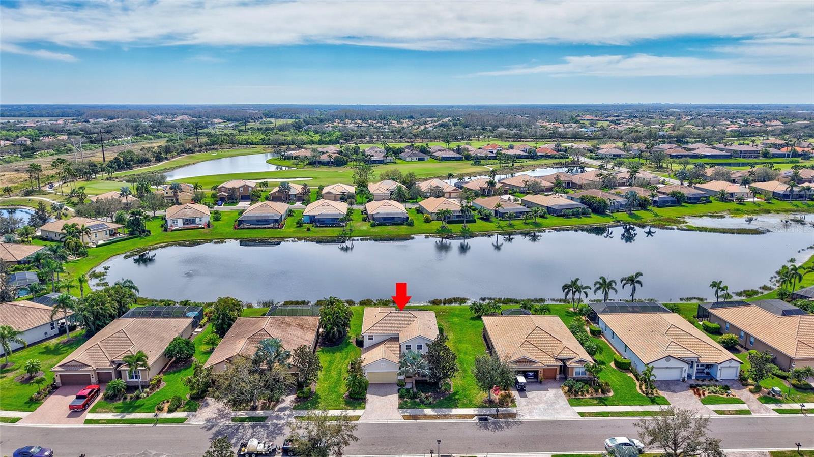 HUGE PRICE REDUCTION!!! Great 2-story family home in River Strand Golf & Country Club, a rare opportunity to find this Navona floor plan home with amazing lake views. This 4 bedroom 3 and half bath plus EXTRA BONUS room comes with GOLF MEMBERSHIP. FULLY FURNISHED and EQUIPPED. NEW AC 2025, NEW pool heater, new pool pump, newer interior and exterior painting, flooring and furniture downstairs. MASTER Bedroom on the MAIN floor has 2 walk-in closets, his & her sinks. This solid house (any damages from hurricanes) has a large kitchen and upgraded hardwood cabinets with stainless steel appliances and granite countertops. Sliding glass doors leading to screened & spacious lanai area with HEATED POOL/SPA. With pool you will find a half bath. Three additional bedrooms plus bonus room are on the 2nd floor. River Strand is a private gated community with 24/7 security. The 27-hole championship golf course was designed by Arthur Hills, featuring spectacular views of the Manatee River and panoramic greens and fairways. The club also offers two clubhouses, nine lit, Har-Tru tennis courts with on-site Tennis pro shop; Pickle Ball, 2 main and 6 community pools, two modern fitness centers. A beautiful 39,000 sq. ft. Tuscan-inspired main clubhouse offering casual and fine dining, a bar and grill room, billiard room, card room, conference room, golf pro shop, resort style pool with "sand" beach and tiki bar. River Strand has magnificently landscaped grounds with running and biking trails. The home is perfectly located 3 minutes from Market Place at Heritage Harbour with COSTCO and in early future with Target and a lot restaurants and stores, 5 minutes of I-75, just 15-20 minute drive to Florida's most renowned, awesome sand beaches like Anna Maria Island, Siesta Key Beach, Lido Beach or Longboat Key with an awesome little beach restaurants and tiki bars. 15 minutes from large Ellenton Outlets Mall with all famous international brands, 15 minutes UTC Mall, 20 minutes from beautiful downtown of Sarasota. Sarasota airport 20 minutes, Tampa airport 45 minutes. Enjoy the warm and sunny beaches of the Florida Gulf Coast, and Sarasota too! Welcome Home, you will LOVE it here!