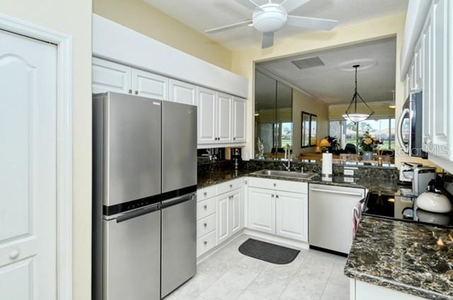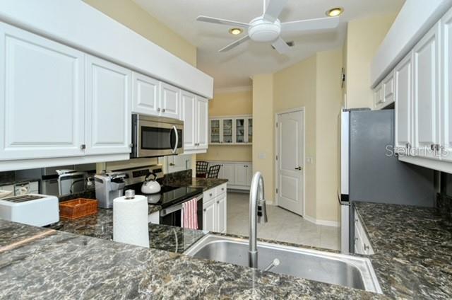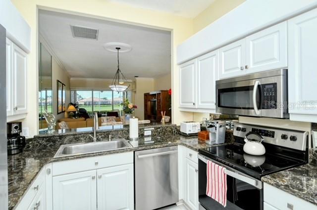 RENTED MARCH & APRIL 2026, AVAILABLE OFF-SEASON RATE MAY THROUGH END OF DECEMBER 2025. EXCEPTIONAL VILLA at Stoneybrook G&CC on the golf course, three bedrooms, two baths, and two-car garage. A transferable golf membership is available if desired for a fee payable to the country club. The entryway is screened and is nicely furnished with comfortable seating; step into an open floor plan with breakfast nook and well-designed kitchen featuring stone countertops, a storage pantry, high-end appliances, and opens to the dining area. The dining area is also open to the living room, offering comfy leather seating, a smart TV, and a view from the living room onto an inviting lanai overlooking the 5th fairway. The master bedroom has a king-sized bed, an ensuite bathroom with a garden tub and vanity with twin sinks, plus a nicely tiled and glassed walk-in shower. There is a king bed in the second bedroom, which is located adjacent to the guest bathroom, and the 3rd bedroom can also function as a den/office and has twin beds for the occasional guests, a closet, and a desk area with storage cabinets. The large extended lanai has a covered area for seating and a caged screened area, making it perfect for entertaining. The two-car garage has room for your vehicle, beach toys, and there is a utility sink for added convenience. A community pool is located just a couple of blocks away. Stoneybrook is a gated community conveniently located on Palmer Ranch featuring a newly modernized Kipp Schultes-designed golf course, said to be one of the best courses on the west coast of Florida, a fitness center, a large heated pool, a state of the art clubhouse featuring fine and casual dining, Har Tru tennis courts, bocce ball, and the community borders the Legacy walking and biking trail access, is less than 15 minutes from the sugary sandy beaches of Siesta Key and the village shops and restaurants. There is a local YMCA and a park with 6 pickleball courts, a Costco and Publix all within a couple of miles from the community, and you can be downtown Sarasota in 25 minutes to take in the cultural and culinary activities that Sarasota offers. Call for more information and for off-season rates.