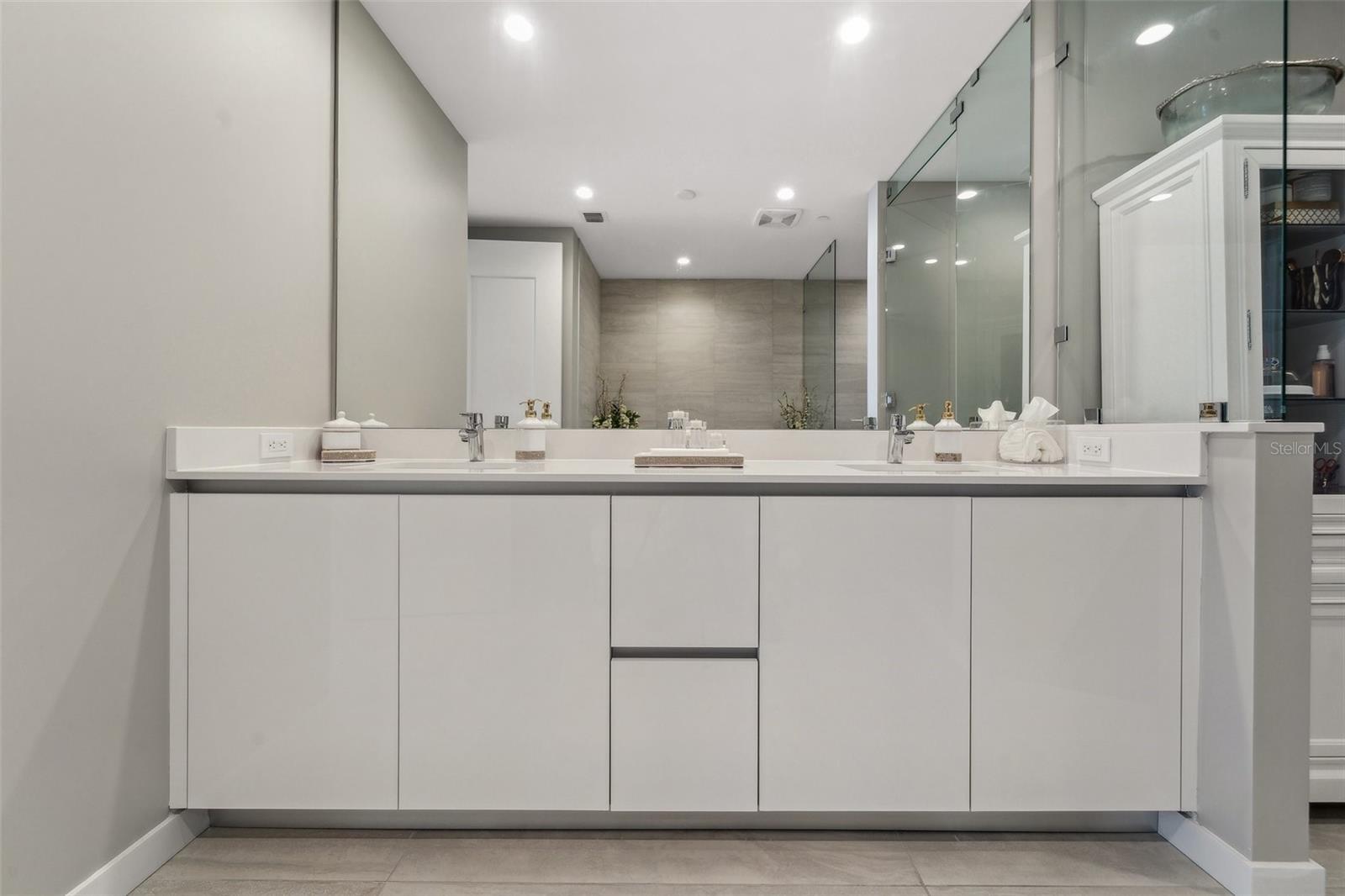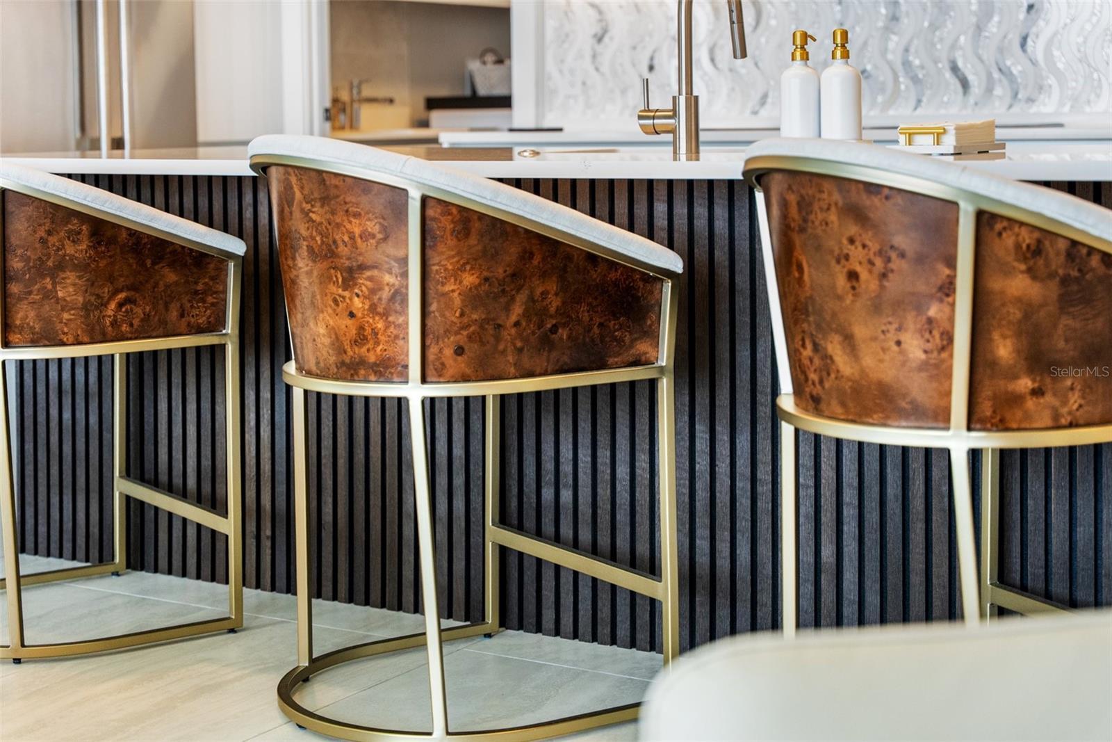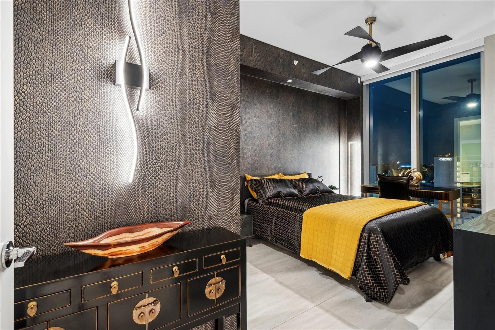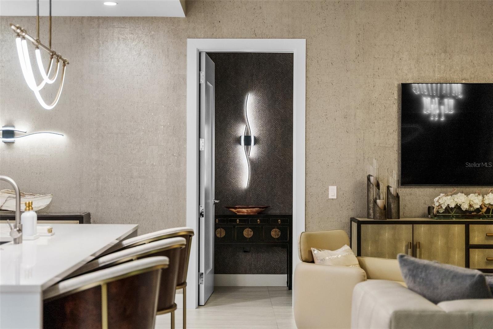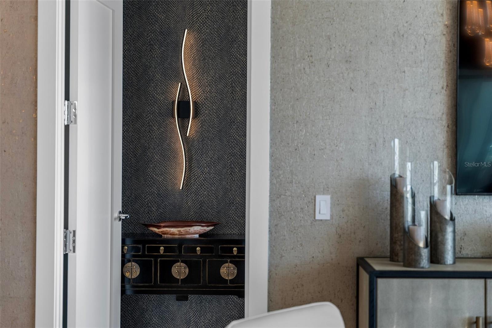 PRICE REDUCTION! OVER $250K IN DESIGNER UPGRADES! STUNNING DESIGNER CONDO WITH PANORAMIC WATER VIEWS | 17TH FLOOR | DOWNTOWN SARASOTA: Experience elevated coastal luxury in this professionally designed condo located on the 17th floor in the heart of Downtown Sarasota, just steps from the vibrant Quay Harbor. With sweeping, partial views of Sarasota Bay and the Gulf of Mexico, this residence was transformed in just 18 weeks from a blank canvas into a breathtaking, design-forward home. | From the moment you enter, you're greeted by a striking onyx and gold Italian porcelain tile foyer with raised gold detailing — a stunning introduction to the level of craftsmanship and detail found throughout. Each wall has received two coats of premium paint and is adorned with distinctive, HIGH-QUALITY EUROPEAN WALL COVERINGS that lend texture and a timeless elegance. Every room is thoughtfully curated with a neutral color palette that enhances the light, complements the views, and creates a cohesive sense of calm and sophistication. | The chef’s kitchen is both sleek and refined, boasting European cabinetry, quartz countertops, a Jenn-Air appliance suite, and a hand-cut CARRARA MARBLE AND MOTHER-OF-PEARL backsplash imported from Italy. Oak wood batten board detailing on the kitchen island flows seamlessly into the adjacent den, reinforcing the design’s intentional flow. | Every element has been thoughtfully selected, from the imported European light fixtures, chandeliers, and tile to the luxurious décor. The dining area is crowned by a showstopping chandelier adorned with 700 INDIVIDUALLY HANDSET SWAROVSKI CRYSTALS, casting a soft, radiant light that reflects off three 6-foot custom mirrors and enhances the 10-foot ceilings. | Electric shades in the Great Room, primary suite, and second bedroom provide convenience and privacy at the touch of a button. The Great Room is designed for comfort and entertainment, it currently features a reclining leather sectional and a smart media setup with a sound bar, subwoofer, Sonos speakers, and Alexa-enabled voice-command remotes. Should the new owner decide to keep things simple, furnishings mentioned are available to purchase separately. | Both the primary and secondary bedrooms include custom-designed shelving and drawer systems, providing optimal organization and maximizing storage without sacrificing elegance. The primary bath features a luxurious soaking tub—a rare feature in floor plans at BAYSO—perfect for unwinding in total relaxation. All shower floors have been expertly grouted and sealed for lasting durability. | Custom-designed outdoor furnishings and accessories (available for purchase separately) were delivered in December 2024 and January 2025, complete this refined, move-in-ready home. | Residents of this luxury building enjoy world-class amenities, including a state-of-the-art fitness center, resort-style pool, dog park, and more. Located just 3 miles from Lido Beach and steps from Sarasota’s version of Central Park—The Bay Sarasota—this prime location is close to everything you could want. Enjoy arts and culture, fine dining, and upscale shopping all nearby. Boating enthusiasts will appreciate the convenient marina just south of BAYSO for effortless access to Sarasota Bay. | NOW ACCEPTING PRIVATE APPOINTMENTS. Discover a rare blend of artistry, comfort, and breathtaking views in one of Sarasota’s most coveted locations. Furniture package available upon request.