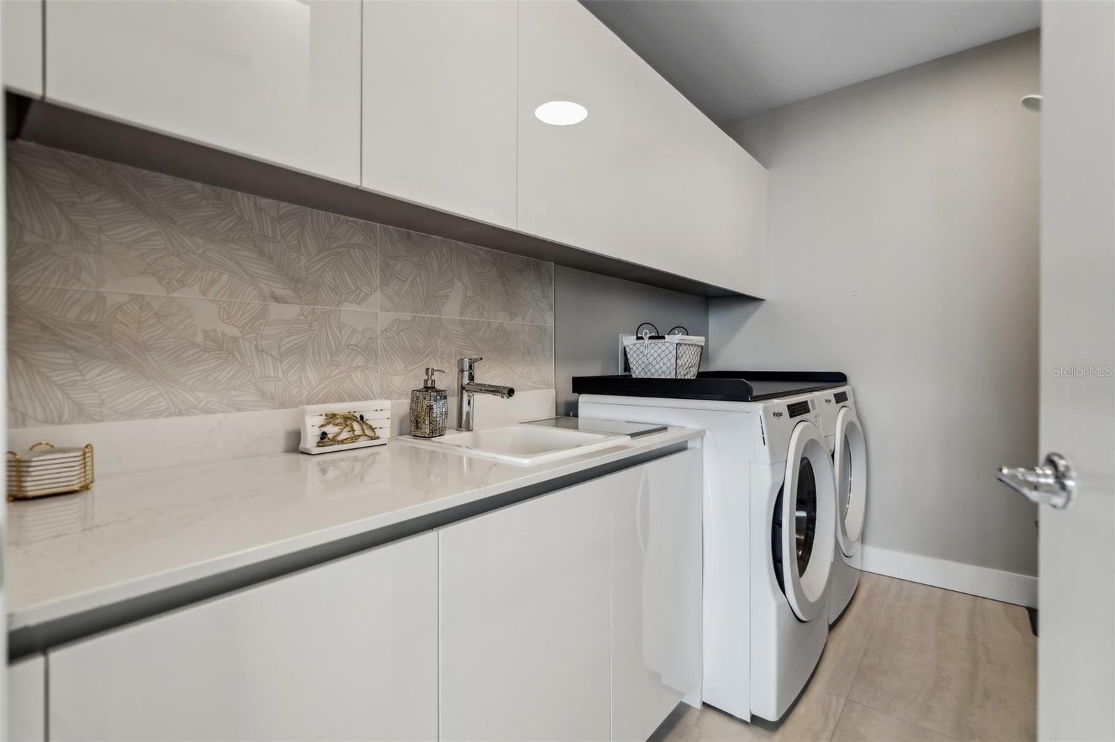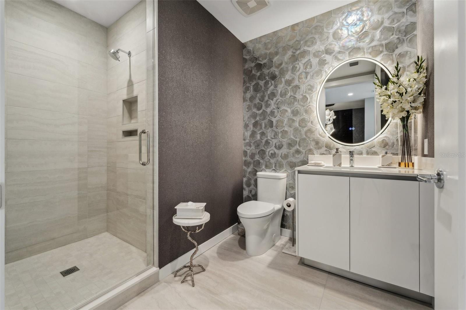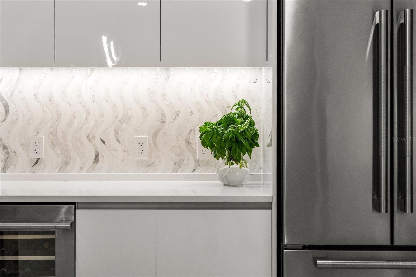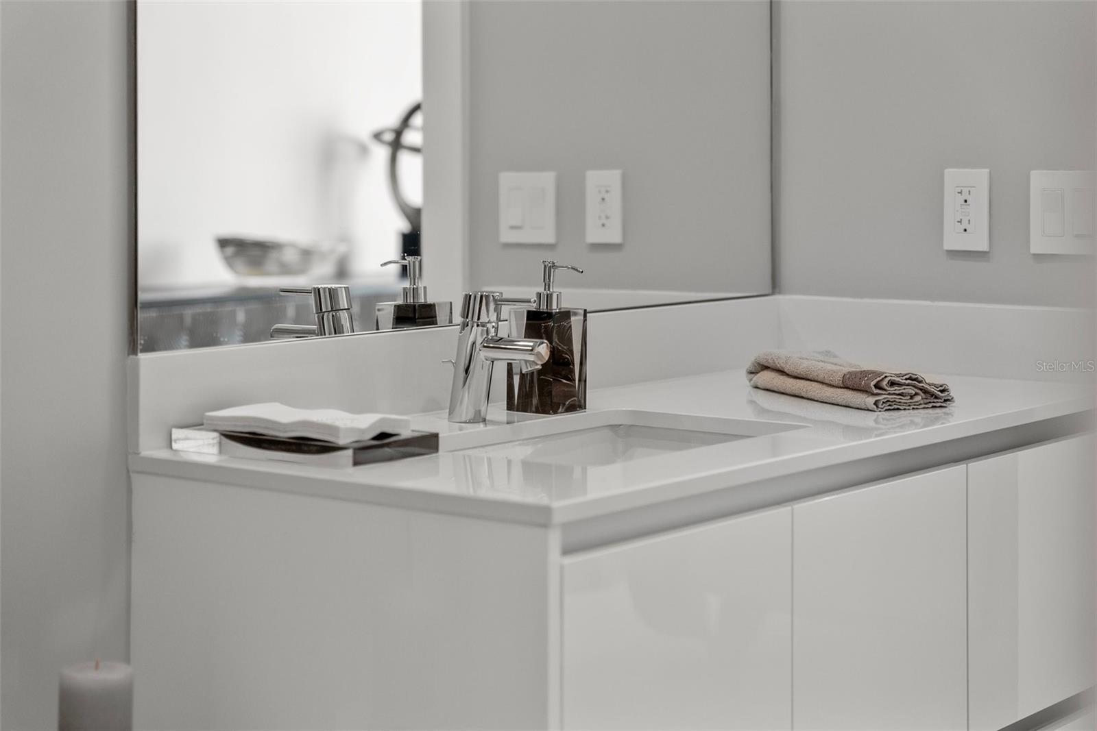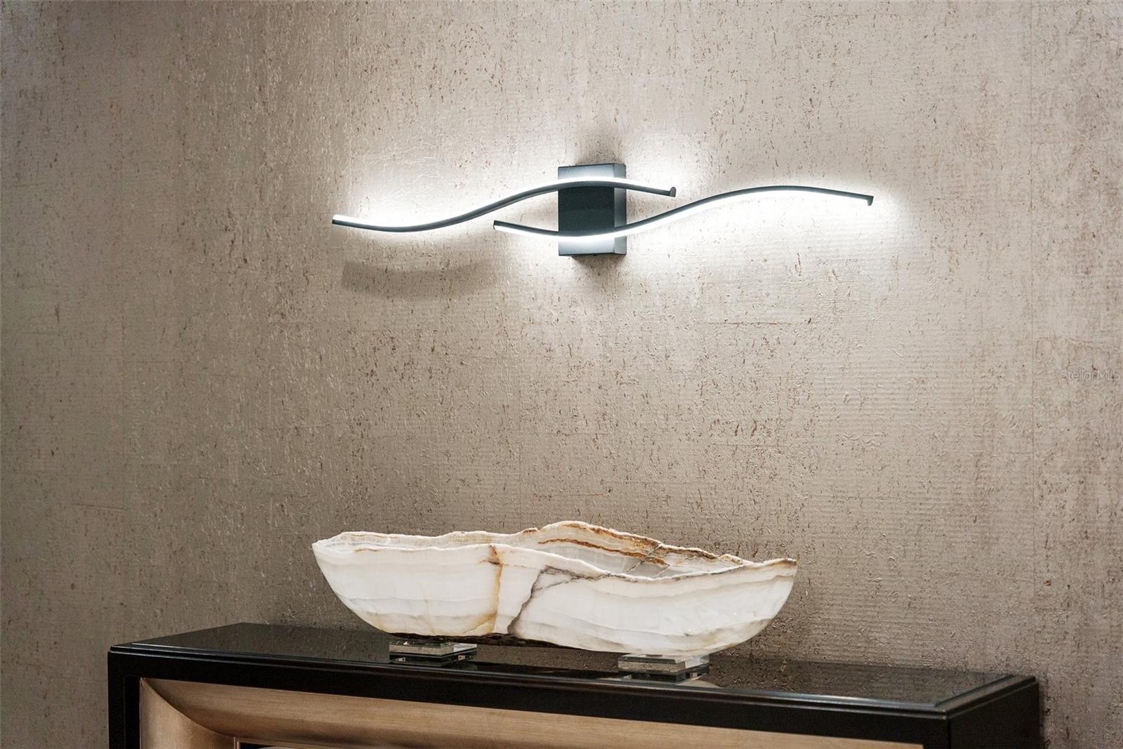 PRICE REDUCTION! OVER $250K IN DESIGNER UPGRADES! STUNNING DESIGNER CONDO WITH PANORAMIC WATER VIEWS | 17TH FLOOR | DOWNTOWN SARASOTA: Experience elevated coastal luxury in this professionally designed condo located on the 17th floor in the heart of Downtown Sarasota, just steps from the vibrant Quay Harbor. With sweeping, partial views of Sarasota Bay and the Gulf of Mexico, this residence was transformed in just 18 weeks from a blank canvas into a breathtaking, design-forward home. | From the moment you enter, you're greeted by a striking onyx and gold Italian porcelain tile foyer with raised gold detailing — a stunning introduction to the level of craftsmanship and detail found throughout. Each wall has received two coats of premium paint and is adorned with distinctive, HIGH-QUALITY EUROPEAN WALL COVERINGS that lend texture and a timeless elegance. Every room is thoughtfully curated with a neutral color palette that enhances the light, complements the views, and creates a cohesive sense of calm and sophistication. | The chef’s kitchen is both sleek and refined, boasting European cabinetry, quartz countertops, a Jenn-Air appliance suite, and a hand-cut CARRARA MARBLE AND MOTHER-OF-PEARL backsplash imported from Italy. Oak wood batten board detailing on the kitchen island flows seamlessly into the adjacent den, reinforcing the design’s intentional flow. | Every element has been thoughtfully selected, from the imported European light fixtures, chandeliers, and tile to the luxurious décor. The dining area is crowned by a showstopping chandelier adorned with 700 INDIVIDUALLY HANDSET SWAROVSKI CRYSTALS, casting a soft, radiant light that reflects off three 6-foot custom mirrors and enhances the 10-foot ceilings. | Electric shades in the Great Room, primary suite, and second bedroom provide convenience and privacy at the touch of a button. The Great Room is designed for comfort and entertainment, it currently features a reclining leather sectional and a smart media setup with a sound bar, subwoofer, Sonos speakers, and Alexa-enabled voice-command remotes. Should the new owner decide to keep things simple, furnishings mentioned are available to purchase separately. | Both the primary and secondary bedrooms include custom-designed shelving and drawer systems, providing optimal organization and maximizing storage without sacrificing elegance. The primary bath features a luxurious soaking tub—a rare feature in floor plans at BAYSO—perfect for unwinding in total relaxation. All shower floors have been expertly grouted and sealed for lasting durability. | Custom-designed outdoor furnishings and accessories (available for purchase separately) were delivered in December 2024 and January 2025, complete this refined, move-in-ready home. | Residents of this luxury building enjoy world-class amenities, including a state-of-the-art fitness center, resort-style pool, dog park, and more. Located just 3 miles from Lido Beach and steps from Sarasota’s version of Central Park—The Bay Sarasota—this prime location is close to everything you could want. Enjoy arts and culture, fine dining, and upscale shopping all nearby. Boating enthusiasts will appreciate the convenient marina just south of BAYSO for effortless access to Sarasota Bay. | NOW ACCEPTING PRIVATE APPOINTMENTS. Discover a rare blend of artistry, comfort, and breathtaking views in one of Sarasota’s most coveted locations. Furniture package available upon request.