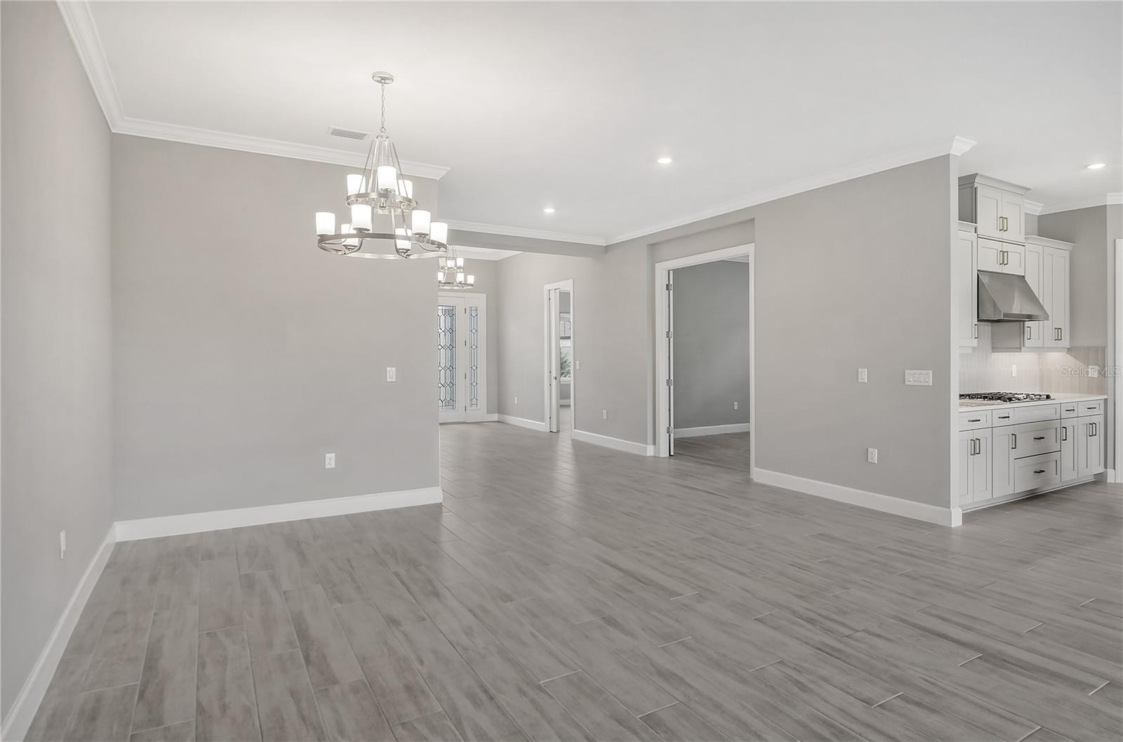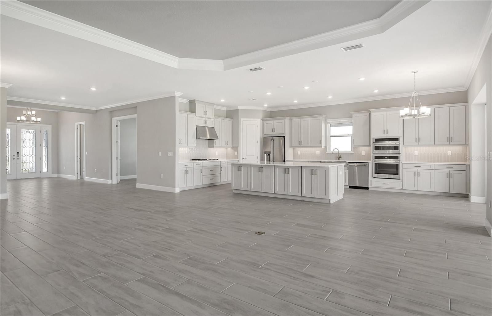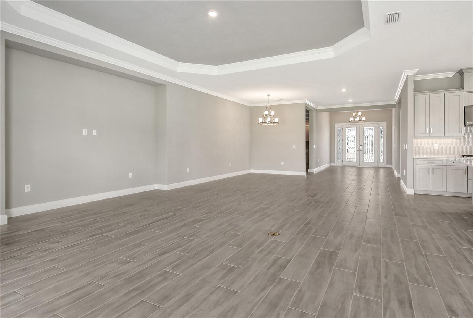 - Crown Molding, High Ceilings, Kitchen/Family Room Combo, Living Room/Dining Room Combo, Open Floorplan, Tray Ceiling(s), Walk-In Closet(s), Window Treatments