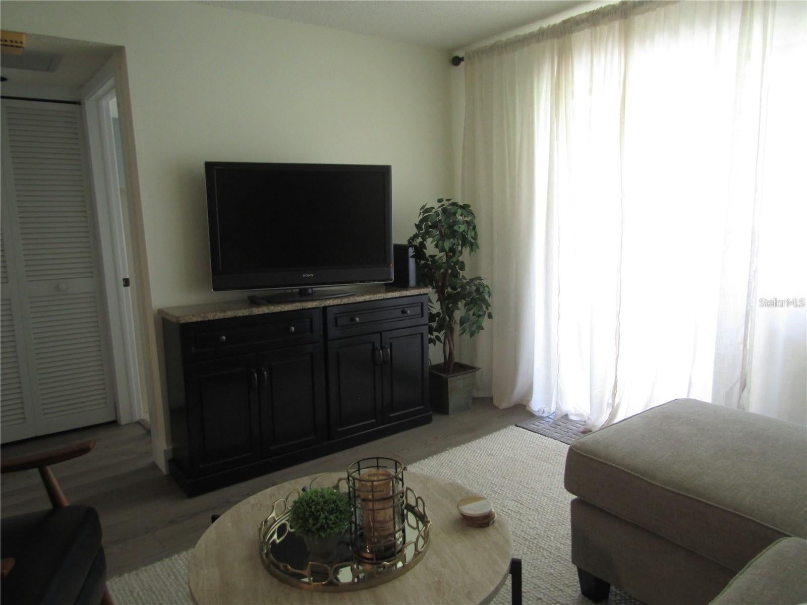 - Living Room/Dining Room Combo, Open Floorplan, Solid Surface Counters, Solid Wood Cabinets, Stone Counters, Thermostat, Walk-In Closet(s), Window Treatments