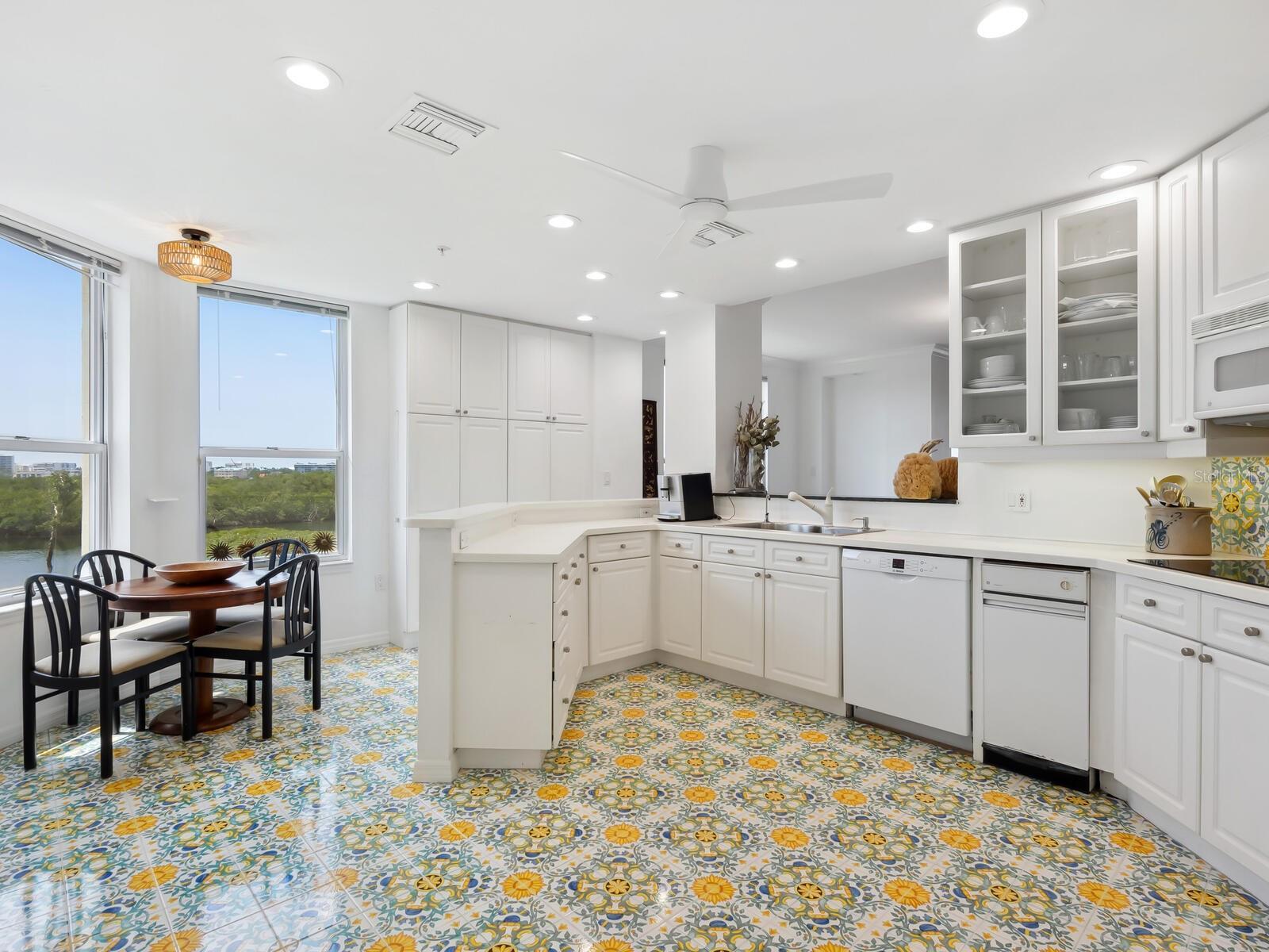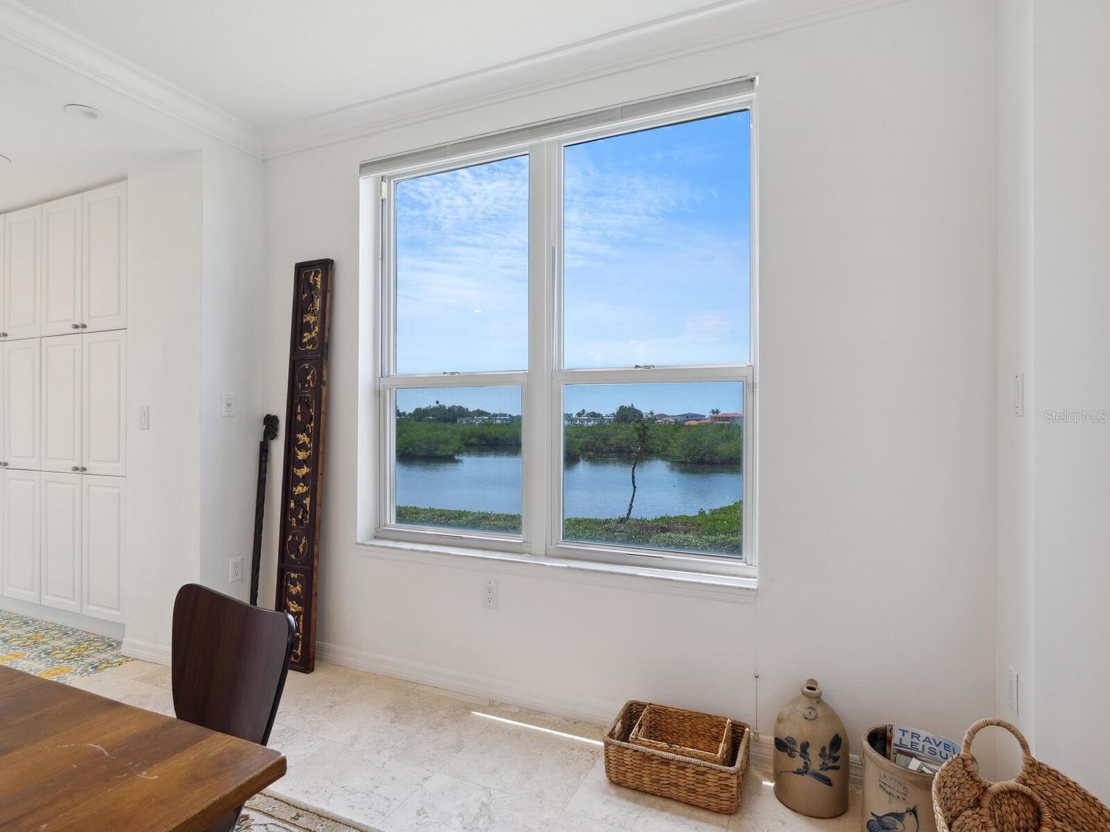 Simply the best Eagles Point location- it is all about the light and the view. Every room in this 3 bed, 2 bath condo enjoys a water view. This corner condo boasts both a southern exposure overlooking Phillippi Creek and western exposure of the Intracoastal Waterway and Siesta Key. You will easily pass your time and be captivated watching fish jump, birds dive, and boaters go by. This condo is positioned for privacy- you do not look into any nearby buildings. Reflect on your day watching the sunset- moments of pure awe with such stunning colors. The first floor condos are unique with an expanded open terrace. A portion of this terrace has been screened for added enjoyment. A rare feature for an Eagles Point condo is a second under building car spot- no need to leave your second vehicle outside in the elements. HVAC, Hot Water Tank, Washer & Dryer are new. Hurricane shutters on western facing windows The Landings is a gated community known for its well-maintained grounds, nature trail to the ICW, and desirable amenities. Eagles Point residences have their own pool and barbecue area nearby as well as membership to the Landings Racquet Club which offers a fitness center, eight har-tru tennis courts, pickle ball, pool with spa, and numerous social activities. Kayak storage with launch area for easy access to the waterway is yet another feature. Take a look- easy to show.