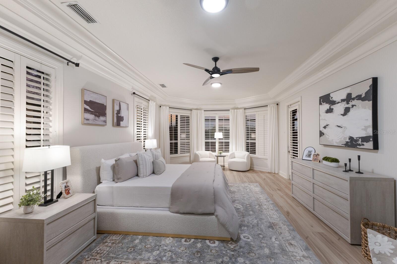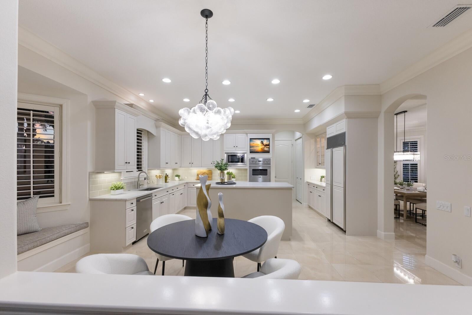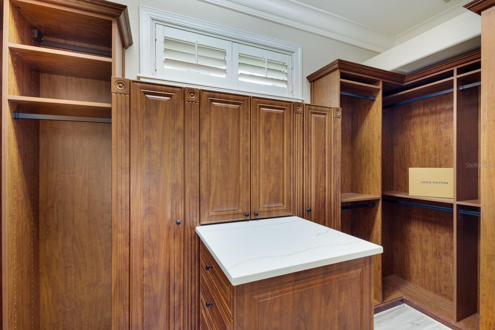 - Built-in Features, Crown Molding, Eat-in Kitchen, High Ceilings, Primary Bedroom Main Floor, Walk-In Closet(s)