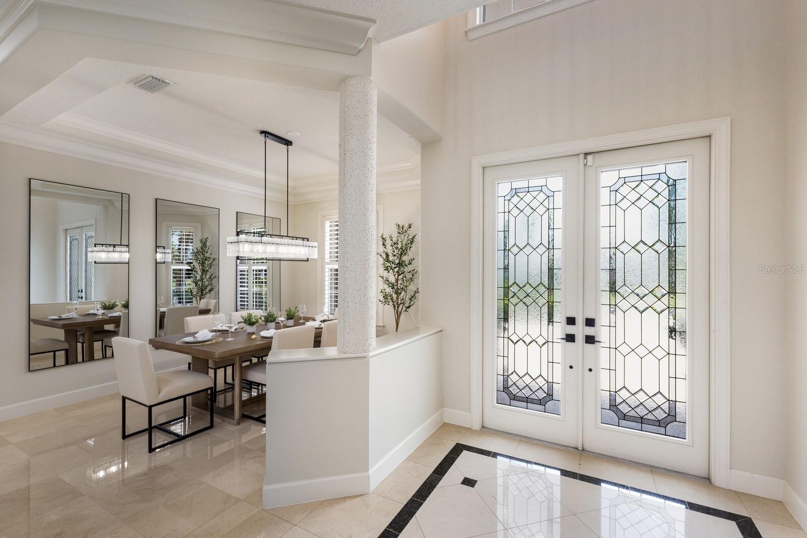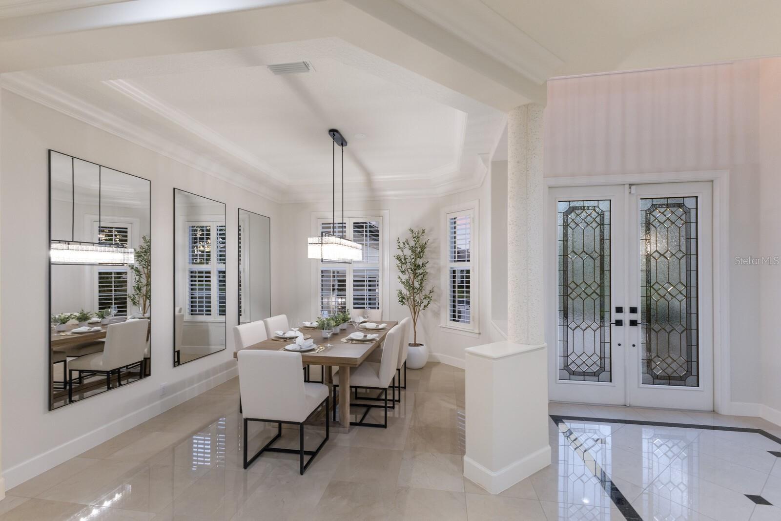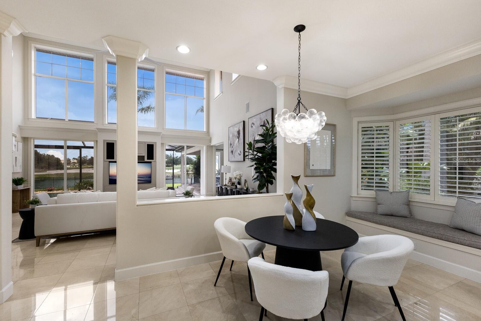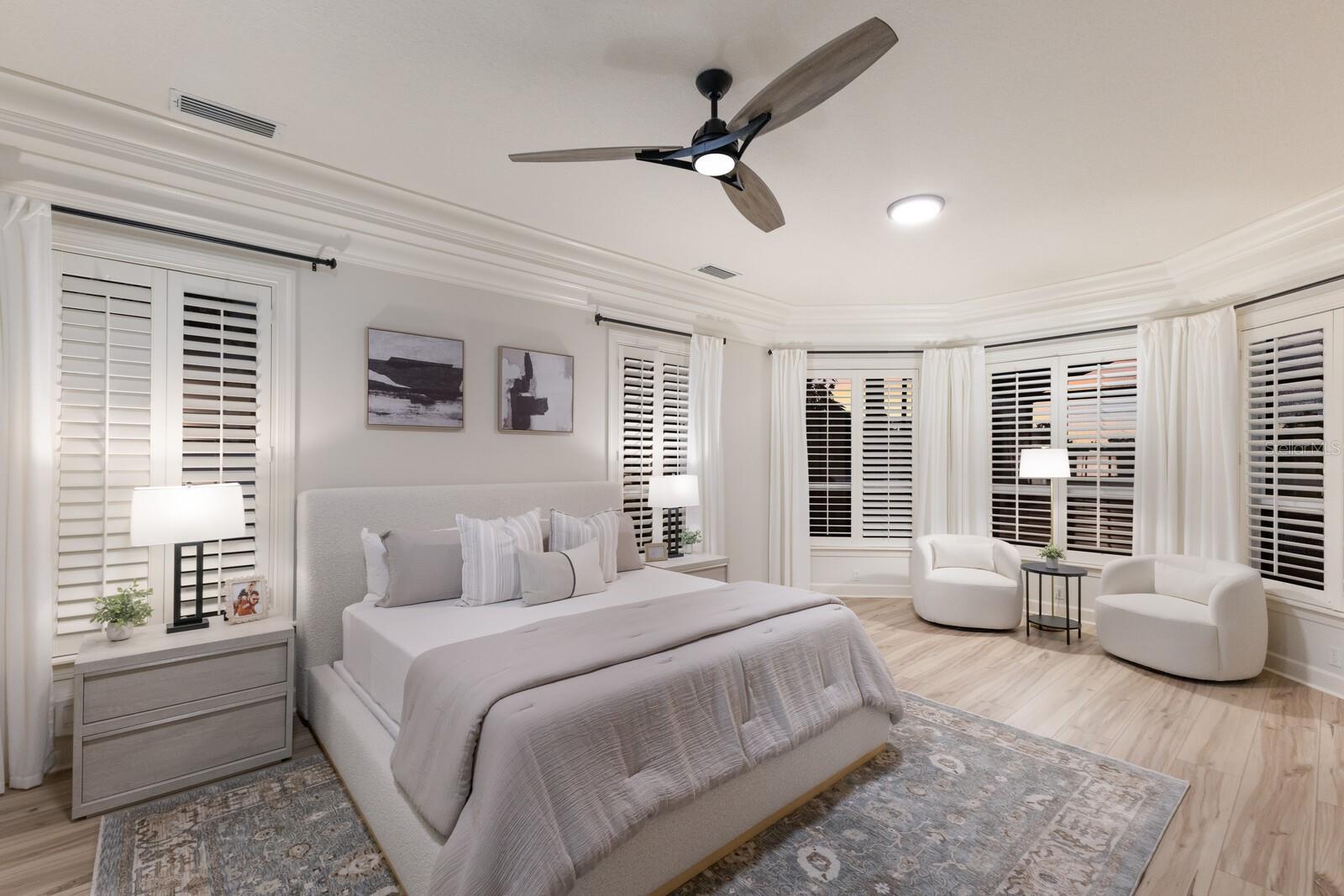 - Built-in Features, Crown Molding, Eat-in Kitchen, High Ceilings, Primary Bedroom Main Floor, Walk-In Closet(s)