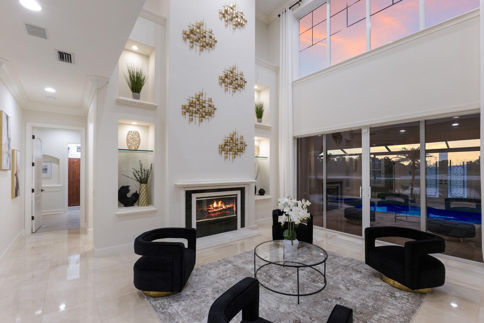 Reduced and priced to sell! Set on a premium golf course lot boasting MORE THAN a half acre, behind the gates of the highly desirable Lakewood Ranch Country Club, this 4,737 sq ft Arthur Rutenberg-built estate offers a BRAND NEW ROOF and showcases refined luxury and architectural grandeur. With 4 spacious bedrooms, 4 full bathrooms, and a half bath, this two-story residence offers both elegant formal spaces and inviting everyday comfort. From the moment you enter, you’re greeted by a dramatic two-story living room with gas fireplace and two-story great room with soaring ceilings, custom millwork, and expansive windows that capture serene golf course views. Natural light pours into every corner, creating an open and airy ambiance throughout. The expansive lanai has two large covered space and highlights an enormous pool, perfect for swimming laps or just splasing around enjoying a pool party! The gourmet kitchen is a chef’s dream—well-appointed with premium cabinetry, a center island, granite countertops, and top-of-the-line appliances—flowing seamlessly into a generous casual dining space and inviting great room. An elegant formal dining area and a private office/study with built in partners desk are conveniently located on the fist floor along with the expansive primary suite. There is a generous size bonus room tucked away off the great room with french doors to the covered lanai and perfect for an exercise room, playroon or game roon with a bar area! Retreat to the luxurious owner’s suite, which boasts dual walk-in closets, a spa-inspired bath with massive soaking tub, and direct access to the lanai. Upstairs, each additional bedroom offers ensuite convenience and ample closet space, ideal for family or guests. Guest rooms #1 & #2 offer juliet balcony's and Guest #3 offers a private sun deck perfect for morning coffee, sunset cocktails or yoga area overlooking the panoramic golf course vistas. Don't miss the second floor bonus room that can easily be converted to a fifth bedroom or teen lounge! Furry friends can run free in the backyard with puppy fencing! Every inch of this home reflects the timeless craftsmanship Arthur Rutenberg is known for, wrapped in the serenity of one of Southwest Florida’s most sought-after golf communities. Whether you’re hosting lavish events or seeking quiet luxury, 6919 Westchester Circle is the perfect blend of distinction, comfort, and resort-style living. Lakewood Ranch Country Club is an optional country club membership offering four golf courses, three clubhouses, twenty lighted tennis courts, pickleball courts, athletic center, olympic pool with lap lanes, volleyball court, basketball court, playground and more! Enjoy top rated public schools, expansive new restaurant choices and shopping options just minutes away. Hurry in and don't wait to tour this majestic residence.
