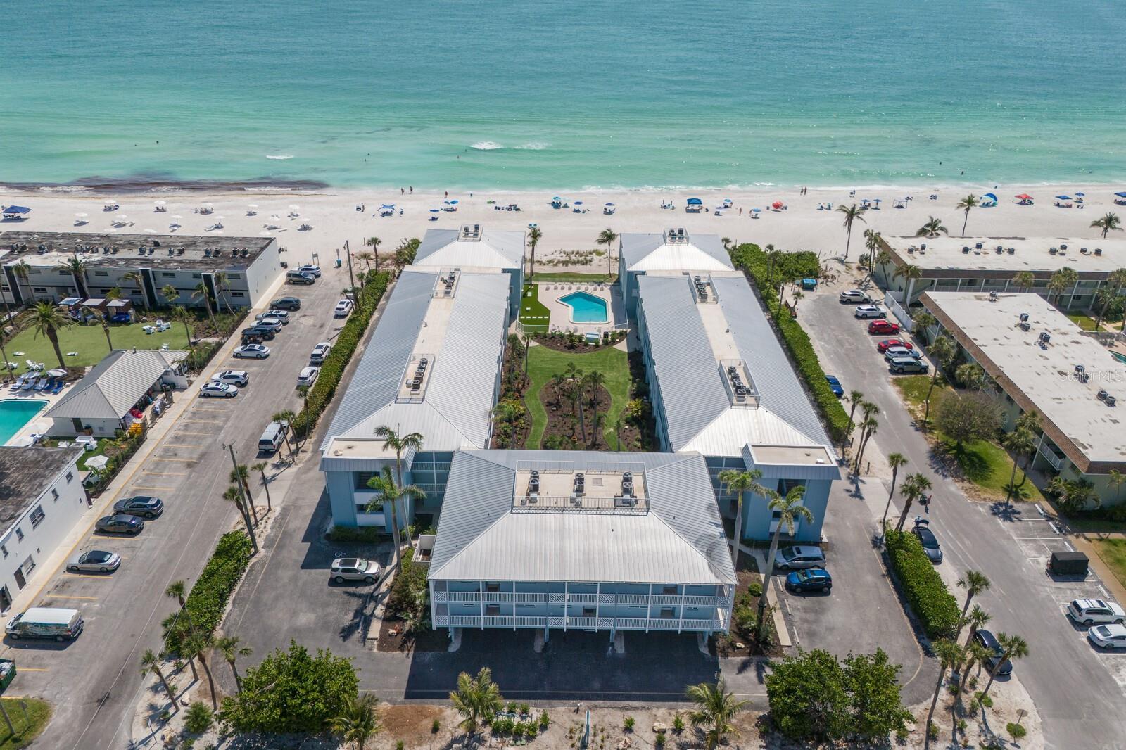One-of-a-kind beachfront condominium at Tiffany Place. Rarely available in this boutique building of only 33 units is this fully renovated coastal retreat offering direct Gulf views from the primary suite and balcony, something few units can claim. Every inch of this elevated second-floor condominium has been thoughtfully updated with high-end finishes, from the gorgeous porcelain tiled floors carried through from wall to wall to a designer kitchen with a raised ceiling that is the triangle for the culinary enthusiast with premium appliances, quartz counters and custom cabinetry. Both baths are fully reimagined with spa-like touches, and the primary bath has raised ceilings for that extra panache. New HVAC and electrical panel, and custom closets elevate daily living. Offered turnkey with some exclusions and beach gear included. Enjoy lush garden views with two magnificent Palm Trees that bring not only grace and beauty but privacy and seclusion, sunset skies and a peaceful island lifestyle just a short distance from the sand. Gulf views from bed that keep you there a little bit longer. Designer finishes throughout. This is not your typical Tiffany unit on Anna Maria Island. Thoughtfully renovated from top to bottom with premium upgrades and impeccable style, Unit 205 is a coastal dream come true. Light, bright and breezy with a private balcony that opens to sunsets over the Gulf and lush gardens below. Every detail, from custom closets to luxury appliances, was carefully curated for beauty, comfort and peace of mind. Offered fully furnished with some exclusions, so you can settle in and start living the island dream right away.