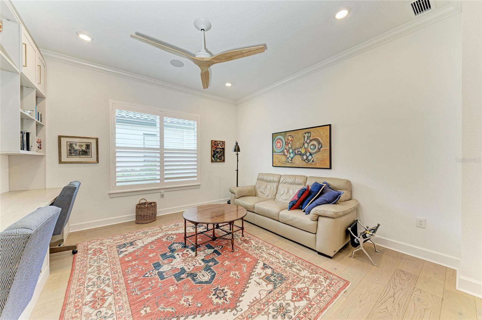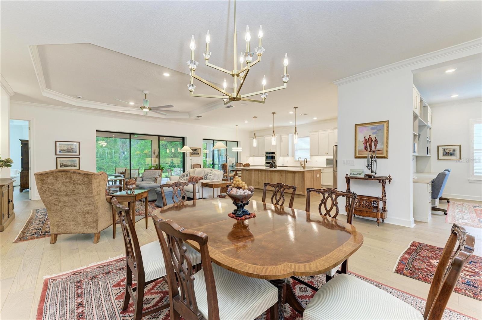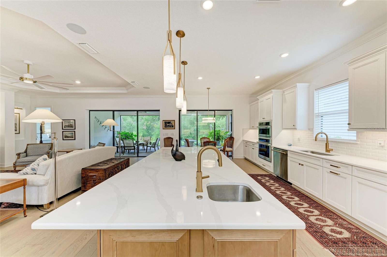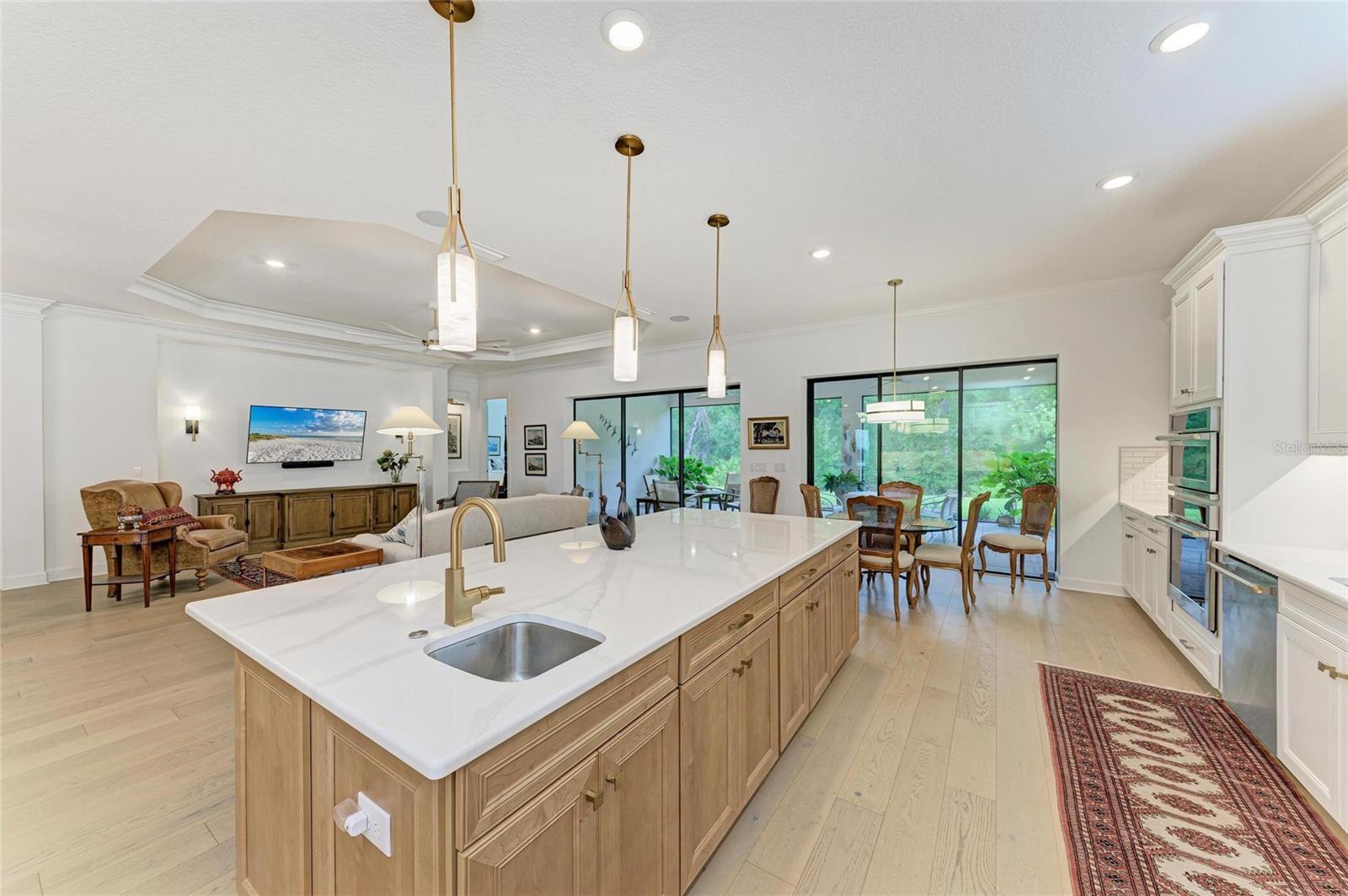 IMMEDIATE MOVE-IN. Welcome to Elevated Florida Living in Esplanade – Azario at Lakewood Ranch! Experience the perfect blend of elegance, comfort, and privacy in this meticulously crafted 2023-built home offering 3 bedrooms, 3 bathrooms, a dedicated den/office, and a rare tandem 3-car garage—all thoughtfully designed with timeless upgrades and modern conveniences. From the moment you enter, you'll be captivated by the refined ambiance created by engineered wood flooring throughout (with plush carpeting in Suites 2 and 3), soaring tray ceilings adorned with crown molding, and custom upgraded lighting that complements every space. Each of the three spacious bedrooms features its own ensuite bath, offering privacy and comfort for family and guests alike. Bay windows in two bedrooms flood the rooms with natural light and add architectural charm. The home’s expansive interior showcases 8’ solid-core doors, B&G interior shutters, and soft-close cabinetry with upgraded shelving. The gourmet kitchen is a culinary dream, boasting quartz countertops, stainless steel appliances, a smart faucet, and a large kitchen island with an additional prep sink. The natural gas range is complemented by an upgraded vent hood, while designer plumbing fixtures elevate the entire space. The casual dining extension flows effortlessly into the great room—enhanced by a high-quality speaker system that continues into the office and rear lanai, perfect for entertaining or relaxing in style. Step outside to your serene, screened-in lanai with a built-in summer kitchen, ideal for alfresco dining or hosting guests against a backdrop of Florida’s natural beauty. The home backs up to a heavily wooded preserve, offering rare and sought-after privacy. Silent ceiling fans are thoughtfully placed throughout all living areas, including the lanai, to ensure year-round comfort. The garage features an acrylic-sealed floor and an enlarged tandem space to accommodate extra storage or your favorite hobby. Living in Esplanade – Azario means access to an unparalleled lifestyle, including: A private, championship 18-hole golf course Onsite golf pro shop Gated community for added security Elegant clubhouse and breakfast bar Resort-style pool, spa, and poolside Bahama Bar Culinary Center with signature dining experiences State-of-the-art fitness and wellness facilities, including a full-service spa and hair salon Tennis and pickleball courts, dog park, and scenic walking/biking trails Full-time Lifestyle & Activity Manager to curate events and social connections Whether you're enjoying a peaceful morning in your lanai or an afternoon on the golf course, this home is the epitome of luxury living in one of Lakewood Ranch’s most sought-after communities. Don’t miss the opportunity to make this move-in-ready, designer-detailed home yours—schedule your private tour today!
