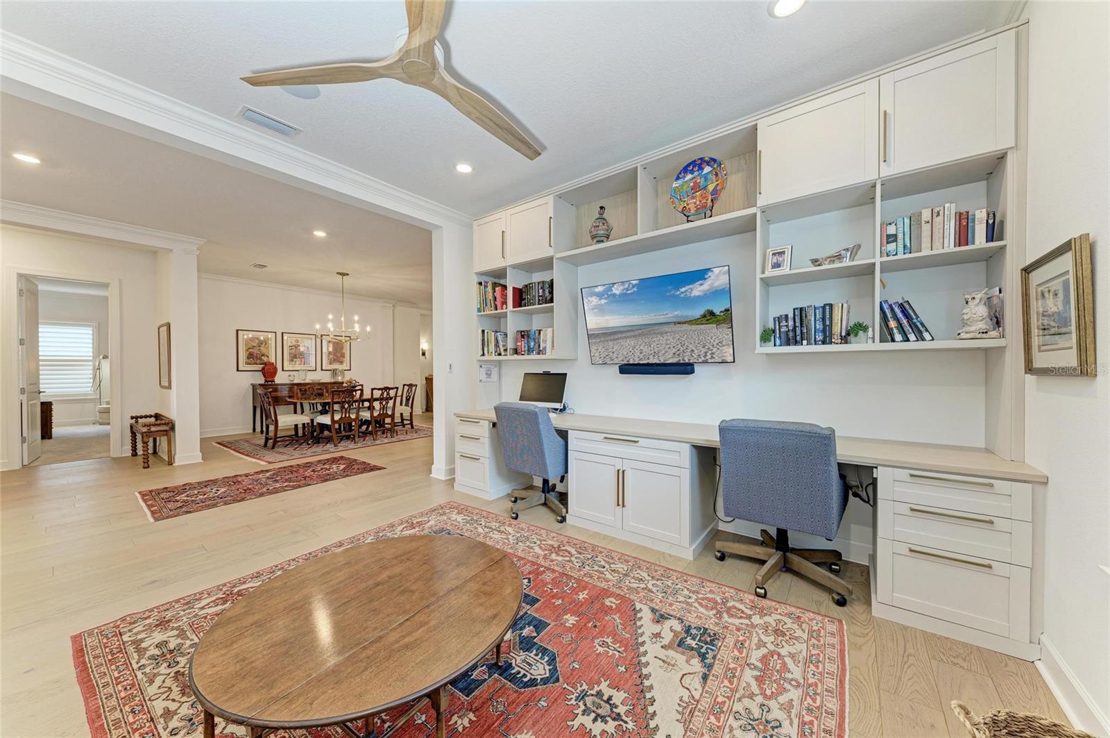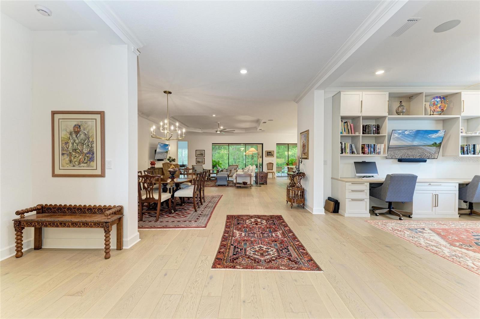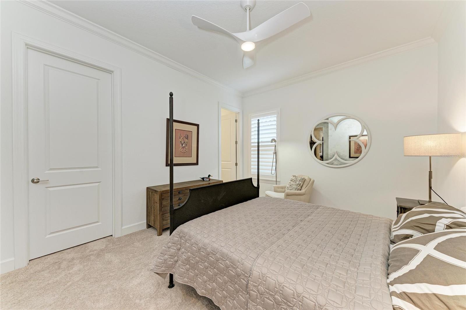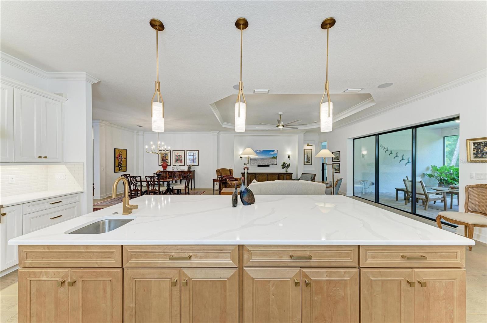IMMEDIATE MOVE-IN. Welcome to Elevated Florida Living in Esplanade – Azario at Lakewood Ranch! Experience the perfect blend of elegance, comfort, and privacy in this meticulously crafted 2023-built home offering 3 bedrooms, 3 bathrooms, a dedicated den/office, and a rare tandem 3-car garage—all thoughtfully designed with timeless upgrades and modern conveniences. From the moment you enter, you'll be captivated by the refined ambiance created by engineered wood flooring throughout (with plush carpeting in Suites 2 and 3), soaring tray ceilings adorned with crown molding, and custom upgraded lighting that complements every space. Each of the three spacious bedrooms features its own ensuite bath, offering privacy and comfort for family and guests alike. Bay windows in two bedrooms flood the rooms with natural light and add architectural charm. The home’s expansive interior showcases 8’ solid-core doors, B&G interior shutters, and soft-close cabinetry with upgraded shelving. The gourmet kitchen is a culinary dream, boasting quartz countertops, stainless steel appliances, a smart faucet, and a large kitchen island with an additional prep sink. The natural gas range is complemented by an upgraded vent hood, while designer plumbing fixtures elevate the entire space. The casual dining extension flows effortlessly into the great room—enhanced by a high-quality speaker system that continues into the office and rear lanai, perfect for entertaining or relaxing in style. Step outside to your serene, screened-in lanai with a built-in summer kitchen, ideal for alfresco dining or hosting guests against a backdrop of Florida’s natural beauty. The home backs up to a heavily wooded preserve, offering rare and sought-after privacy. Silent ceiling fans are thoughtfully placed throughout all living areas, including the lanai, to ensure year-round comfort. The garage features an acrylic-sealed floor and an enlarged tandem space to accommodate extra storage or your favorite hobby. Living in Esplanade – Azario means access to an unparalleled lifestyle, including: A private, championship 18-hole golf course Onsite golf pro shop Gated community for added security Elegant clubhouse and breakfast bar Resort-style pool, spa, and poolside Bahama Bar Culinary Center with signature dining experiences State-of-the-art fitness and wellness facilities, including a full-service spa and hair salon Tennis and pickleball courts, dog park, and scenic walking/biking trails Full-time Lifestyle & Activity Manager to curate events and social connections Whether you're enjoying a peaceful morning in your lanai or an afternoon on the golf course, this home is the epitome of luxury living in one of Lakewood Ranch’s most sought-after communities. Don’t miss the opportunity to make this move-in-ready, designer-detailed home yours—schedule your private tour today!