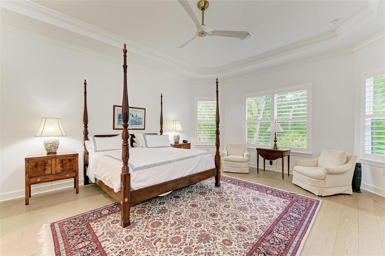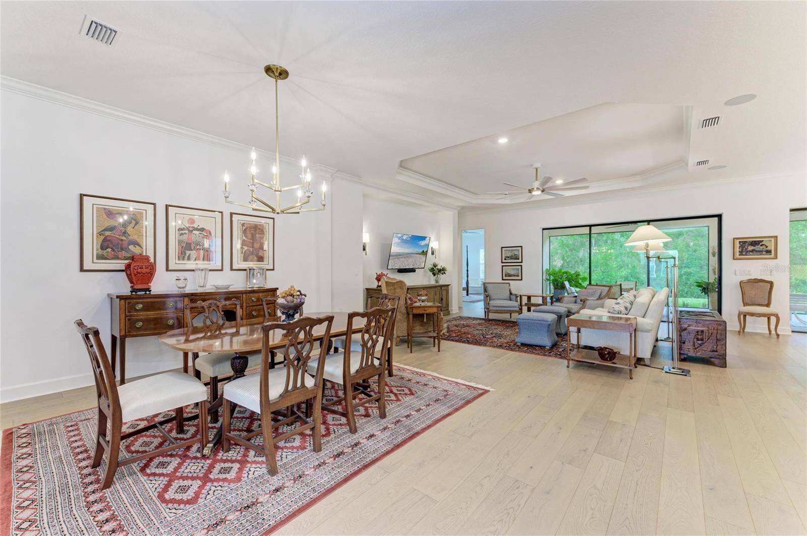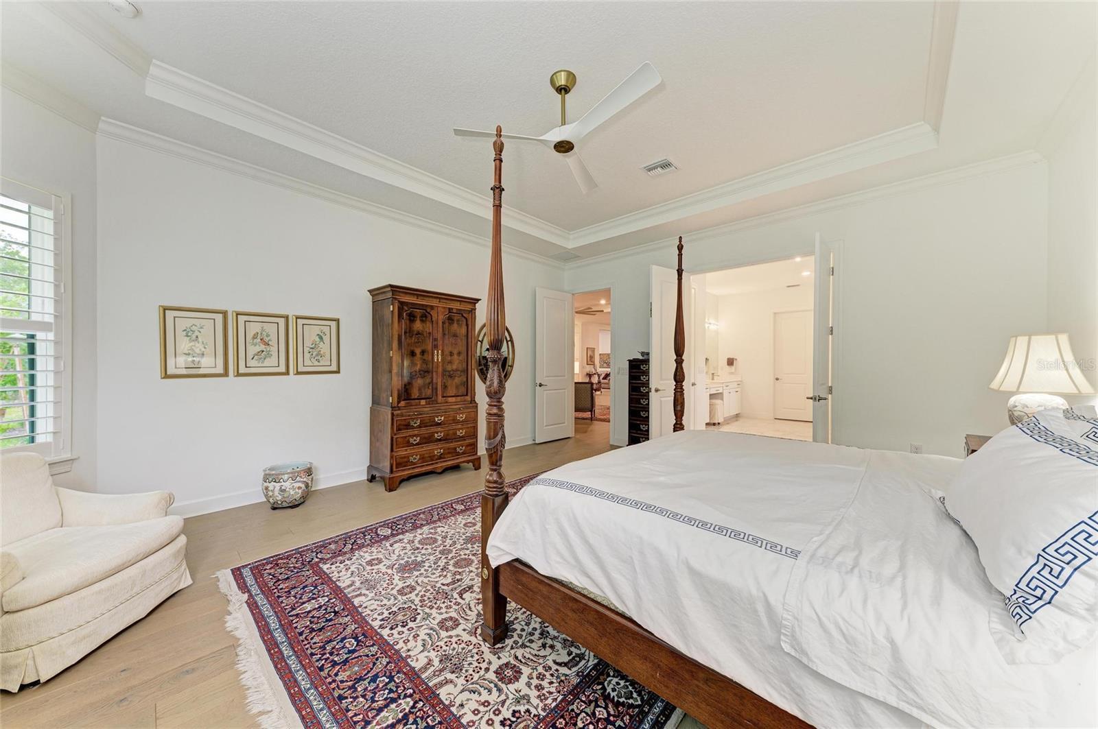 - Ceiling Fans(s), Crown Molding, Eat-in Kitchen, Living Room/Dining Room Combo, Open Floorplan, Primary Bedroom Main Floor, Smart Home, Solid Wood Cabinets, Split Bedroom, Stone Counters, Thermostat, Tray Ceiling(s), Walk-In Closet(s), Window Treatments