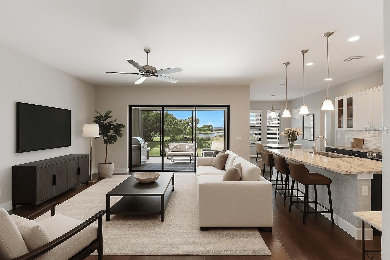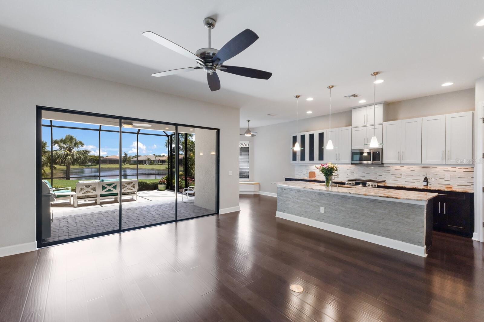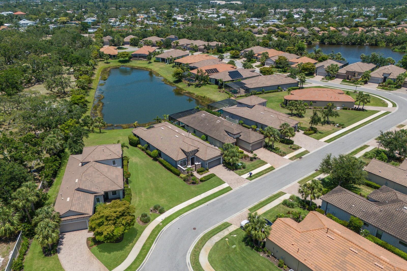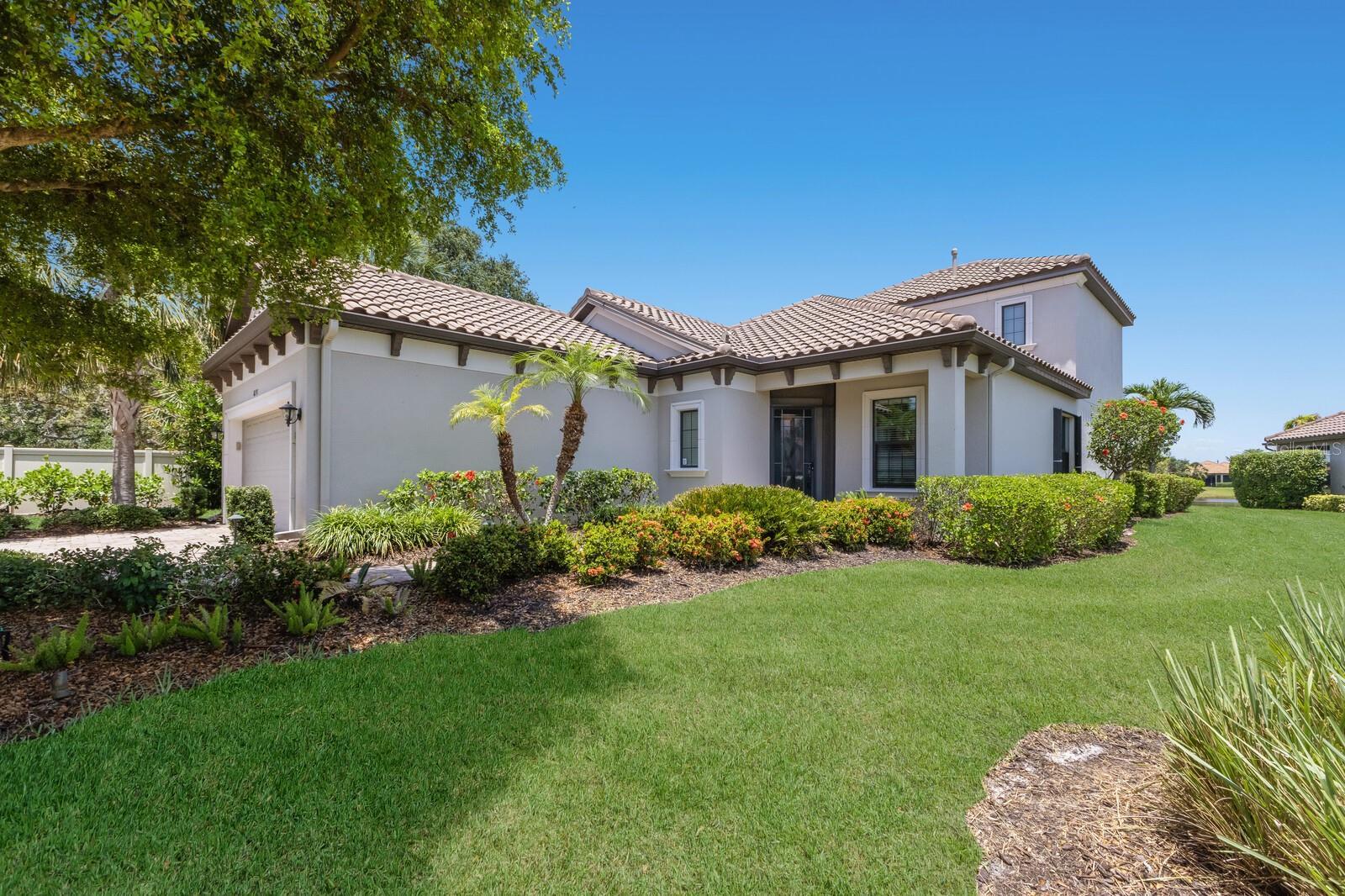 Under contract-accepting backup offers. ABSOLUTELY BEAUTIFUL CUSTOM LAKE FRONT HOME! GREAT LOCATION AND WATER VIEW! LOCATED ON A PRIVATE END LOT, AND AT THE END OF THE CUL DE SAC! THE YARD IS BEAUTIFULLY LANDSCAPED. YOU ARE GREETED BY AN ELEGANT LEADED GLASS ENTRY DOOR. HIGH CEILINGS AND WOOD PLANK LUXURY VINYL GRACE THE GREAT ROOM, DINING ROOM, KITCHEN AND DEN. THE LARGE CHEF'S KITCHEN IS FABULOUS, ACCENTED BY WOOD CABINETS WITH CROWN ACCENT, STONE COUNTER TOPS, CUSTOM BACKSPLASH, LOADS OF CABINETS, 1 1/2 YEAR OLD UPGRADED STAINLESS CAFE APPLIANCES, LARGE CENTER ISLAND WITH BREAKFAST BAR AND BREAKFAST ROOM! THIS IS A MODERN DESIGN WITH THE KITCHEN OPENING TO THE GREAT ROOM. THE PRIMARY BEDROOM IS VERY SPACIOUS AND HAS A BATHROOM WITH A WALK IN SHOWER AND A HUGE WALK IN CLOSET WITH BUILT-INS! THE SECOND BEDROOM IS EN SUITE AND ALSO HAS A WALK-IN CLOSET! THERE ARE 2 BEDROOMS, 2 1/2 BATHS DOWNSTAIRS PLUS A FULL BATH ON THE SECOND FLOOR.*****THIS IS IMPORTANT! THE SECOND FLOOR IS A HUGE FINISHED SPACE THAT COULD VERY EASILY BE TURNED INTO A THIRD EN SUITE BEDROOM PLUS AN ADDITIONAL ROOM AT A LOW COST, ADDING SUBSTANTIAL DOLLAR VALUE TO THIS HOME. THIS IS AN OUTSTANDING OPPORTUNITY!!! GATED ESPLANADE BY SIESTA KEY HAS AN OUTSTANDING LOCATION, CLOSE TO SHOPPING, RESTAURANTS, AND IS ONLY A FEW MINUTES FROM WORLD FAMOUS SIESTA BEACH. THE LOW HOA FEE INCLUDES YOUR LANDSCAPING CARE, WATERING YOUR LAWN, A BEAUTIFUL CLUB HOUSE WITH A RESORT POOL, SPA, FITNESS ROOM, LARGE EVENT ROOM, TENNIS AND PICKELBALL COURTS, FIRE PIT WITH SEATING, BOCCE BALL AND VOLLEYBALL COURTS, AND A LAKE VIEW PATIO! DOG LOVERS WILL ENJOY THE ENCLOSED DOG PARK FOR THEIR PETS. DON'T MISS THIS SPECIAL HOME AND VERY SPECIAL COMMUNITY!!! THE SELLER GOT A $2500 QUOTE FOR REPLACING THE UPSTAIRS CARPET AND WILL CREDIT THE BUYER $2500 AT CLOSING.