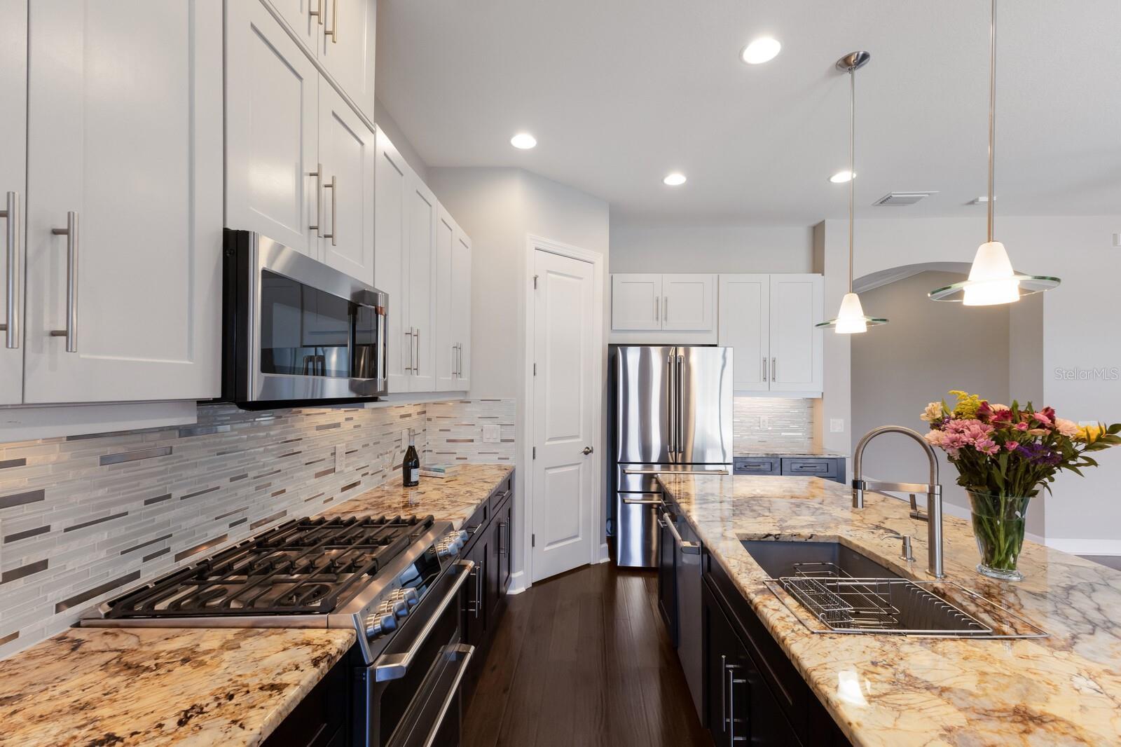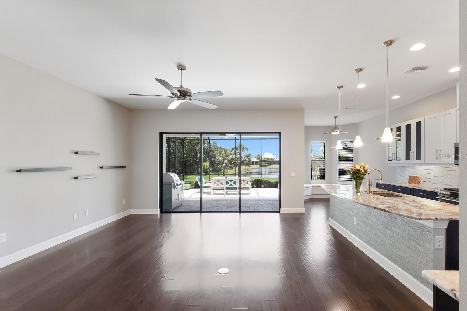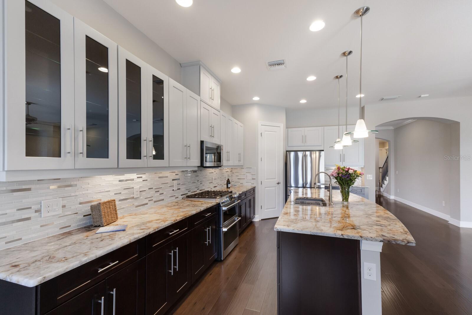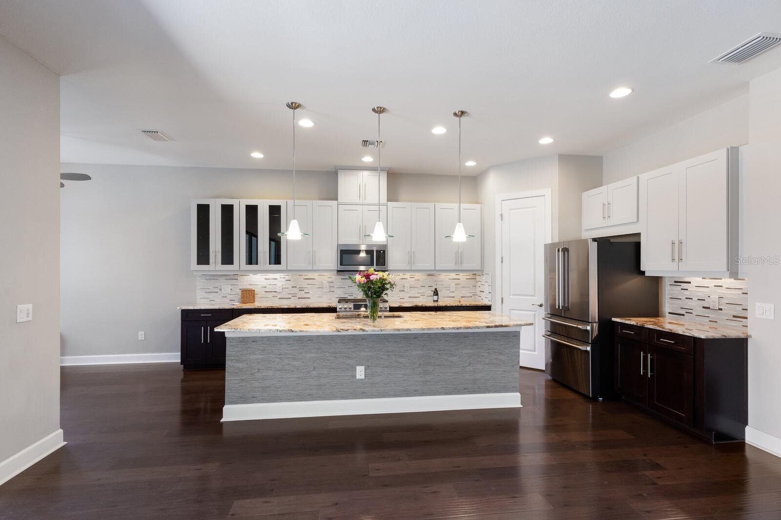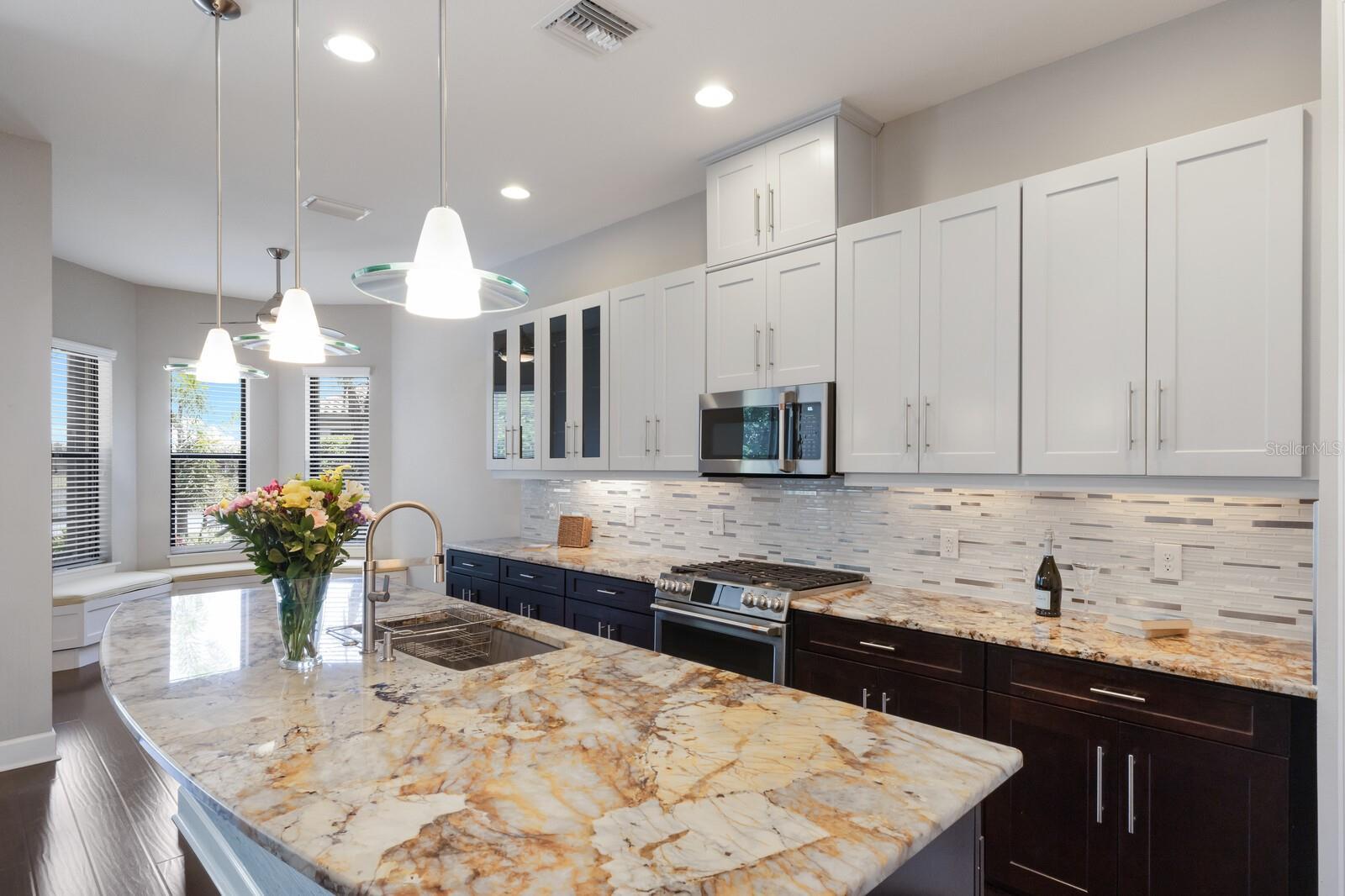 Under contract-accepting backup offers. ABSOLUTELY BEAUTIFUL CUSTOM LAKE FRONT HOME! GREAT LOCATION AND WATER VIEW! LOCATED ON A PRIVATE END LOT, AND AT THE END OF THE CUL DE SAC! THE YARD IS BEAUTIFULLY LANDSCAPED. YOU ARE GREETED BY AN ELEGANT LEADED GLASS ENTRY DOOR. HIGH CEILINGS AND WOOD PLANK LUXURY VINYL GRACE THE GREAT ROOM, DINING ROOM, KITCHEN AND DEN. THE LARGE CHEF'S KITCHEN IS FABULOUS, ACCENTED BY WOOD CABINETS WITH CROWN ACCENT, STONE COUNTER TOPS, CUSTOM BACKSPLASH, LOADS OF CABINETS, 1 1/2 YEAR OLD UPGRADED STAINLESS CAFE APPLIANCES, LARGE CENTER ISLAND WITH BREAKFAST BAR AND BREAKFAST ROOM! THIS IS A MODERN DESIGN WITH THE KITCHEN OPENING TO THE GREAT ROOM. THE PRIMARY BEDROOM IS VERY SPACIOUS AND HAS A BATHROOM WITH A WALK IN SHOWER AND A HUGE WALK IN CLOSET WITH BUILT-INS! THE SECOND BEDROOM IS EN SUITE AND ALSO HAS A WALK-IN CLOSET! THERE ARE 2 BEDROOMS, 2 1/2 BATHS DOWNSTAIRS PLUS A FULL BATH ON THE SECOND FLOOR.*****THIS IS IMPORTANT! THE SECOND FLOOR IS A HUGE FINISHED SPACE THAT COULD VERY EASILY BE TURNED INTO A THIRD EN SUITE BEDROOM PLUS AN ADDITIONAL ROOM AT A LOW COST, ADDING SUBSTANTIAL DOLLAR VALUE TO THIS HOME. THIS IS AN OUTSTANDING OPPORTUNITY!!! GATED ESPLANADE BY SIESTA KEY HAS AN OUTSTANDING LOCATION, CLOSE TO SHOPPING, RESTAURANTS, AND IS ONLY A FEW MINUTES FROM WORLD FAMOUS SIESTA BEACH. THE LOW HOA FEE INCLUDES YOUR LANDSCAPING CARE, WATERING YOUR LAWN, A BEAUTIFUL CLUB HOUSE WITH A RESORT POOL, SPA, FITNESS ROOM, LARGE EVENT ROOM, TENNIS AND PICKELBALL COURTS, FIRE PIT WITH SEATING, BOCCE BALL AND VOLLEYBALL COURTS, AND A LAKE VIEW PATIO! DOG LOVERS WILL ENJOY THE ENCLOSED DOG PARK FOR THEIR PETS. DON'T MISS THIS SPECIAL HOME AND VERY SPECIAL COMMUNITY!!! THE SELLER GOT A $2500 QUOTE FOR REPLACING THE UPSTAIRS CARPET AND WILL CREDIT THE BUYER $2500 AT CLOSING.