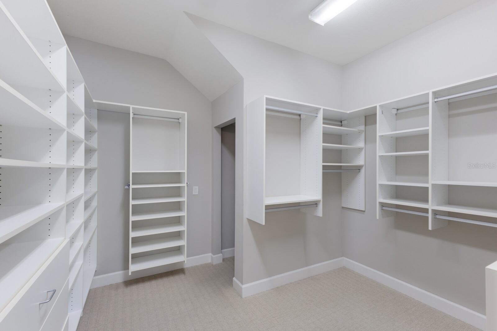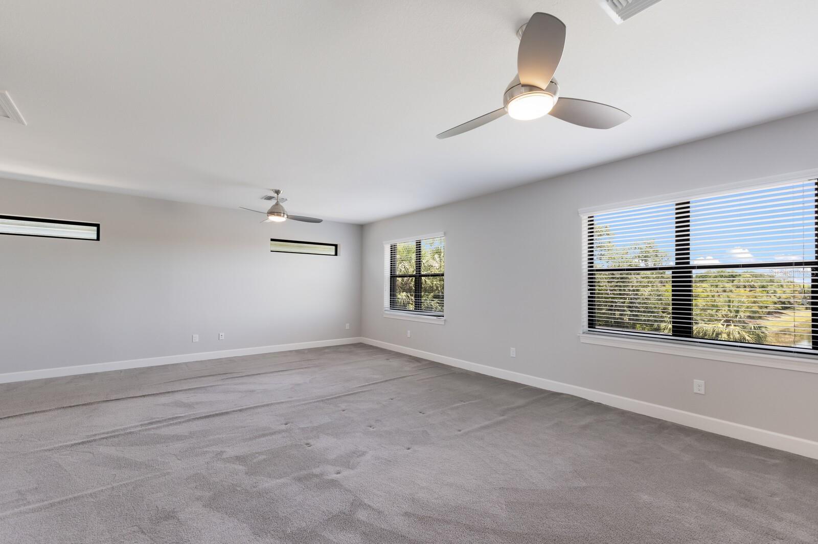- Ceiling Fans(s), Central Vaccum, Eat-in Kitchen, High Ceilings, Kitchen/Family Room Combo, Open Floorplan, Primary Bedroom Main Floor, Solid Surface Counters, Solid Wood Cabinets, Split Bedroom, Stone Counters, Thermostat, Walk-In Closet(s), Window Treatments