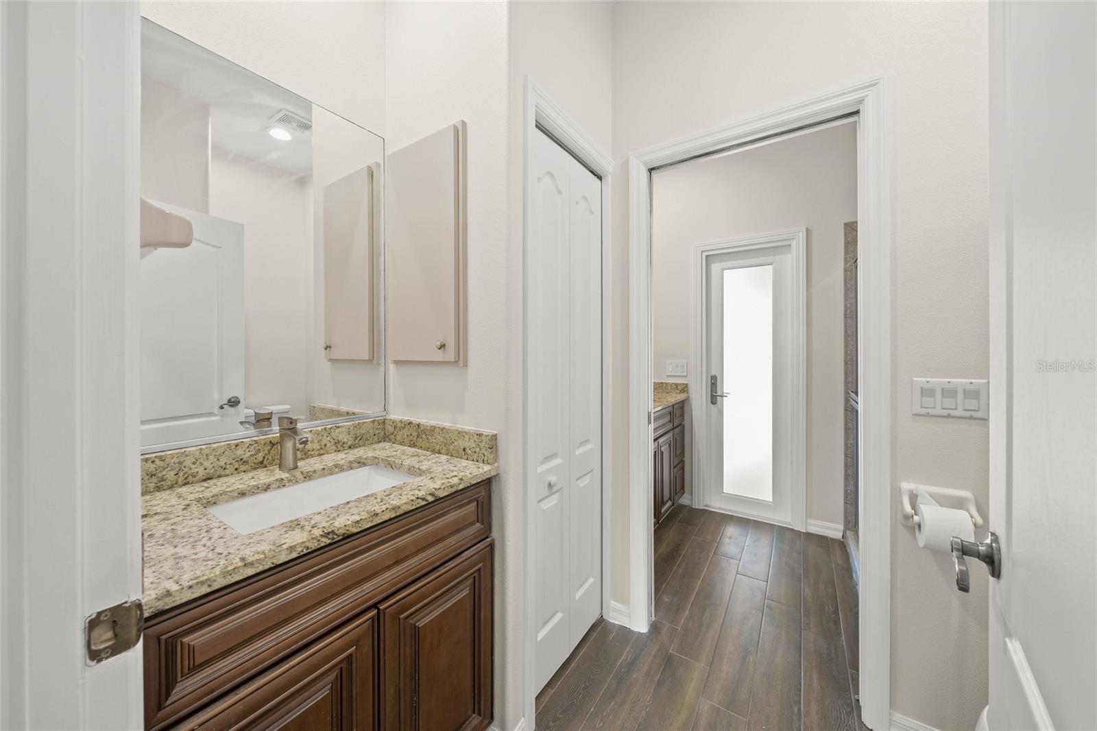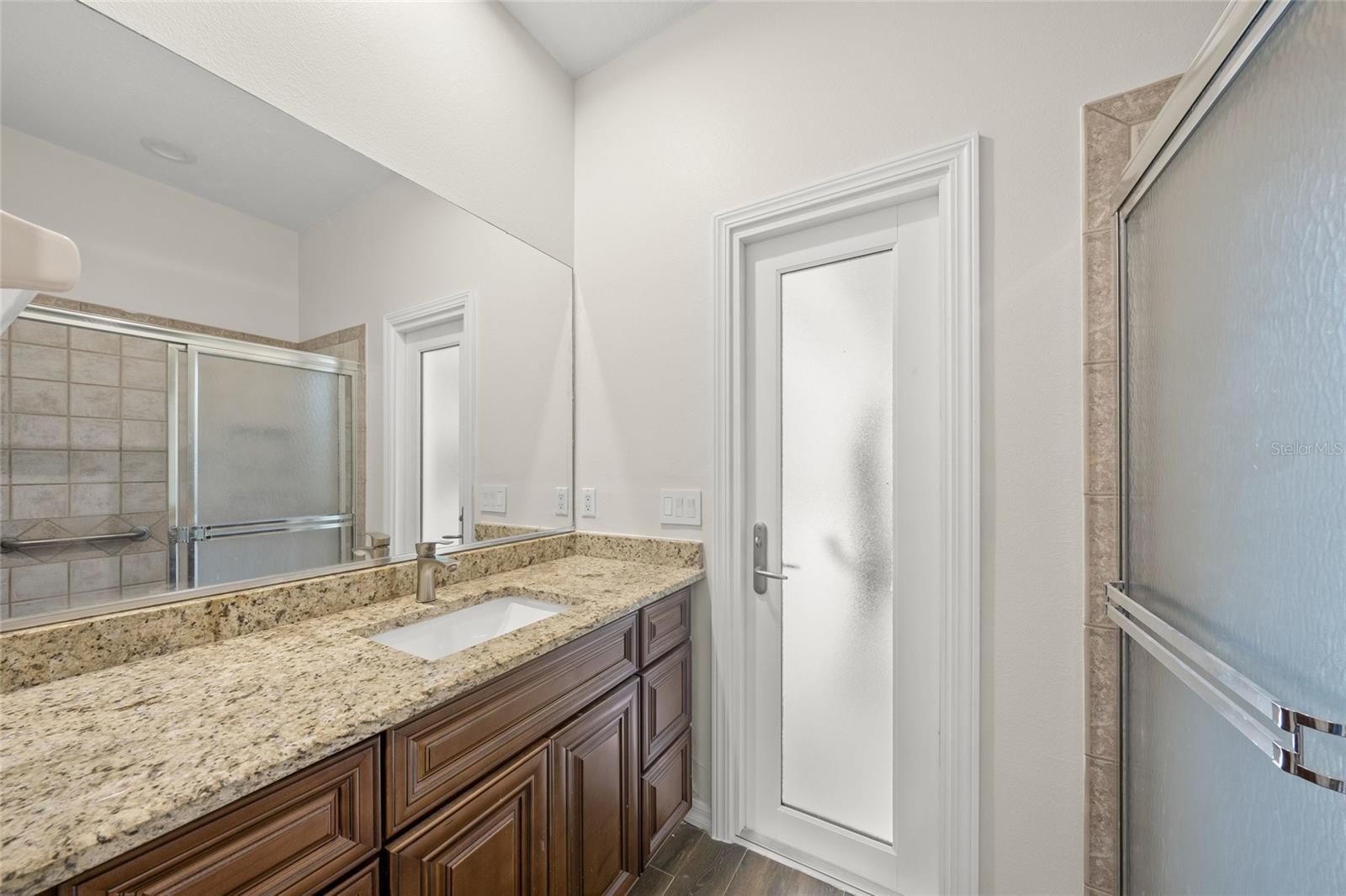 - Outdoor Shower, Rain Gutters, Sidewalk, Sliding Doors