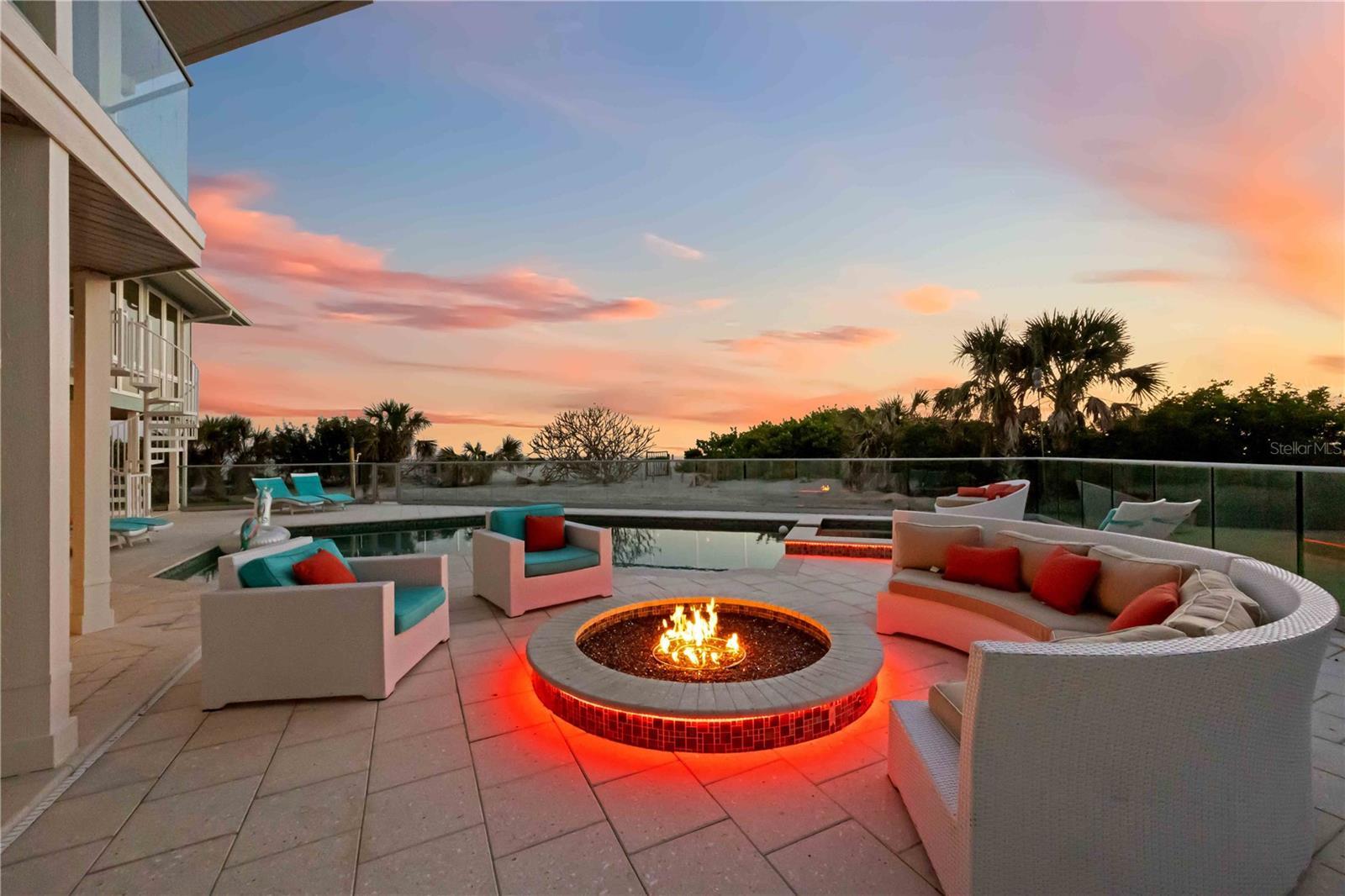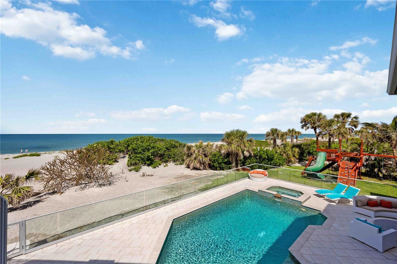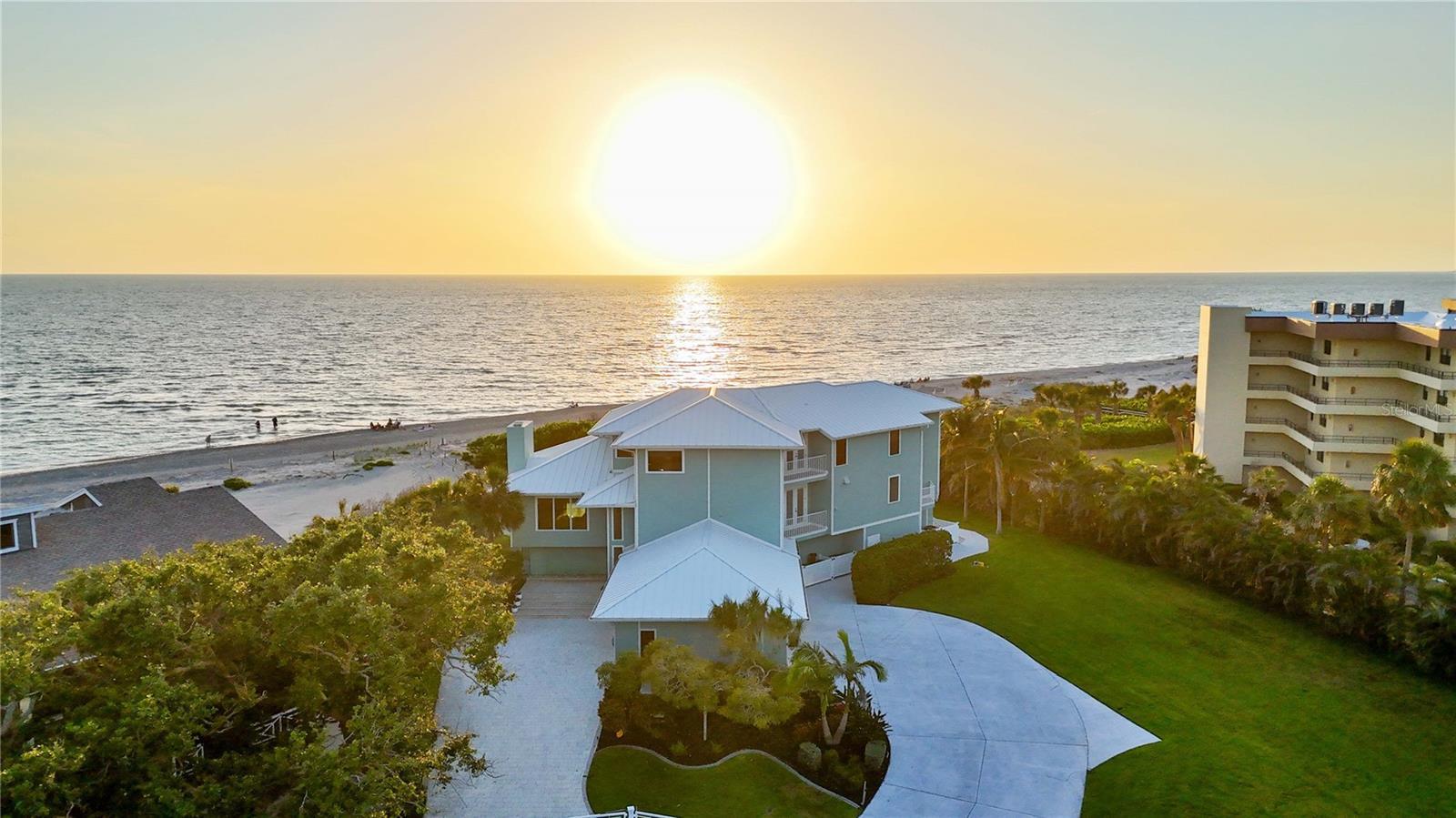 Exclusive Gulf Coast Luxury Beachfront Estate with Private Gulf Access and Endless Ocean Views Welcome to one of the Gulf Coast’s most private and luxurious beachfront estates—an extraordinary opportunity to own a rare stretch of direct Gulf frontage in Florida. Tucked away at the end of a quiet cul-de-sac and secured behind dual gated entrances, this expansive oceanfront property is enveloped in lush tropical landscaping and designed for those who value seclusion, sophistication, and long-term legacy. Boasting 233 feet of pristine beachfront along the Gulf of Mexico, this remarkable estate spans over 8,000 square feet under air and has been completely reimagined through a meticulous, high-end renovation. It artfully blends timeless elegance with resort-style comfort, offering panoramic water views from nearly every room. Here, no neighbors interrupt the horizon—only serene coastal breezes and iconic Florida sunsets that feel like they belong to you alone. Designed for multi-generational living or grand-scale entertaining, this coastal residence features five private bedroom suites—including a separate in-law or nanny suite—as well as a dedicated home office that can serve as a sixth bedroom. Two full gourmet kitchens, five expansive balconies, and an elevator servicing all three levels ensure exceptional comfort and convenience throughout. The main living areas showcase open-concept design, natural light, and breathtaking vistas that define luxury Gulf Coast living. Resort-level amenities abound, including a heated, saltwater pool that reaches 10 feet deep, a hot tub with massage jets, a full steam room, and an infrared sauna for ultimate relaxation. A whole-home Sonos audio system, a 12-camera security network, and a powerful 60 kW natural gas generator provide modern convenience and peace of mind. Water quality is managed by an advanced reverse osmosis filtration system and whole-house conditioner, while a 70-foot private well supplies multi-zone irrigation for the manicured grounds. The property also features a unique drive-through two-car garage with an air-conditioned storage loft, three HVAC zones plus a mini-split system, LED color-changing lighting throughout, and outdoor enhancements such as a built-in gas grill, a fire pit, and an illuminated waterfall feature—ideal for entertaining under the stars. An adjacent buildable lot expands your opportunity for growth, allowing space for a future guest house, expanded estate grounds, or added privacy. This is more than a home—it's a one-of-a-kind legacy property offering privacy, luxury, and an irreplaceable position along Florida’s Gulf Coast. Now available exclusively by private appointment, this luxury beachfront retreat is the ultimate in coastal real estate. Don’t miss your chance to own a slice of Gulf-front paradise.