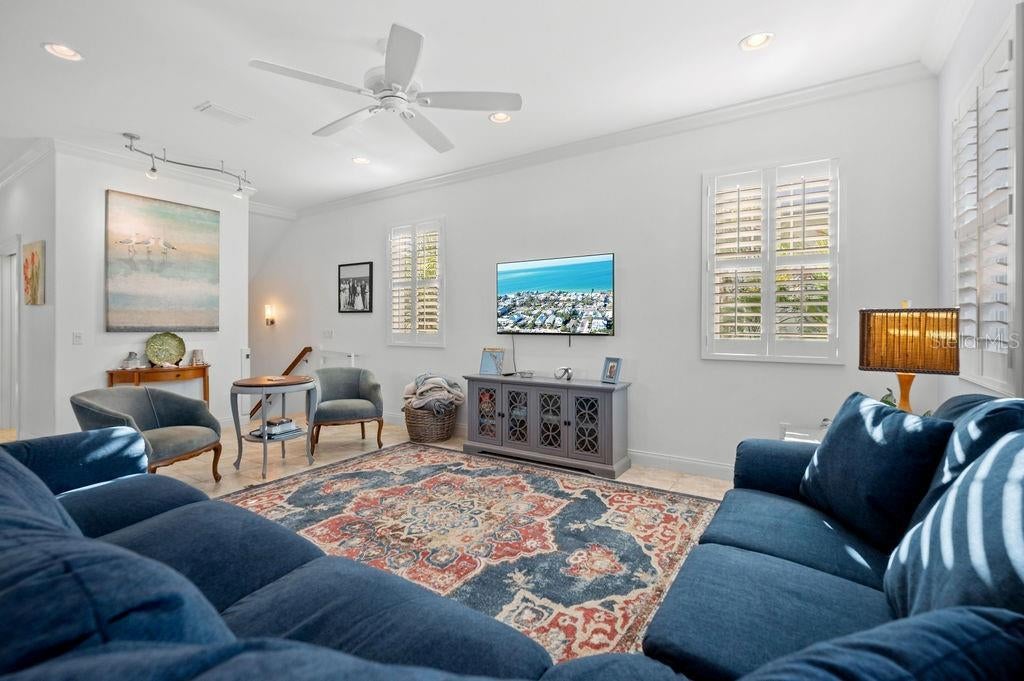 - Ceiling Fans(s), Crown Molding, Elevator, High Ceilings, Living Room/Dining Room Combo, Open Floorplan, Primary Bedroom Main Floor, Solid Surface Counters, Walk-In Closet(s)