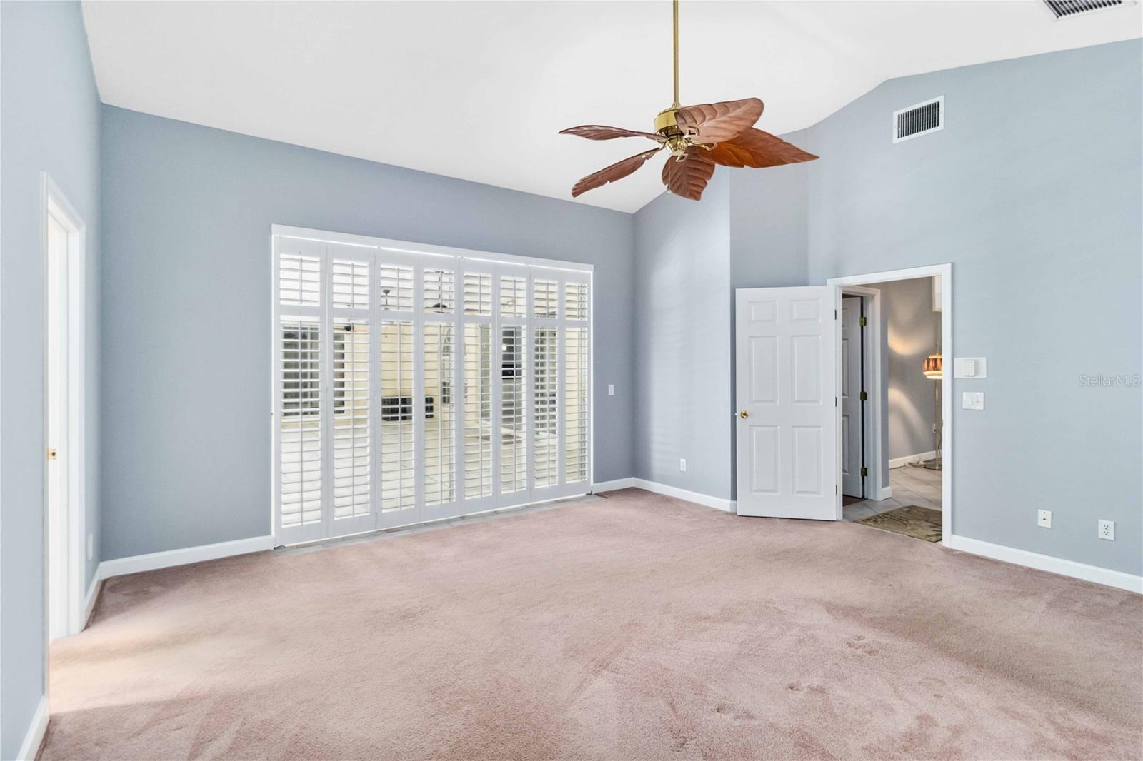 - Cathedral Ceiling(s), Ceiling Fans(s), High Ceilings, Open Floorplan, Primary Bedroom Main Floor, Solid Wood Cabinets, Split Bedroom, Thermostat, Walk-In Closet(s), Window Treatments