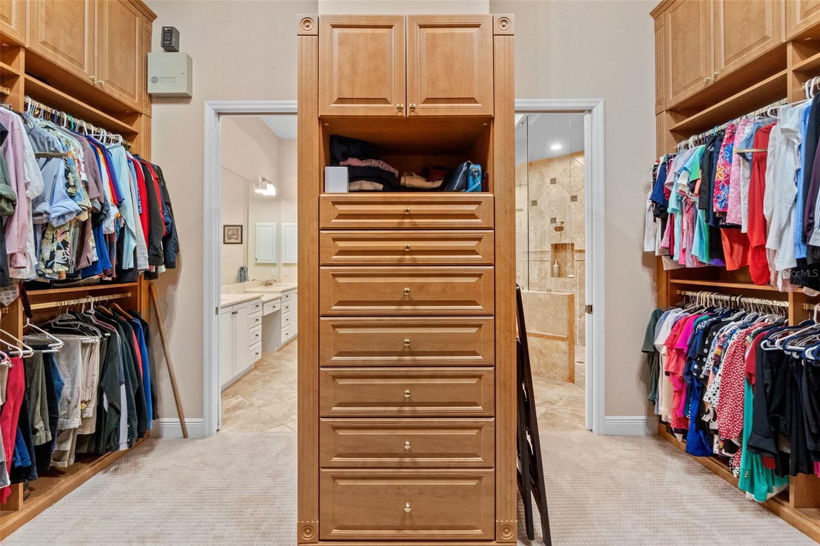 - Built-in Features, Ceiling Fans(s), Crown Molding, Dry Bar, Kitchen/Family Room Combo, Open Floorplan, Primary Bedroom Main Floor, Solid Wood Cabinets, Split Bedroom, Stone Counters, Thermostat, Vaulted Ceiling(s), Walk-In Closet(s), Wet Bar, Window Treatments