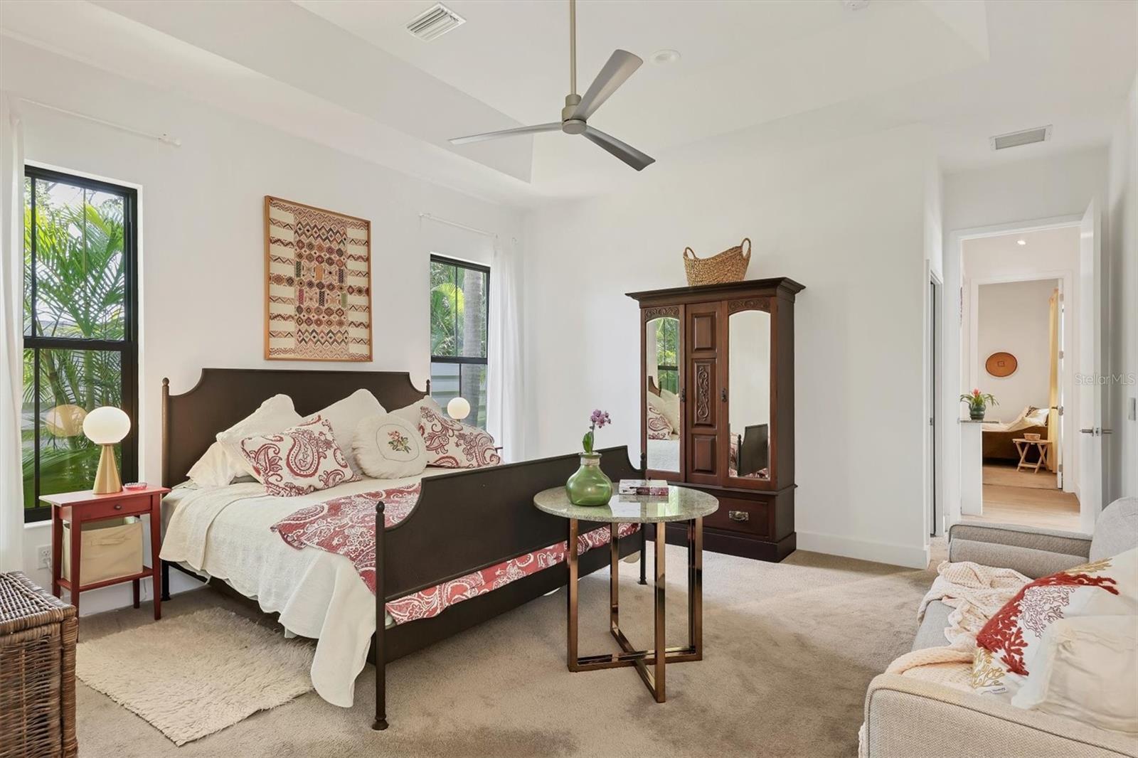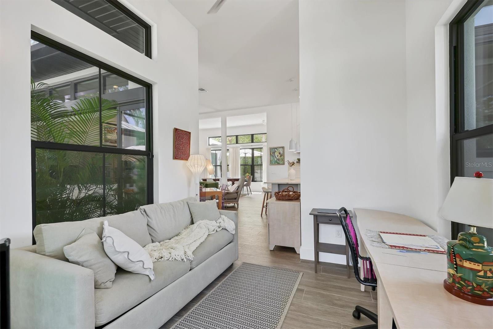 One of a kind residence surrounded by botanical splendor offered for vacation or seasonal rental. Whether visiting Sarasota for its stunning white sand beaches or business you will find unparalleled privacy, while close to everything, the vibrant downtown, restaurants, shopping, hospitals, comparable to none. Beautiful furnishings, artistry and designer luxury oozes from every corner. Three charming bedrooms, three and a half baths, guest wing, office bonus room, sleeps 6 . Two lanais for relaxation, outdoor living and an amazing heated, salt water therapy spa awaits your senses. Gourmet kitchen, 12 ft ceilings and sliding doors open up this residence to unexpected garden spaces. Wifi, laundry, ample private parking. Available off season May-Dec $6,700 per month. On season available Jan & Apr @ $9,000 per month; Feb & Mar $9,500. Available Weekly off-season @ $2,500 per week; Holiday week(s) @ $3,000 per week. Small non-shedding dogs require prior owner approval. No smoking permitted. Owner has several outdoor parking spaces available for you and your guests.