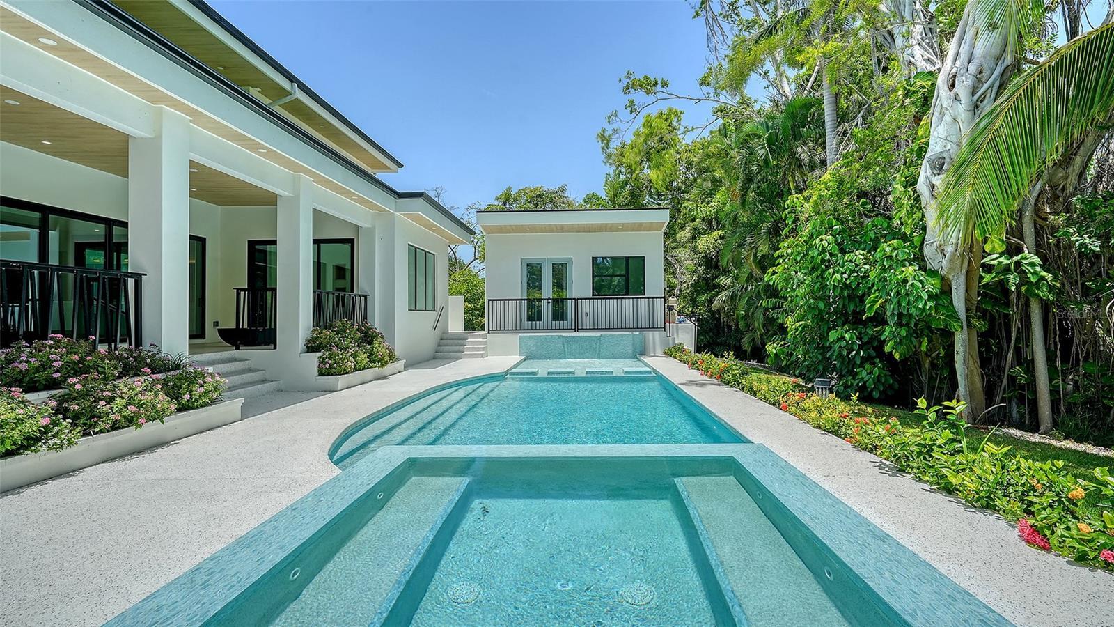One or more photo(s) has been virtually staged. LOWEST PRICED NEW CONSTRUCTION WEST OF TRAIL HOSPITAL/SOUTHSIDE VILLAGE AREA! Truly a Coastal Classic Modern Masterpiece Located in One of the MOST Sought After Neighborhoods West of the Trail in Sarasota! This Gorgeous HARBOR ACRES Home is NOT your Typical Very Traditional Boring Florida Home! This Home was Built for the Discerning Buyer who Appreciates Modern Art and Design! Every Room is Unique and Designed with Attention to Detail and Gracefully Incorporates the Outside Indoors via Walls with Large Picture Windows. This Amazing Property Features: A MAIN HOUSE w/5 Bedrooms, 5.5 Baths, 2 Master Suites (Up & Down) both w/Zen-like 5-Piece Master Baths w/Whirlpool Soaking Tubs and Separate Showers; Fabulous Great Room w/Soaring Ceilings, Wall Fireplace and Sliders Looking Out to the Aqua Pool and Spa and Tropical Landscape; Extra Flex Room off Kitchen w/Built in Art Niche makes a Perfect Dining Room, Den/Office w/Built-ins, Fabulous Kitchen w/Separate Refrigerator, Freezer & Wine Refrigerator, Luxury Dacor Appliances, Quartz Counters, Designer Kitchen Cabinetry, Pantry, Eating Bar; Media Bonus Room w/Balcony, Laundry Room w/Storage, Open Glass Staircase to Upstairs, Elevator Shaft to All Floors, Porcelain Tile and Elegant Lighting Fixtures throughout, Bosch AC Units, 2 Balconies Upstairs, En-Suite Bedrooms, Powder Room w/Glass Art Sink, Impact Windows and Sliders w/Low E Glass, Oversized 2 Car Garage and an Oversized 1 Car Garage w/Electric Charging Stations, Smart Home w/Fully Integrated Wifi System, Covered Lanai w/Fully Equipped Out Door Kitchen and Fire Pit. A Detached CASITA GUEST HOUSE w/Separate Entrance, Full Bath, Kitchenette and One Bedroom overlooking the Pool Court Yard, Perfect for a Nanny, House Keeper, Teen, MIL or Pool Party Room. The Outdoor Features: Gorgeous 35 Foot Saltwater Pool w/Waterfall, Huge Sun Shelf and Hot Tub Spa; Lush Tropical Landscaping, Tiered Flower Planters, Low Maintenance Yard, Irrigation, Circular Driveway and Privacy Wall. Home was Built nearly 2 FT above the Flood Zone and does NOT Require Flood Insurance. This Never Before Been Lived in Home is Ready and Waiting for It's New Owner! Located just Minutes to Sarasota Memorial Hospital and Medical Center, Morton's Market, Downtown Sarasota, Shopping, Dining, St Armand's and the Best Beaches!