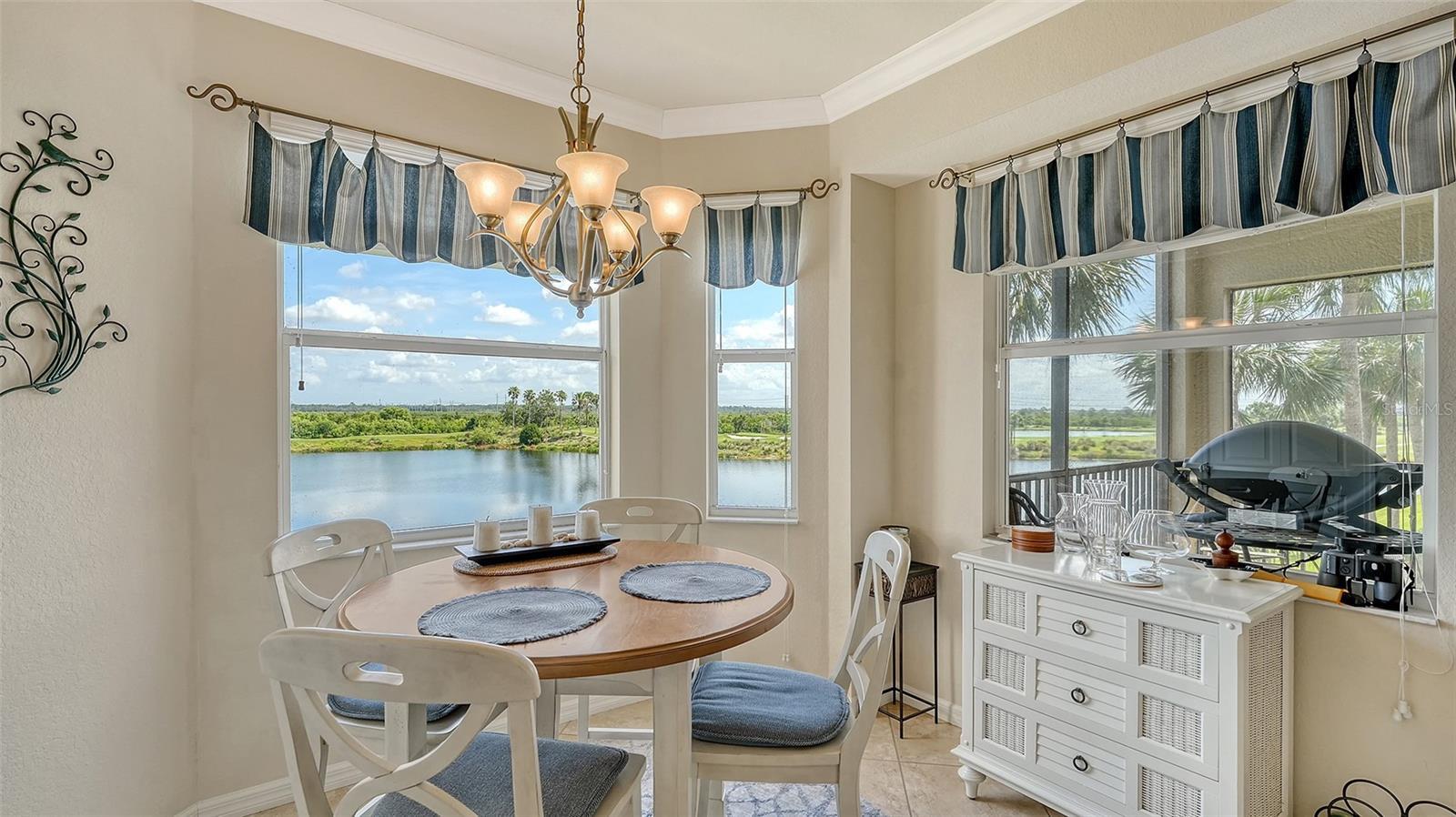 Breathtaking golf and lake views await you in this premium "Brookside" floorplan condo, located in the sought-after River Strand community. Perched on the 3rd floor, this home has unmatched panoramic views of one of the largest lakes in River Strand, along with tranquil vistas of the lush golf course and pristine preserve areas. Imagine waking up to serene mornings and unwinding with sunsets over the rolling greens. This condo is Rented turnkey furnished, making it move-in ready for you to immediately enjoy everything River Strand has to give. The open, light-filled great room and breakfast nook are designed to provide cozy spaces to soak in the views throughout the day. Additionally, the home features stainless steel appliances, solid surface countertops, crown molding, tile on the diagonal, and a spacious walk-in closet in the master bedroom. A separate storage space is perfect for keeping your golf clubs and bicycles organized. Your rental time includes a free equity golf membership to the renowned 27-hole championship golf course, making this property a golfer’s dream. River Strand Country Club also offers 8 HAR-TRU lighted tennis courts for active enthusiasts. After a game, cool off in the resort-style main pool, complete with a poolside grill, sand "beach," and resistance pool. Stay fit in the state-of-the-art 3,500 sq ft fitness center or enjoy gourmet dining at the clubhouse restaurant. With its incredible amenities, unbeatable views, and convenient location within a mile of I-75 for easy access to Sarasota, Lakewood Ranch, and Tampa, this condo is perfect as a second home or a lucrative rental property. Beaches, shopping, and restaurants are just minutes away, ensuring that every convenience is at your fingertips. Don’t miss your chance to own this exceptional property with unparalleled views. Schedule a visit today and experience the best of golf course and lakefront living at River Strand.