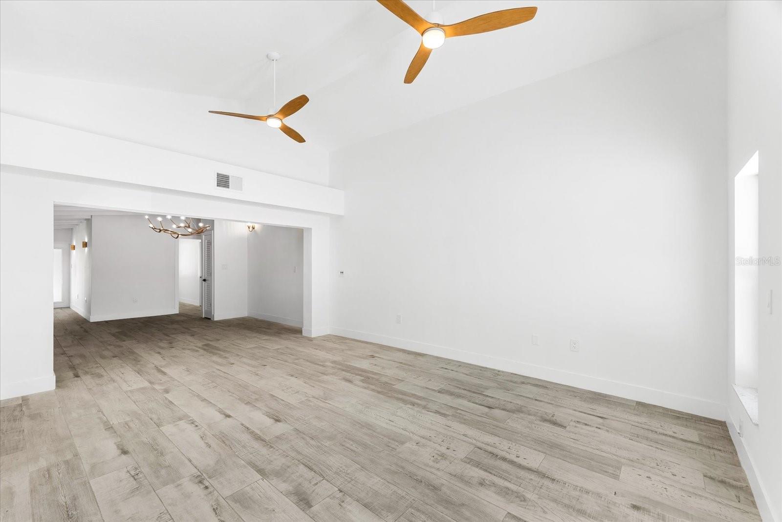 - Ceiling Fans(s), High Ceilings, Primary Bedroom Main Floor, Thermostat, Vaulted Ceiling(s)