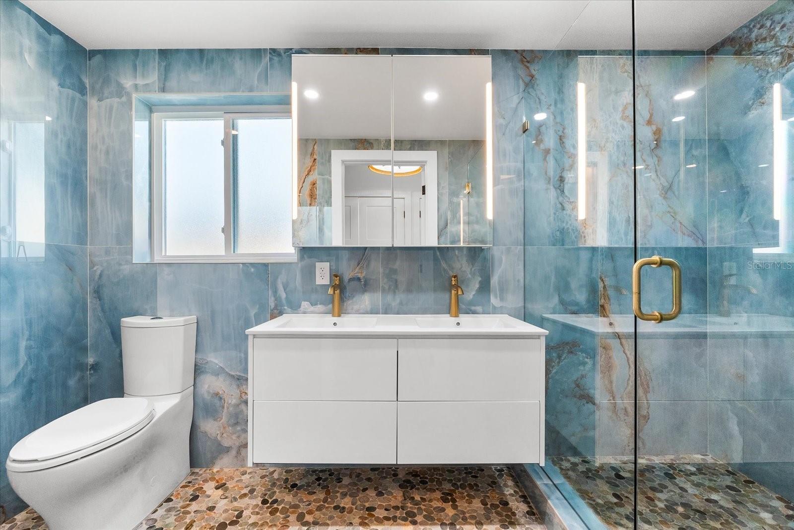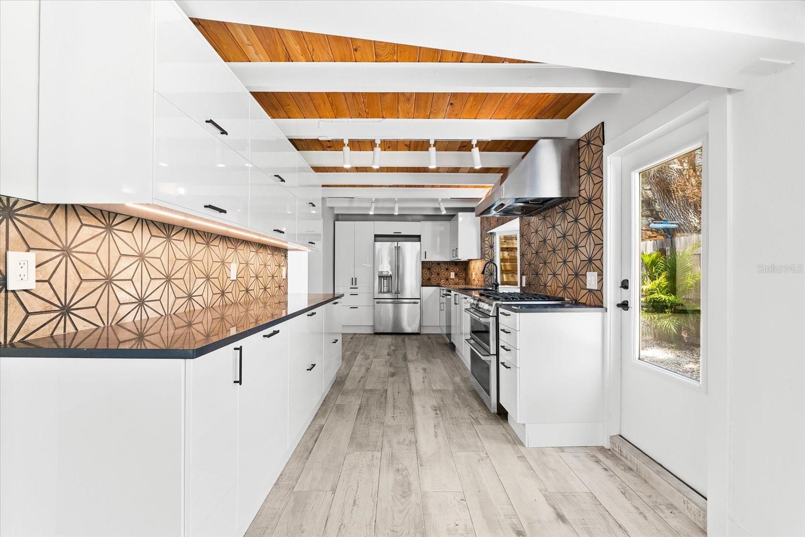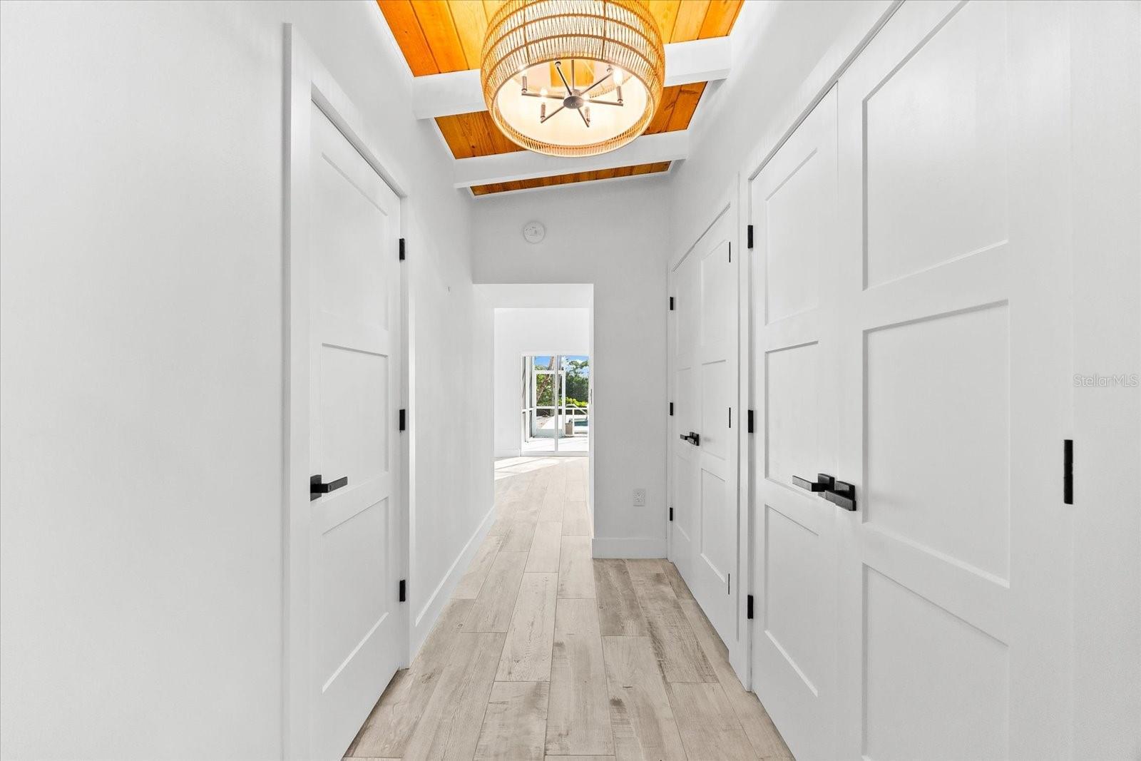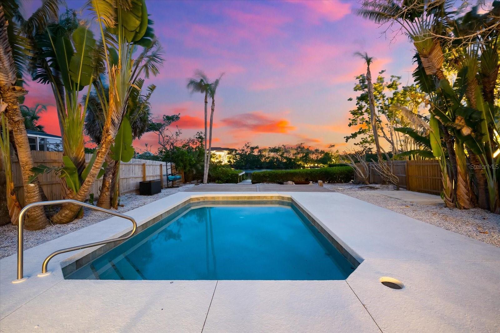 One or more photo(s) has been virtually staged. Incredible Value! Don't miss this one! Buy now and enjoy for season. Welcome to The Blue Lagoon... when you walk in it feels like new construction! A private modern coastal retreat perfectly positioned on Siesta Key’s tranquil Heron Lagoon... the ultimate vacation home or investment property. This exceptional, gated quarter-acre compound offers the rare combination of serenity, design, and functionality, ideally located between Turtle Beach and Crescent Beach, just moments from the iconic Point of Rocks. Enter through a secure electric gate framed by custom wood fencing and arrive under a majestic live oak canopy that sets the tone for the natural beauty and privacy within. Designed to maximize indoor-outdoor living, the home features two expansive screened lanais, a sparkling private pool, an extensive wood deck, lush tropical landscaping, and a private dock where you can launch a paddleboard, kayak, or canoe directly into the peaceful lagoon. The single-level custom residence offers a thoughtfully designed 3-bedroom, 2-bath layout with wide-plank wood-look tile flooring in soft white and gray tones, crisp white walls, black metal hardware, and premium wood and metal ceiling fans throughout. Soaring ceilings are clad in hand-cut cypress wood shiplap, adding both natural warmth and acoustic insulation. The gourmet kitchen is a chef’s dream, featuring high-gloss European cabinetry, quartz countertops, a striking wood-grain tile backsplash, and Café Series stainless steel appliances including a six-burner gas range with a double oven and a counter-depth French door refrigerator with filtered and instant hot water. A whole-home water filtration system ensures pure water at every tap. The spacious master suite is a true sanctuary with a double-closet hallway, soaring ceilings, and a large window and sliding glass door that open to the lanai. The spa-inspired en suite bath features floating dual white European vanities, a luxurious rainwater shower with Kohler gold fixtures, floor-to-ceiling “blue skies” tile, and organic gray cobbled stone flooring. The peaceful sound of rainfall on the metal roof at the rear of the home enhances the retreat-like experience. The guest bath offers equally sophisticated design, with iridescent honeycomb tile behind a deep soaking tub and rich gray tilework throughout. Every detail of this home has been carefully curated to reflect the essence of the Siesta Key lifestyle, luxurious, relaxed, and deeply connected to nature. Whether you’re looking for a full-time residence or a seasonal escape, The Blue Lagoon offers a once-in-a-lifetime opportunity to own a coastal property where water views, natural beauty, and modern comforts unite in perfect harmony. In addition to being a stunning private residence, this property is also ideal for seasonal use or as a high-performing vacation rental. Similar properties on Siesta Key routinely generate over $100,000 per year in rental income, making this an excellent opportunity to enjoy the home while having it support itself or even contribute toward paying it off. Use it as a vacation retreat while earning income and always have a beautiful place to stay on Siesta Key. And if your long-term vision includes building your dream home, please inquire directly about available building plans for the lot by Island Series with Yoder Homes. Visit the link for a 3D tour, video and floor plan. https://nextlevelmediasrq.hd.pics/8234-Midnight-Pass-Rd/idx