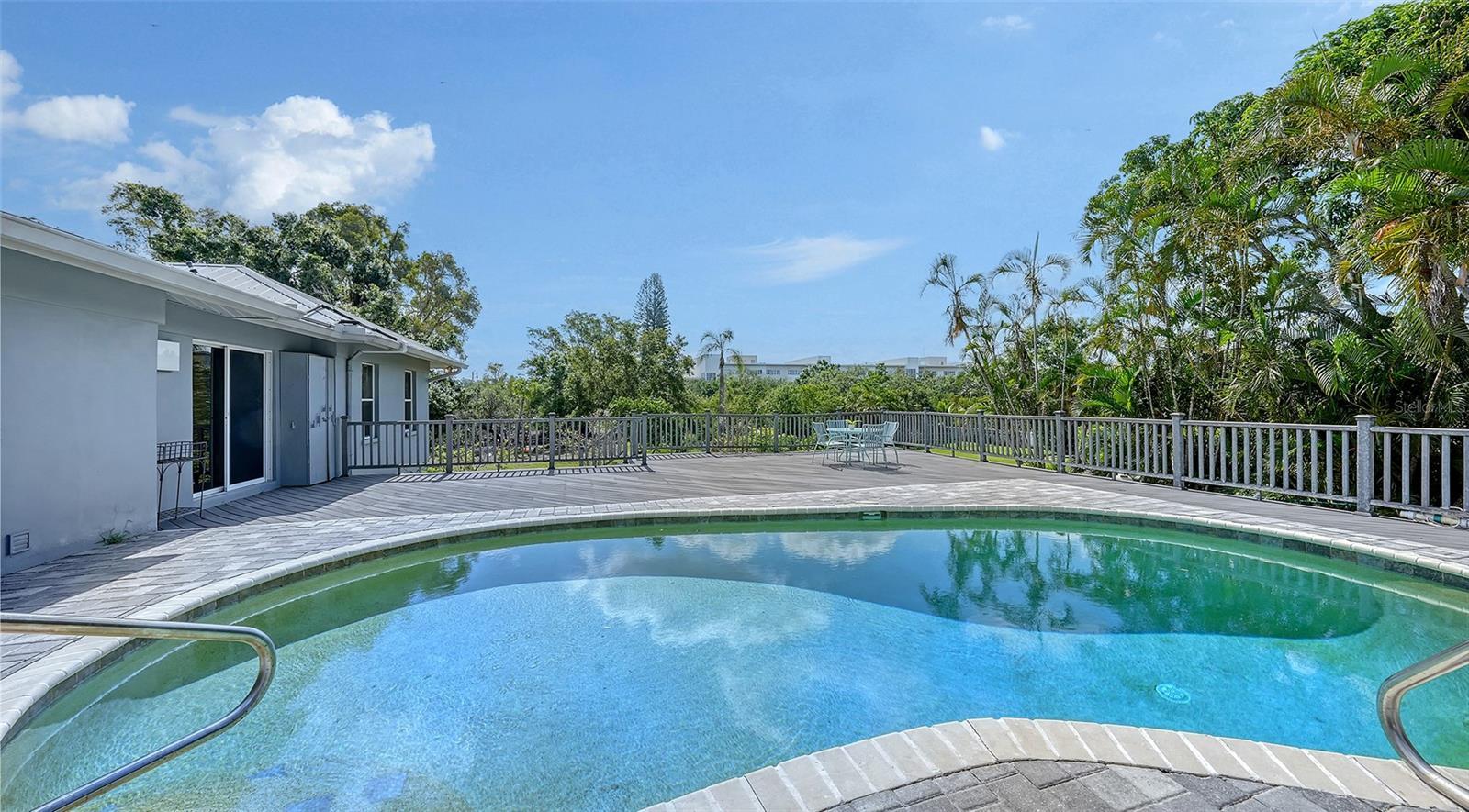 NOW RE-PRICED AND AN AMAZING VALUE, THIS GREAT WATERFRONT PROPERTY and single-family pool home is sited on nearly 1 acre of desirable, elevated land along the serene shores of Phillippi Creek and is a rare opportunity to own a private waterfront retreat in the heart of Sarasota. Tucked away in a quiet, established neighborhood and built at 16 ft above sea level in the X flood zone with great proximity to US 41 and amenities, this 4-bedroom, 3.5-bathroom plus office, 1-story residence seamlessly blends modern comfort with timeless Florida charm. Inside, you’ll find a spacious open-concept layout filled with natural light, designed to maximize both function and flow. Rich hardwood flooring and durable tile span the entire home, creating a warm and cohesive atmosphere. The thoughtfully designed eat-in kitchen, complete with granite countertops, stainless appliances, custom cabinetry and ample prep space is perfect for hosting gatherings or preparing family meals. A generous dining area, large primary suite with ensuite bath, lovely office with built-ins, 3 additional ample guest bedrooms, and pool bath offer flexibility for both everyday living and entertaining. The home also features a laundry room with cabinetry, attached two-car garage, abundant storage, and multiple access points to the outdoor living areas. Step through sliding glass doors to your own tropical oasis: an expansive pool, lanai and custom-built Trex deck offering several lounging, dining, and entertaining areas. Water enthusiasts will delight in the property’s direct frontage on Phillippi Creek, providing quick access to the Intracoastal Waterway with just one fixed bridge. Whether you're a seasoned boater or simply love the idea of living on the water, this location is a dream come true. The oversized lush lot with mature tropical trees including palms, bottle-brush, mango and ficus trees, offers endless potential, with plenty of room to add a custom spa, outdoor kitchen, or even expand the home to create a guest house or Accessory Dwelling unit. With no HOA restrictions, you have the freedom to truly make this property your own. Conveniently located just minutes from Sarasota’s award-winning Gulf beaches, vibrant downtown, University Town Center, I-75, and an array of world-class shopping, dining, and cultural attractions, this home offers the best of coastal living with unbeatable accessibility. Whether you're seeking a year-round residence, a seasonal getaway, or an investment in a high-demand waterfront location this residence delivers on every level. Don’t miss your chance to own this extraordinary piece of Sarasota paradise!