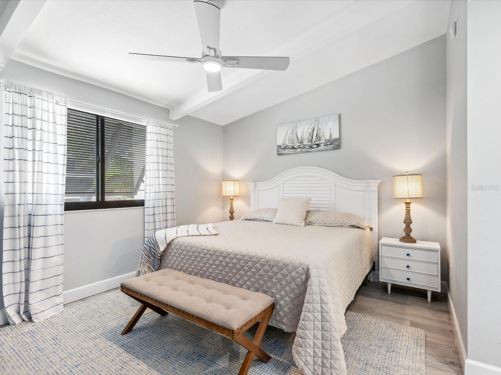 Investment opportunity with strong rental potential—this Siesta Key waterfront villa offers two-week minimum rentals, private deeded beach access, and an oversized private 2-car garage, an exceptionally rare combination. Located in Excelsior Beach to Bay, this updated 2-bedroom, 2-bath residence is set directly on the Intracoastal Waterway and elevated above its garage, capturing panoramic bay views from nearly every room. The fully furnished, light-filled home features an open floor plan, floor-to-ceiling hurricane-impact glass doors, tile flooring throughout, a remodeled kitchen with white cabinetry and stainless appliances, and a dry bar for easy entertaining. The primary suite enjoys sweeping water views. Recent updates include a new HVAC system and water heater (2024). Store your kayak right under the building for easy access to launching your boat. This community offers convenient access to the south bridge, placing Sarasota's dining, shopping, cultural venues, and medical services just minutes away. This Villa offers the best of coastal living. This pet-friendly, resort-style community offers pools, tennis and pickleball courts, a fitness center, fishing pier, and private deeded access to Siesta Key Beach. Ideally located near the South Bridge with quick access to Sarasota dining, shopping, and culture—making it equally well suited as a luxury vacation rental, seasonal income property, or personal waterfront retreat.
