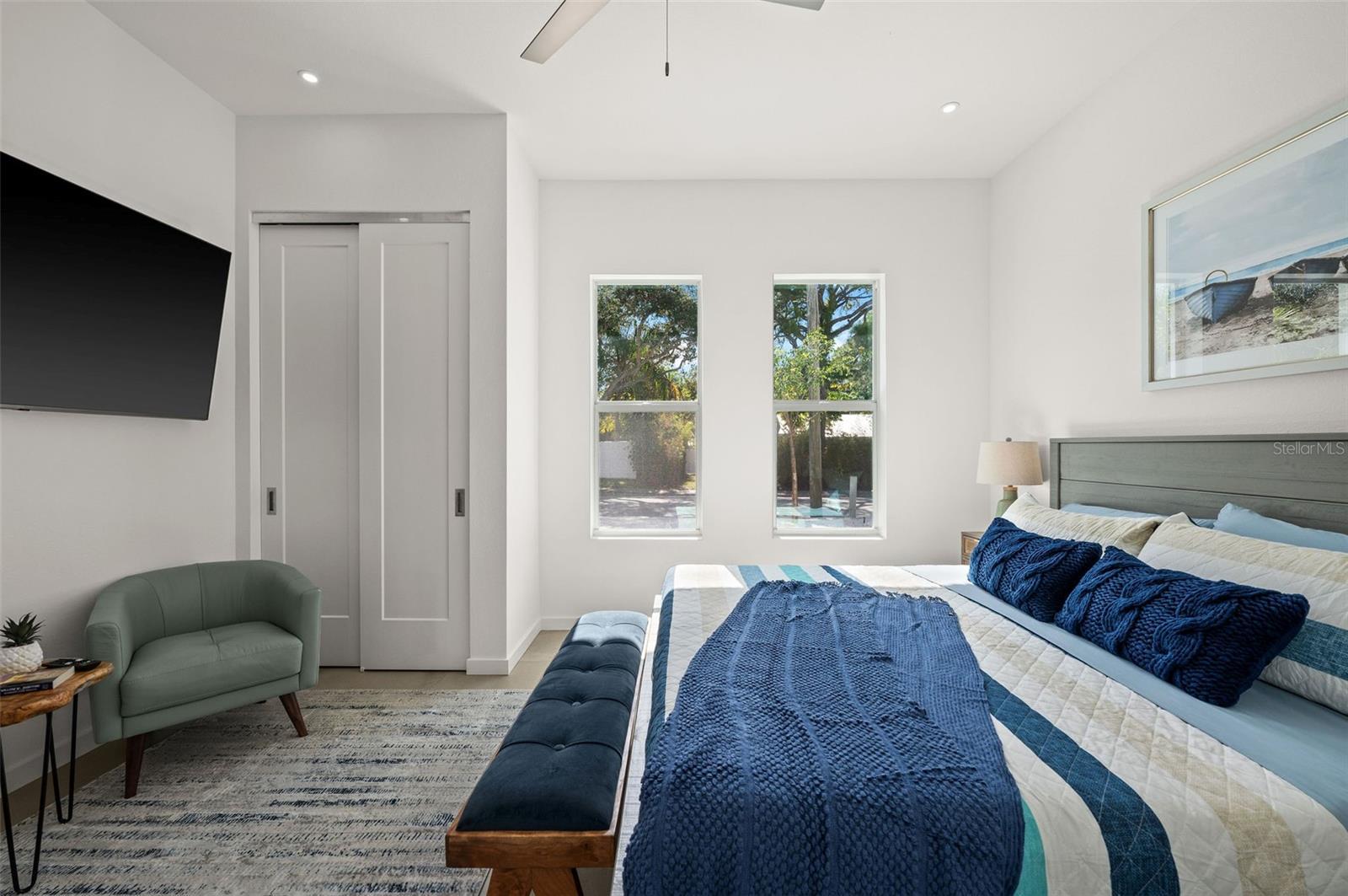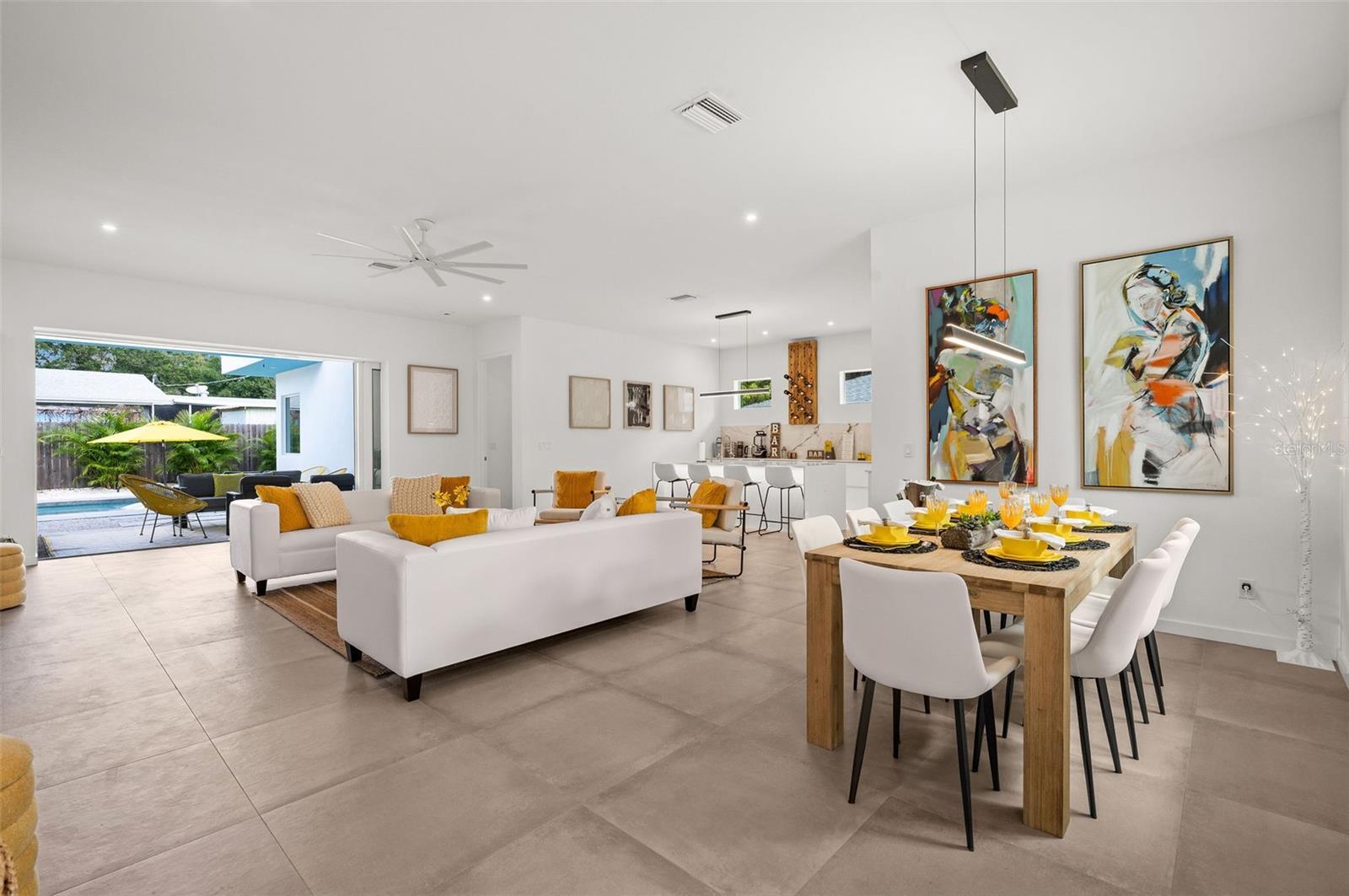 Please contact the Listing Agent to obtain details about the WEEKLY and MONTHLY rates. Available Dates in 2026: January 20-31, 2026; March 30 to April 22, 2026; OR Long-term starting from May 1, 2026. Should you wish to rent TWO LUXURY RESIDENCES for a larger gathering of guests (up to 18), consider our alternative property named "Sky Blue Sarasota" (2365 Waldemere St, Sarasota), located next to "SunShine Sarasota" (2375 Waldemere St). Experience unparalleled luxury in this breathtaking new construction Mid Century Modern Residence! Welcome to this newly constructed masterpiece in the highly sought-after Arlington Park neighborhood. This stunning 4-bedroom, 3-bathroom home encompasses over 2,300 sq. ft. of flawless living space, crafted for both practicality and memorable family gatherings. Immerse yourself in the pinnacle of upscale living in this newly built masterpiece, ideally positioned near Siesta Key and the lively core of Downtown Sarasota. This remarkable home presents a perfect fusion of sophistication and comfort, tailored for those who appreciate a luxurious yet cozy lifestyle. Enter your personal haven where a private, heated swimming pool creates a resort-style atmosphere that encourages relaxation and leisure. The beautifully crafted outdoor area offers picturesque settings for enjoying the warm Florida breezes. The interior of the home exemplifies refined living with an open-plan layout that facilitates a seamless transition between the living, dining, and kitchen spaces. The residence is embellished with opulent features, including tiles, fixtures, and contemporary cabinets, adding a hint of European elegance to the environment. Conveniently situated near the shops and dining options of Southside Village and just minutes away from the vibrant downtown area, Marina Jack, St. Armands Circle, and the famous Siesta and Lido beaches, this home provides both luxury and accessibility. The property boasts a stunning FULLY FENCED private backyard with a heated pool, surrounded by lush palm trees. ***Location location location*** Only 6 miles to the SIESTA KEY BEACH and 5 miles to LIDO KEY BEACH. Both beaches have large public parking lots and a concessions stand with good hot food and frozen drinks. Siesta Beach's sand is 99% quartz l which makes it white and powder soft. Siesta Key also has two lively areas for dining. The Siesta Key village has restaurants and a couple stores. Another area by the South bridge has several restaurants. Grab your FISHING pole and head to the water, just 1.3 miles to the Siesta Dr - north bridge for fishing. DOWNTOWN is 2 1/2 miles away with restaurants, arts, shopping, Whole Foods and farmers market. Downtown has too many restaurants to name such as: Marina Jack’s, O’Leary Tiki Bar and grill, Owen’s Fish Camp, Mediterraneo. You can also take sightseeing boat cruises. LIDO KEY is just a couple miles from downtown. It is an exciting spot with lots to do including kayaking/stand up paddle boarding in the mangroves, hang out at Lido Beach or stroll around the restaurants and stores of St Armands Circle. AIRPORTs: Sarasota-Bradenton International Airport-SRQ (7 miles), Punta Gorda Airport- PDG: (50mi) Clearwater Airport (PIE): (57 mi) Tampa Airport (TPA): (60m)