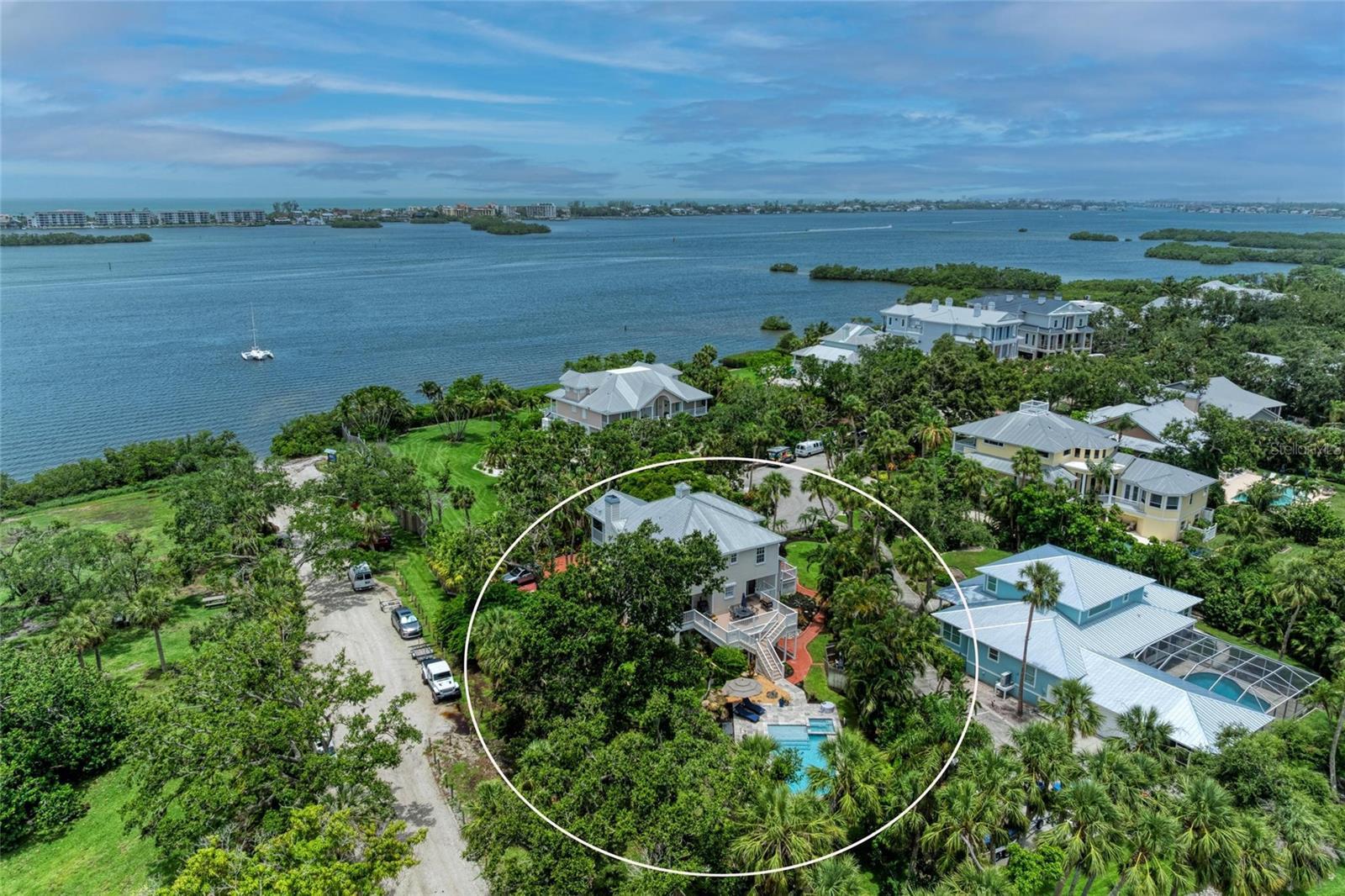 Live the Dream in Fishermen’s Bay – Private Bayfront Paradise with Deeded Boat Slip & Designer Touches. Welcome to a rare opportunity in the exclusive gated enclave of Fishermen’s Bay, a serene waterfront community of just 20 custom luxury homes, perfectly situated West of the Trail on the shimmering shores of Little Sarasota Bay. Tucked away at the end of a quiet cul-de-sac and nestled on a lush half-acre tropical estate, this Key West-style masterpiece offers over 3,200 square feet of elegant indoor living and expansive outdoor spaces designed for the ultimate Florida lifestyle. Enjoy Sarasota Bay views, water access, and a deeded boat slip, and private gate leading to Vamo Park for easy kayak launching just steps away. Crafted by renowned Yoder Construction, the home is a stunning blend of craftsmanship, comfort, and coastal sophistication. Step inside to discover wood floors, crown moldings, and stone countertops throughout. The chef’s kitchen is a dream, featuring a Viking range, Sub-Zero refrigerator, Fisher & Paykel dishwasher, quartz countertops ideal for entertaining. The main living and dining area opens through sets of French doors to a screened-in deck where you can relax and soak in the tranquil views of the bay and your private heated pool with sun shelf and 5-person spa (installed in 2020). Whether you’re enjoying your morning coffee or hosting sunset dinners, the setting is simply magical. The 3rd-floor master suite is a private sanctuary complete with a fireplace, dual walk-in closets, updated spa bath, and a private balcony offering serene water views. On the ground floor, a large bonus area opens to lush, Selby Garden-style landscaping with rambling paver walkways, and plenty of storage for kayaks and beach toys. Enjoy peace of mind with electric hurricane shutters, a 3-zone A/C system, engineered walls, and a sprinkler system fed by your own well. Additional Highlights: • Deeded boat slip with quick access to the Intracoastal • kayak launch • 2 fireplaces • Screened and covered porches for year-round enjoyment • 2-car garage with ample storage • Minutes to Siesta Key Beach, Pine View School, shopping, and dining This is more than a home—it’s a lifestyle. Discover the timeless charm of Old Florida with every modern luxury you could desire. Paradise is calling in Fishermen’s Bay!
