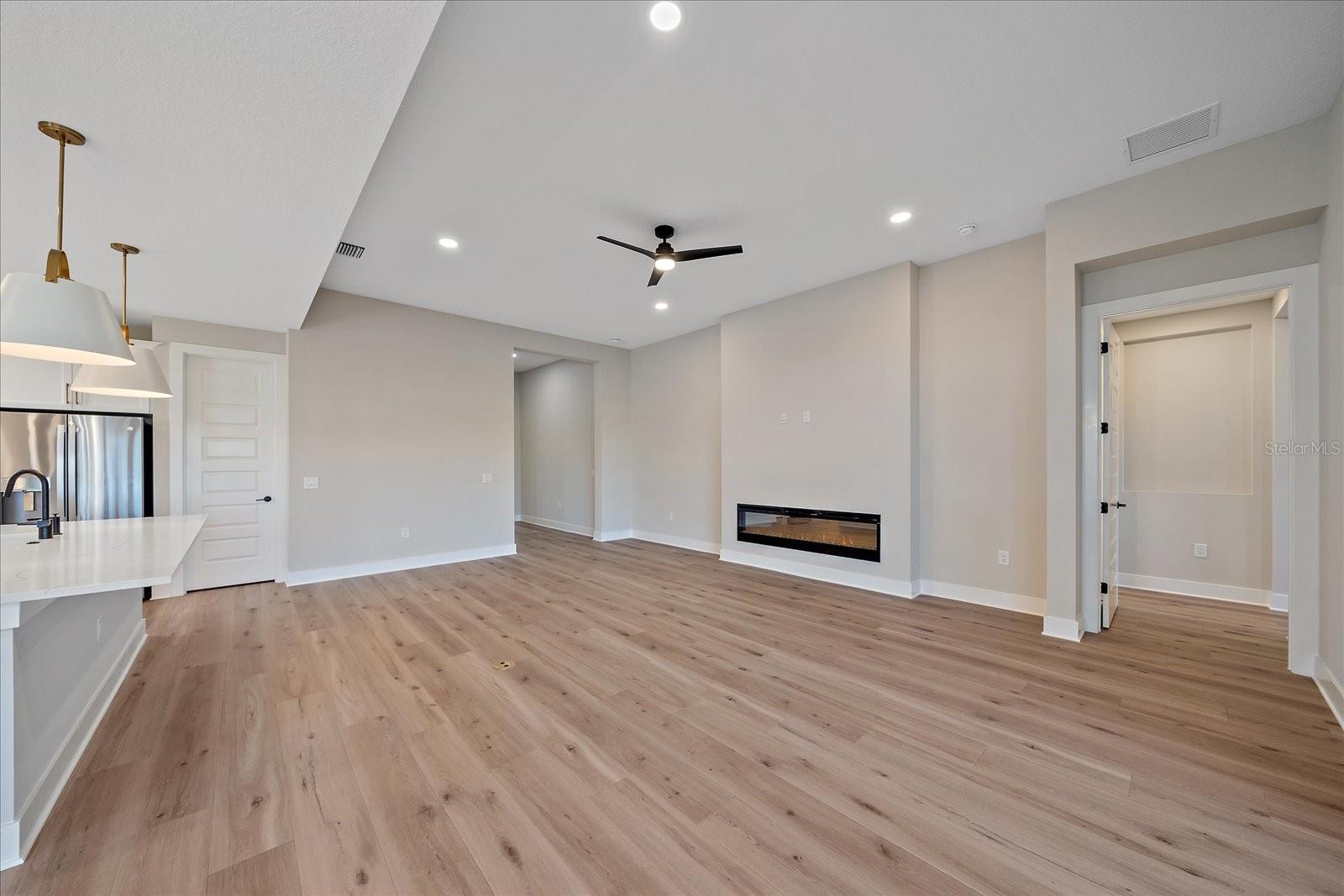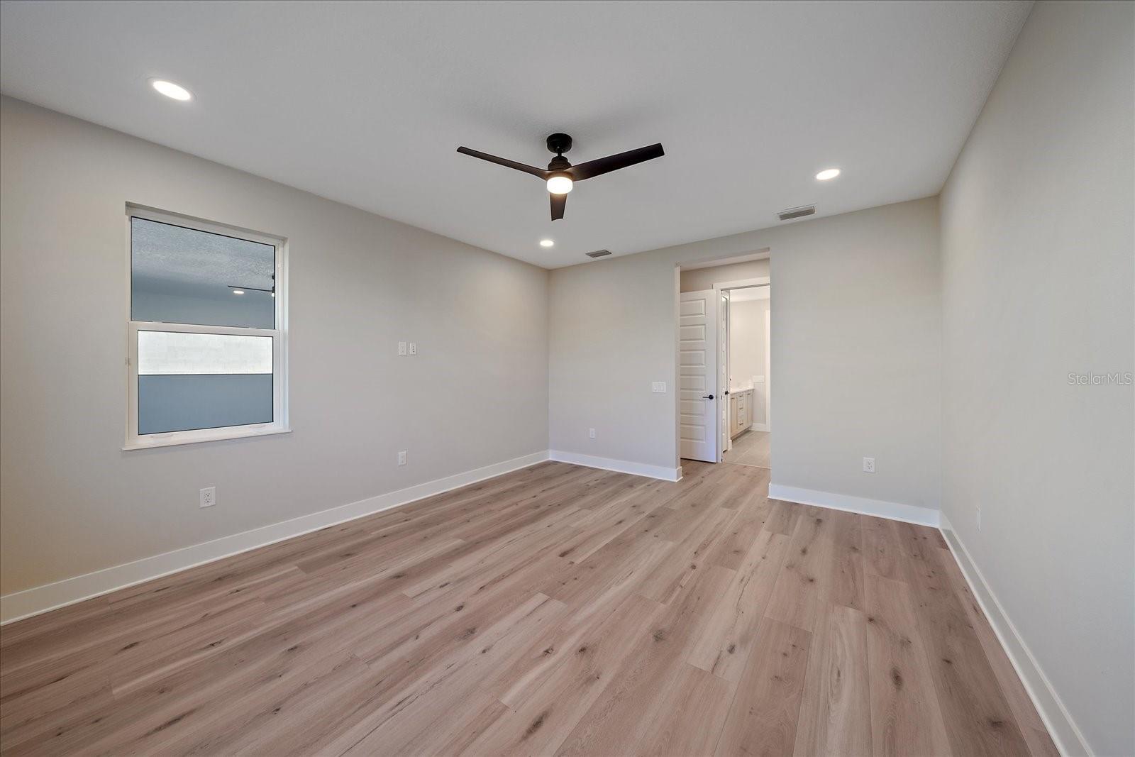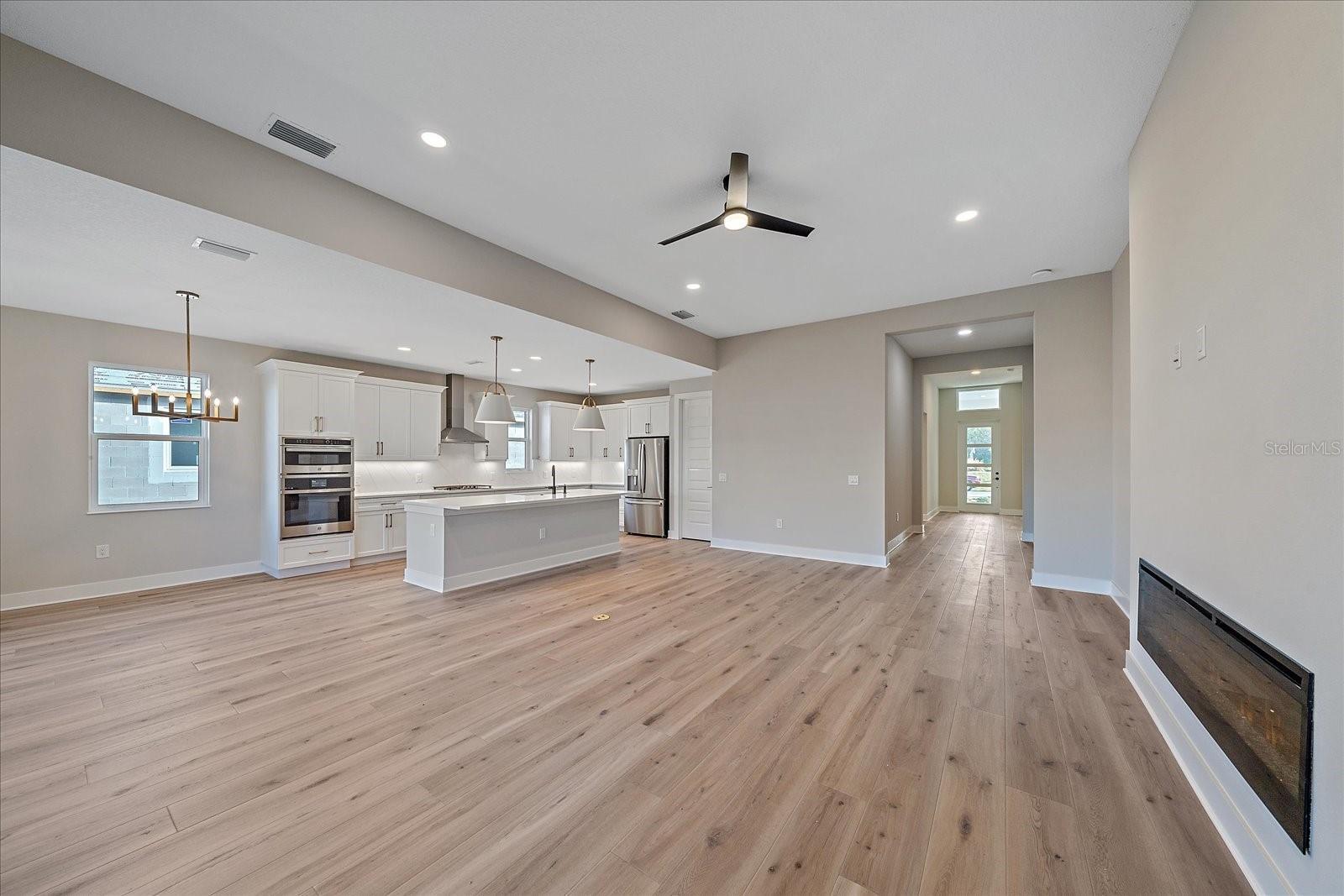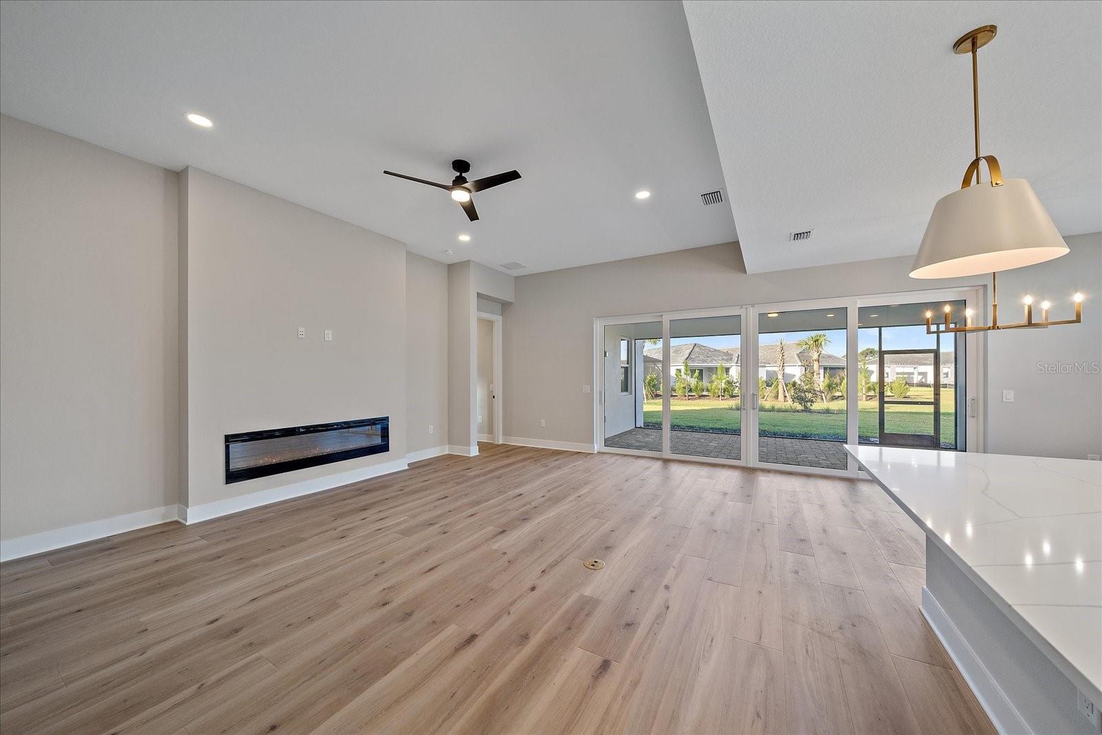 - Ceiling Fans(s), Eat-in Kitchen, High Ceilings, Kitchen/Family Room Combo, Open Floorplan, Primary Bedroom Main Floor, Solid Surface Counters, Stone Counters, Walk-In Closet(s)