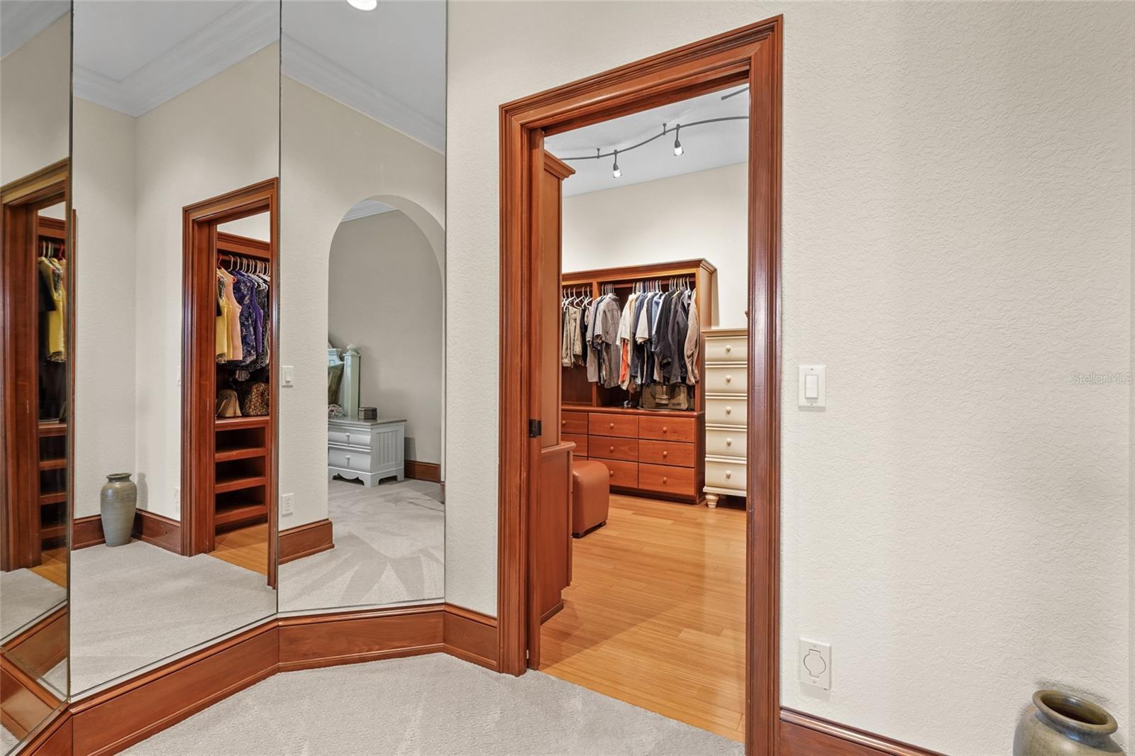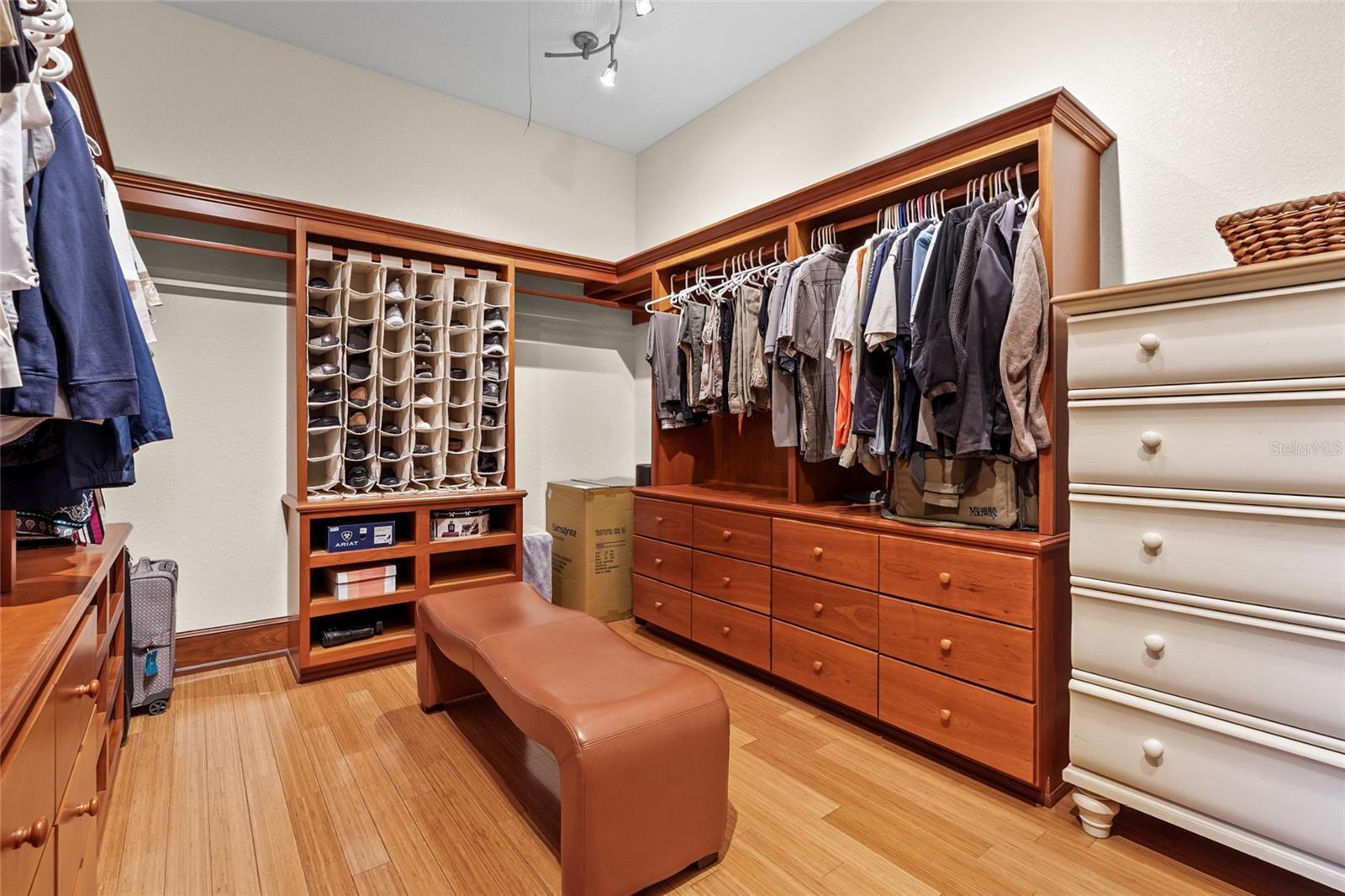 - Built-in Features, Ceiling Fans(s), Crown Molding, High Ceilings, Living Room/Dining Room Combo, Open Floorplan, Primary Bedroom Main Floor, Sauna, Solid Surface Counters, Stone Counters, Thermostat, Tray Ceiling(s), Vaulted Ceiling(s), Walk-In Closet(s)