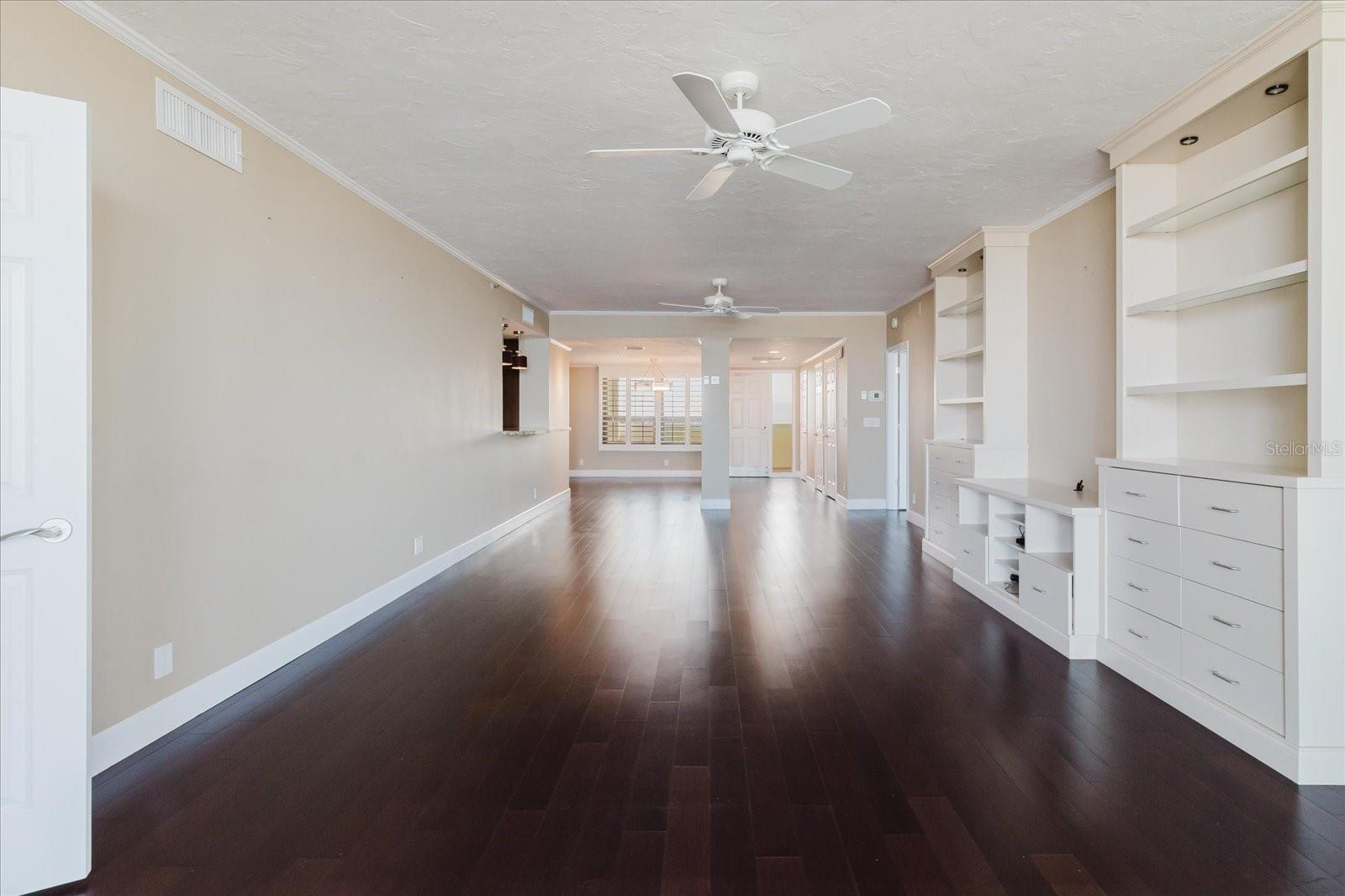 - Built-in Features, Ceiling Fans(s), Living Room/Dining Room Combo, Open Floorplan, Solid Surface Counters, Solid Wood Cabinets, Split Bedroom, Stone Counters, Window Treatments