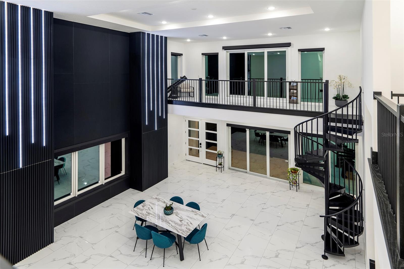 Meticulously designed contemporary residence nestled in the gated enclave of The Moorings of Clermont. Situated on a unique oversized lot on a quiet cul-de-sac boasting the most impressive lake views and sunsets. This private enclave only has 15 developable estately lots located off South Lakeshore Drive adjacent to the impressive Lake Minnehana. This burgeoning city is located just 18 miles to Disney World or about an hour to Tampa. This home presents a rare opportunity for those interested in superior contemporary living boasting 22-foot high ceilings, 5 ensuite bedrooms, 5.5 bathrooms, a massive 657 square feet two-car garage, 3,859 square feet of interior living space and over 6,039 square feet of total space! Home features a breathtaking slice of paradise nestled among other prestigious homes full of Spanish Moss tress and walking distance to The Moorings clubhouse on the Lake. Home has room to add a pool in the backyard! Property offers its occupants seamless indoor and outdoor living spaces with breathtaking lake views from nearly every room. This entertainer's and boater's dream home comes with a recently installed private boat lift. Detailed and thoughtfully designed home with many recent custom upgrades by the sellers! Interior features include extensive modern finishes, eat-in kitchen, and airy coastal vibes throughout. Exterior features complete hurricane impact windows and doors including the garage door, multiple balconies, spacious front porch, large covered patio in the facing the backyard, elongated decorative driveway that can fit many vehicles. Gorgeous nostalgic spiral staircase leads up to a fine indoor and outdoor seating area with breathtaking panaramic lake views. Interior features quartz counters, designer custom cabinetry, walk-in closets, ZLINE stainless-steel appliances and six-burner gas stovetop complete with extending pot filler, laundry room with washer and dryer. Full alarm system with six (6) cameras, Nest thermostats, custom double pantry, custom entertainment walls and accents walls throughout with LED lighting, tankless hot water system, electrical power shades, Porcelain floors throughout interior and exterior living areas and bathrooms, luxury vinyl in primary master suite, and carpet in additional bedrooms. Seller recently installed a 4,000lb boat lift that is included in sale. ***Seller is also selling separately a 2024 Yamaha AR195 (19.5ft) supercharged jet boat with 7k in stereo system upgrades, navigation and fish finder. Boat has very few hours used on it.*** Minutes to downtown, entertainment, shops, restaurants and more! Sale includes a limited home warranty until 08/29/28.