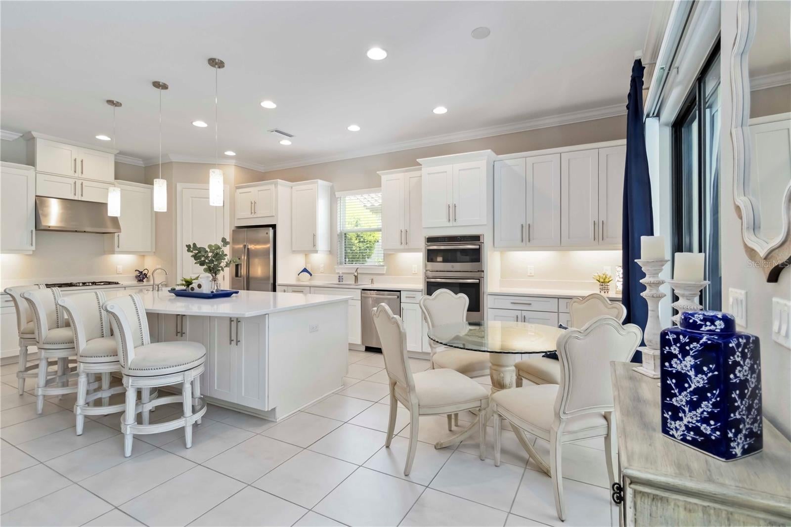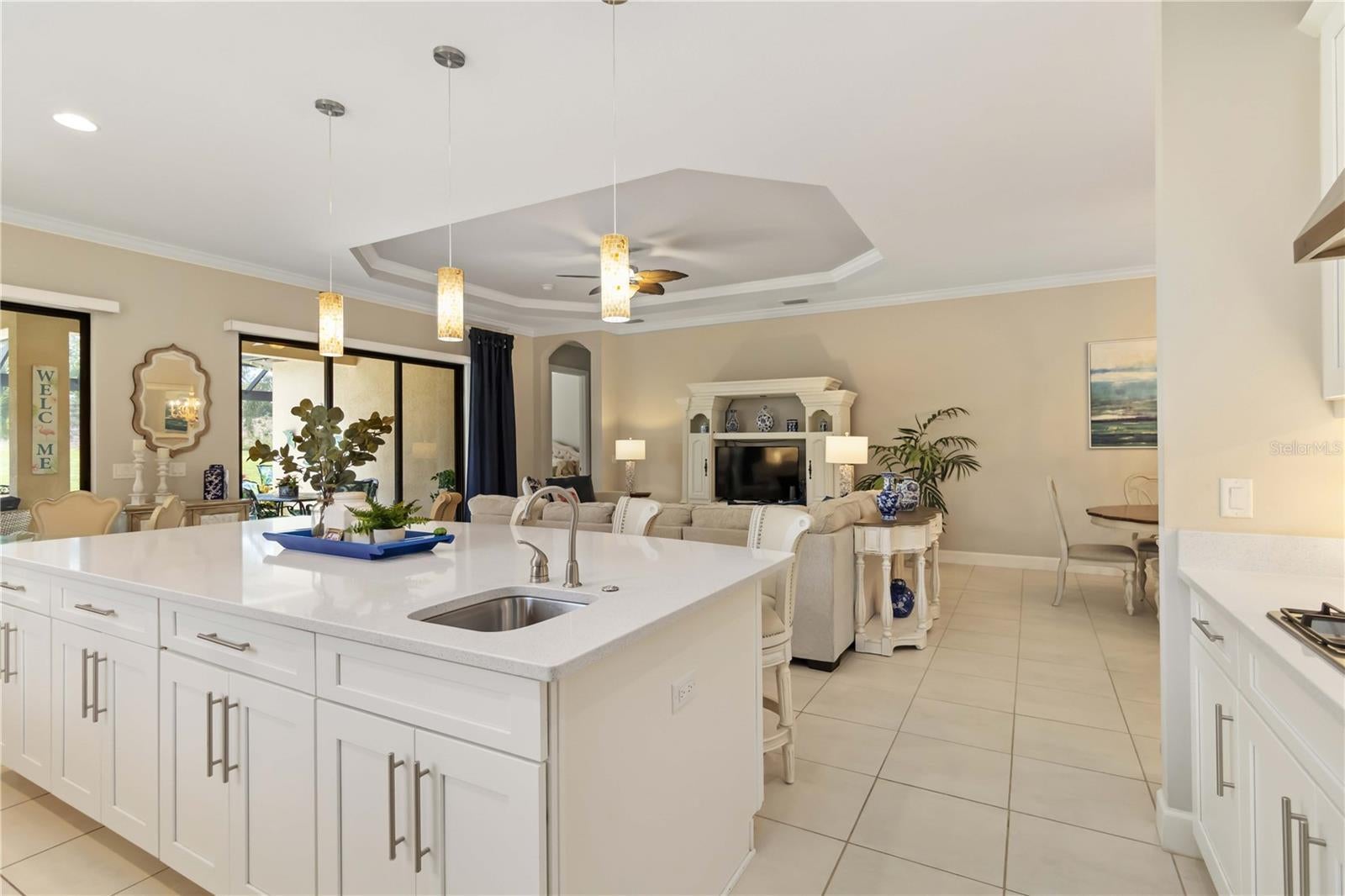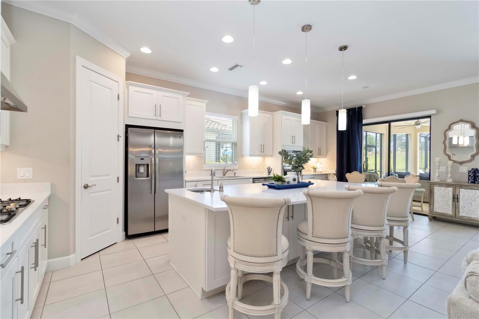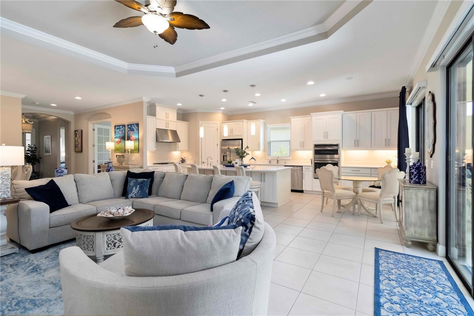 GOLF – SALT POOL – SUNSET Extended Lazio Home in Esplanade with New Laminate Floors in All Bedrooms/New Pool Pump and Controller/New UV light in HVAC Welcome to 4540 Terrazza Court, a beautifully maintained extended Lazio golf-deeded home in Esplanade at Lakewood Ranch, perfectly positioned on a spectacular lot with serene water views on one side and a lush panorama of towering palms and vibrant greenery from the lanai. Inside, this 3-bedroom, 3-bath residence with a flex study features several desirable builder upgrades, including an extended gourmet kitchen with prep sink, extended bay windows in both the primary and guest bedrooms, crown molding throughout, and a thoughtfully expanded layout that offers both comfort and functionality. The neutral palette, open-concept design, and inviting flow provide a clean slate to personalize and make your own. Designed for entertaining, the extended travertine lanai showcases a sparkling saltwater pool and spa with waterfall feature, creating the perfect setting for sunset gatherings or quiet mornings with coffee. The space is already plumbed for an outdoor kitchen, allowing you to customize your ideal outdoor living area. A curated garden backdrop adds a storybook feel to this private retreat. Esplanade at Lakewood Ranch is a gated, resort-style community offering two fitness centers, a full-service spa, bocce ball, pickleball courts, tennis club, fitness classes, walking trails, dog park, culinary center and clubhouse, a resort-style pool with private cabanas, resistance pool, and a full-service tiki bar and restaurant. This is a golf-deeded home. Bring your best offer — the seller is motivated and ready to move.