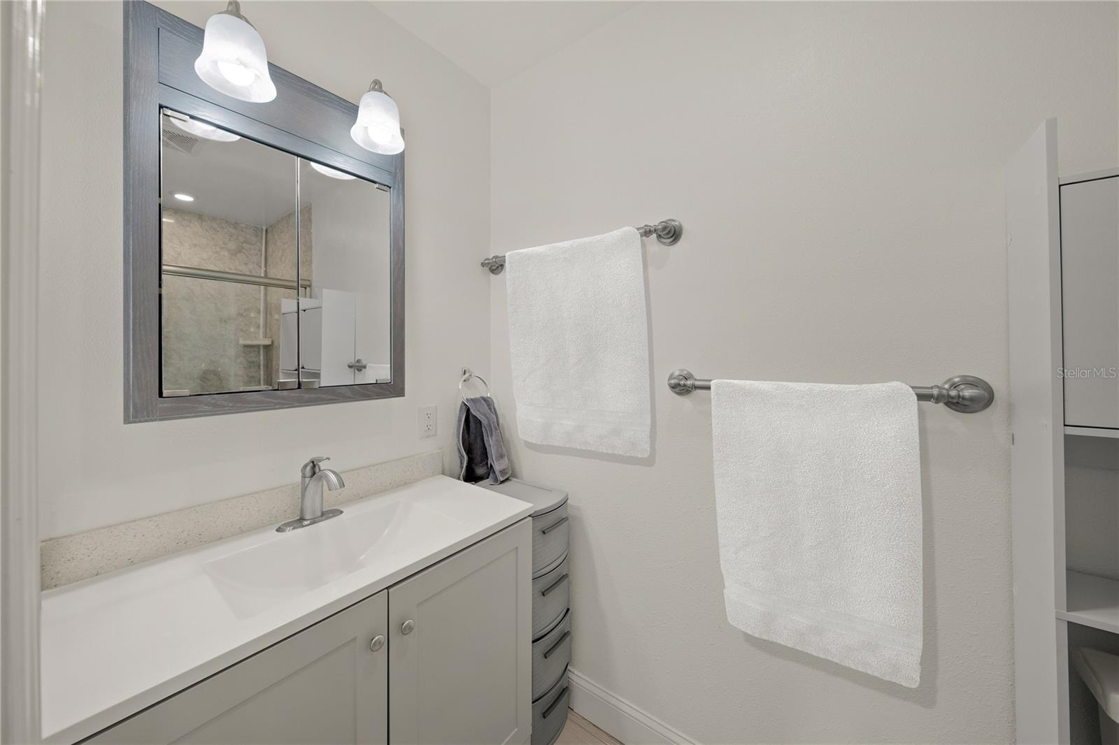 Siesta Key Gem that's Move In Ready! Canal front with NEW composite dock on the Grand Canal. Large swimming pool with cage with comfortable and extensive outdoor living. Three Bedrooms and Four FULL Bathrooms has room for the whole family with multiple entertaining and lounging areas. No expense was spared on renovating this concrete block Florida bungalow. The composite dock new in 2024, roof in 2020, pool and screened pool cage, fencing, and the shed on it's own concrete slab are only a few things that will make this your perfect Florida Dream Home. Tile flooring and hurricane impact windows and doors make this turnkey home perfect for primary residence, vacation/2nd home or investment property. Quartz countertops and bay window sills, new appliances, fixtures & generous closets. Electric panels replaced 2013. This unique Florida home is walking distance to Siesta Village. Siesta Village is know for it's restaurants, nightlife, and shops. Siesta Beach is world renown for it's sugar sand! Exceptional opportunity to live in Paradise!