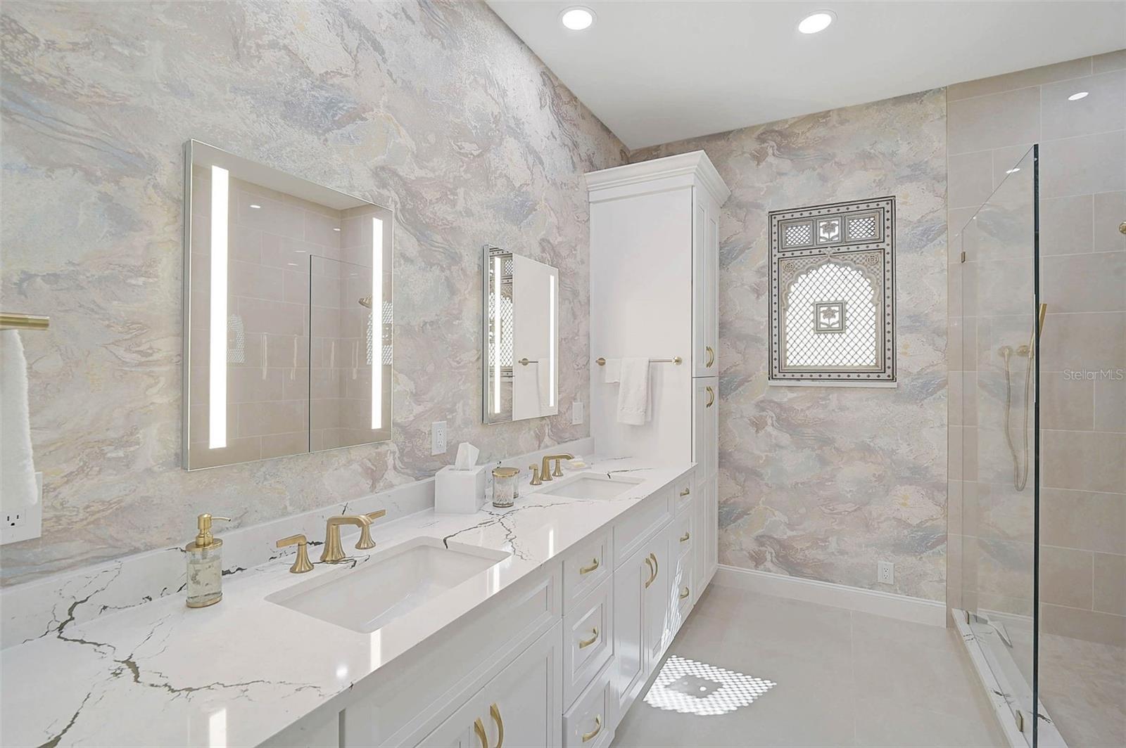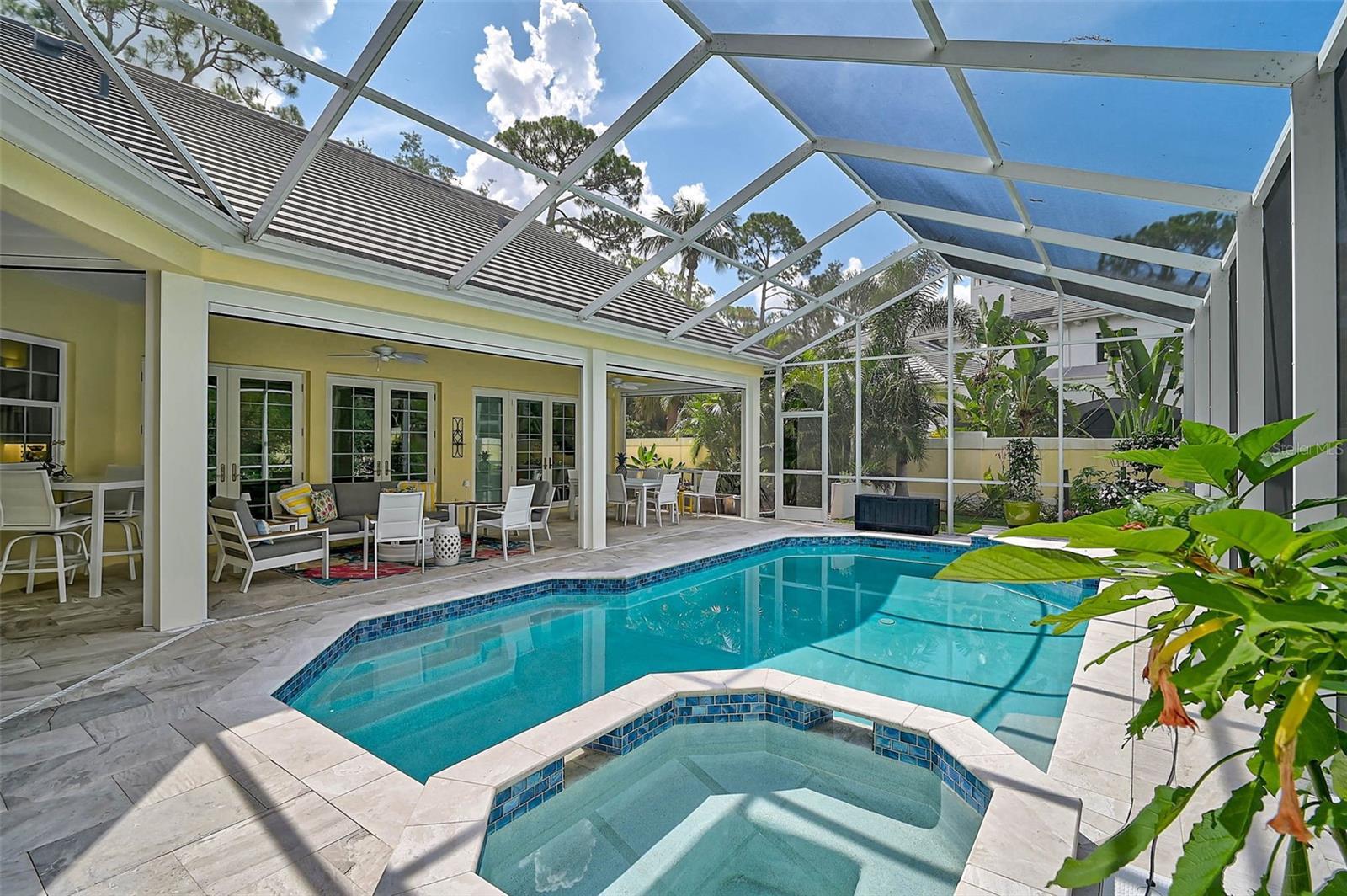 **BRILLIANTY DESIGNED, FULLY RENOVATED, STUNNING and SERENE RESIDENCE with Lush Garden Landscape** is located behind the Secure Gates of The Oaks Bayside, Country Club neighborhood. Featuring 4 BEDROOMS (2 En Suite) and 4 FULL BATHS, this Open Floorplan with Soaring Ceilings, Custom Built-Ins, Crown Moldings and refined details throughout is ideal for entertaining both inside and out! The Impressive Kitchen features Silestone Counters, Premium Appliances including SUBZERO and WOLF, Large Island with sitting area, separate dry bar, etc. The Expansive Primary Bedroom Suite entails a Large Walk-In Closet with custom built-ins and spacious bath with dual vanities, quartz counters, seamless glass shower, etc. Stunning Outdoor Entertaining area features an expansive, screened lanai with Heated Pool and Spa, travertine pool deck, and NEW Remote-Controlled Hurricane Screens (2025) surrounded by a tranquil and impressive garden landscape with desirable privacy wall. A Comprehensive List of Improvements is available upon request and includes NEW ROOF (2021), 2 NEW HVAC UNITS w/UV PURIFICATION (2021), NEW HURRICANE IMPACT WINDOWS and DOORS (2021), 500-GAL PROPANE TANK (2022), FRESHLY PAINTED INTERIOR & EXTERIOR, NEW ELECTRICAL SERVICE PANEL, AIR-CONDITIONED GARAGE with NEW, HURRICANE-RATED GARAGE DOORS, and MUCH MORE! NO FLOODING (Flood Zone “X”). The nearby Private Day Dock on Little Sarasota Bay is a valued amenity for Oaks-Bayside residents. THE OAKS is a distinguished, 24hr Guarded, Country Club Community which boasts many accolades including: Platinum Club of America, Emerald Club of the World, Elite Distinguished Club of the World and One of America’s Healthiest Clubs - where amenities include Three Restaurants, Ballroom, Two 18-hole championship GOLF courses, award-winning RACQUETS program with 12 Har-Tru Hydro-Grid TENNIS courts, 4 PICKLEBALL Courts, wonderful CROQUET facility, state-of-the-art FITNESS center and junior Olympic, heated community SWIMMING POOL, Bocce, Basketball Court, Playground and more! The Oaks is just minutes from nationally ranked Pine View School, the Legacy Bike Trail, area Beaches and all that Gulf Coast living has to offer. Membership is required and there is NO WAITLIST for GOLF or SOCIAL Membership. **Please Enjoy Viewing the 3D VIRTUAL TOUR and AERIAL VIDEO**