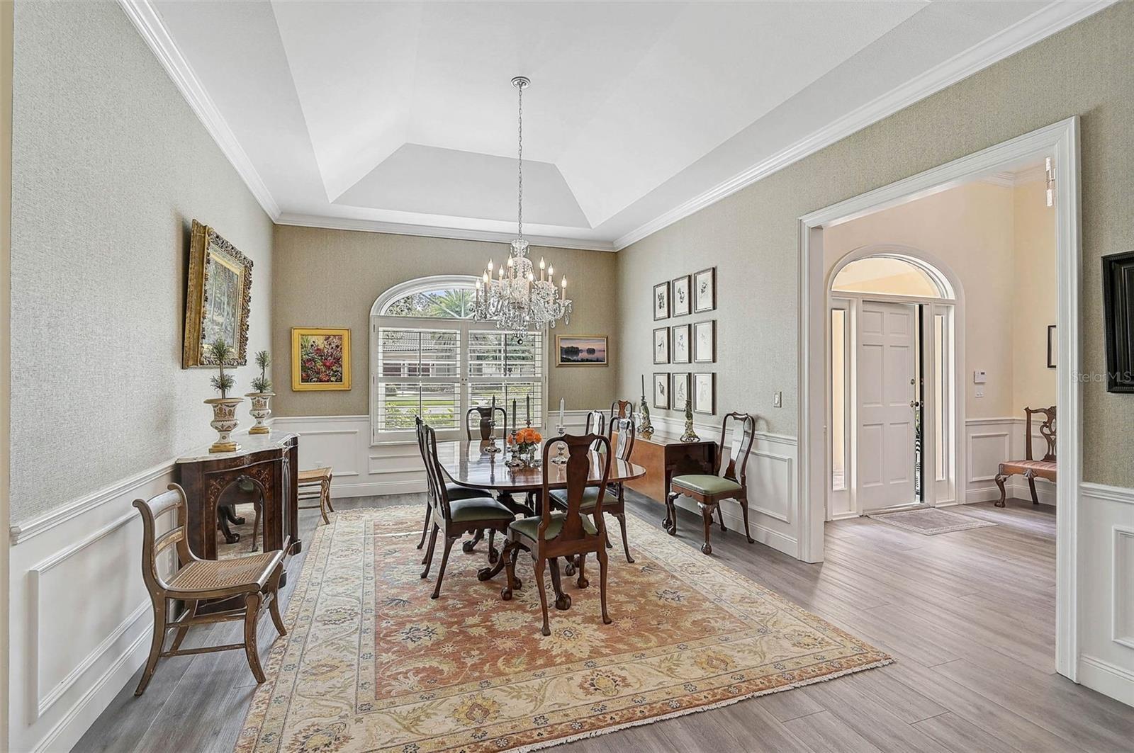 - Built-in Features, Ceiling Fans(s), Crown Molding, Dry Bar, Eat-in Kitchen, High Ceilings, Kitchen/Family Room Combo, Open Floorplan, Primary Bedroom Main Floor, Solid Wood Cabinets, Split Bedroom, Stone Counters, Thermostat, Vaulted Ceiling(s), Walk-In Closet(s), Window Treatments