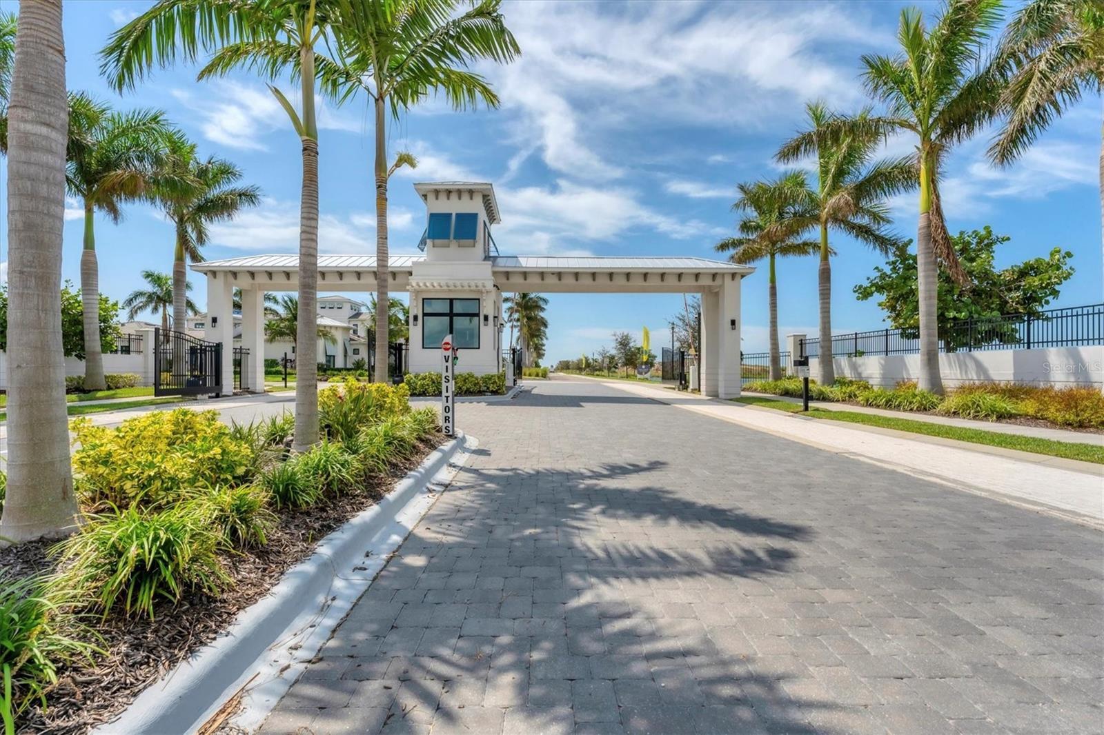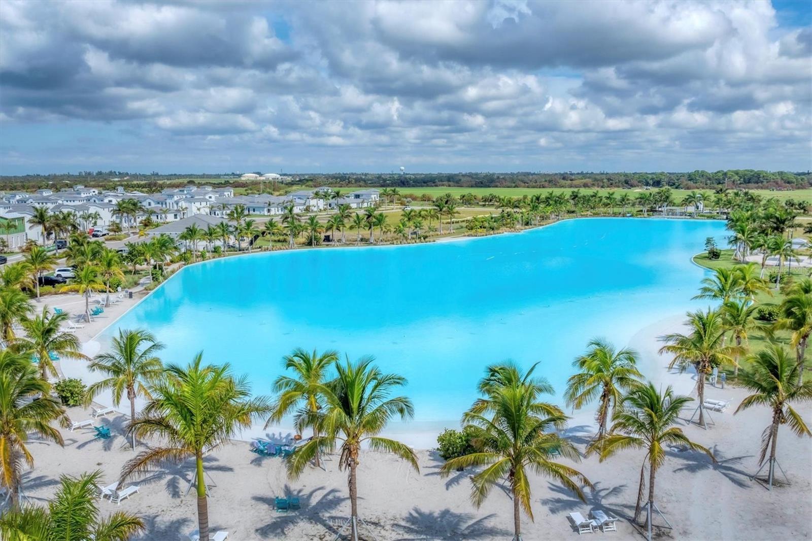 $150,000 PRICE REDUCTION from initial ask, well under comparable active listings! Stunning 2024-built FURNISHED home in premier gated community AQUA LAGOON, located near Sarasota Bay. Set on a premium lot, this two-story residence is steps away from AQUA’s signature four-acre blue lagoon and tropical shoreline—bringing serene views and a beach-like setting right to your doorstep. Featuring high ceilings, brand-new luxury vinyl flooring in some main living areas, and an elegant European-inspired interior throughout, the main level features a bright and airy open-concept layout with a formal dining room, oversized living room, flexible den/office space, and a cozy nook beneath the staircase, perfect as a sitting or lounge area. A masterpiece of design, the gourmet kitchen boasts beautiful wood cabinetry and large ceiling beams, creating a warm and welcoming ambiance. The large center island features a gas cooking and seating for four, while Caesarstone quartz surfaces and stainless steel appliances round out this dream cooking space. Upstairs, the primary suite offers a private balcony overlooking the pool and courtyard, an oversized walk-in closet, and a spa-inspired bath with dual vanities, walk-in shower, and freestanding Jacuzzi tub. Two additional guest suites, each with full bath and one with its own balcony, plus a second living room and a well-appointed laundry room complete the upper level. The tranquil outdoor oasis centers around a private courtyard with a salt-chlorinated pool with waterfall feature, and covered lounge area. Additional features include a two-car garage with epoxy flooring and luggage shelving, paver driveway, four-zone A/C, impact-rated windows and doors, gas pool heater connection, and a Sonos sound system with room-by-room volume control. Ideally located near IMG Academy, IMG Golf Club, Anna Maria Island, Cortez Village, SRQ Airport, and a short drive to shopping and dining destinations including UTC and St. Armands Circle. Enjoy the perfect fusion of luxury living and waterfront tranquility in this exceptional home where every day feels like a resort getaway.
