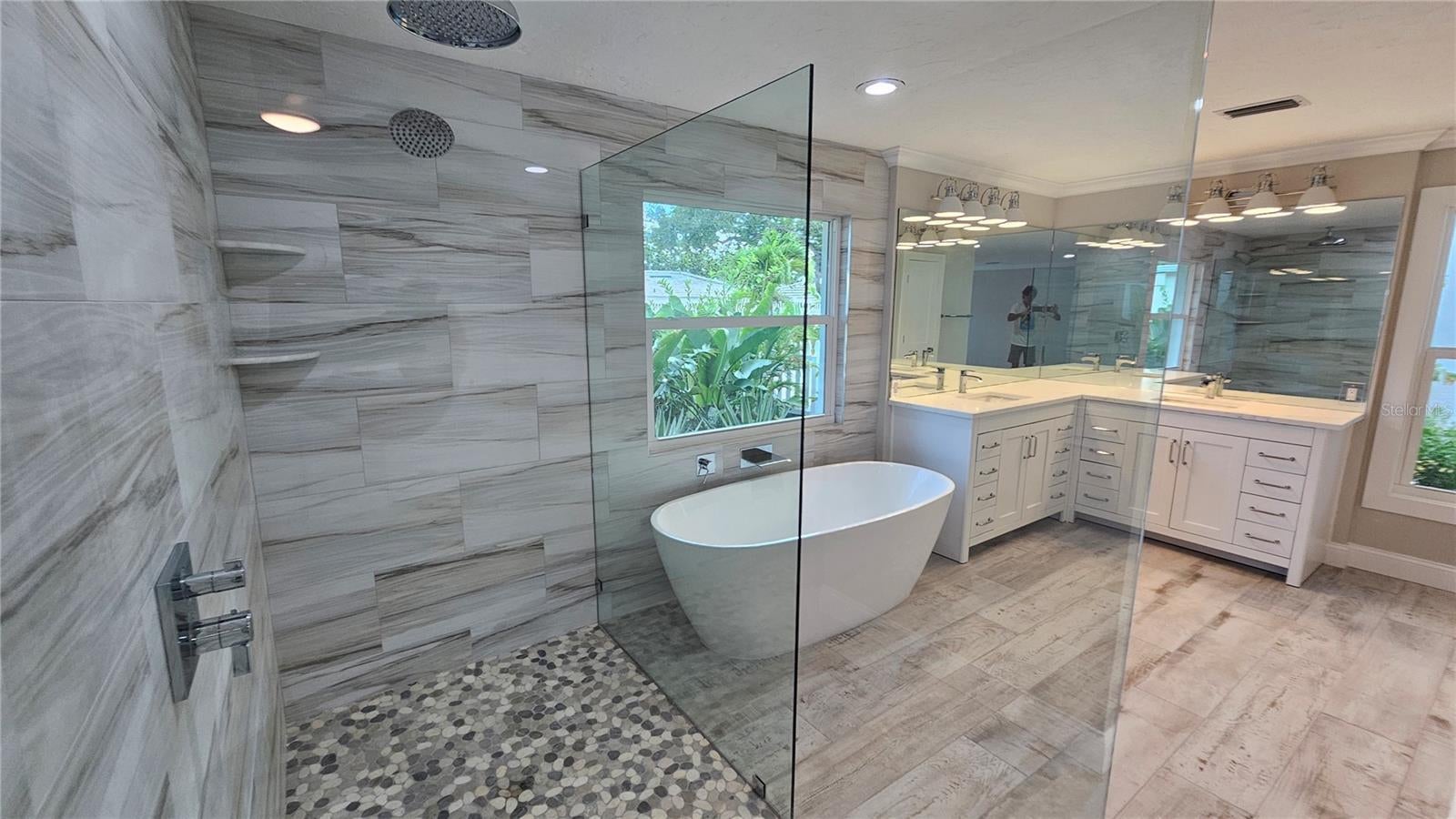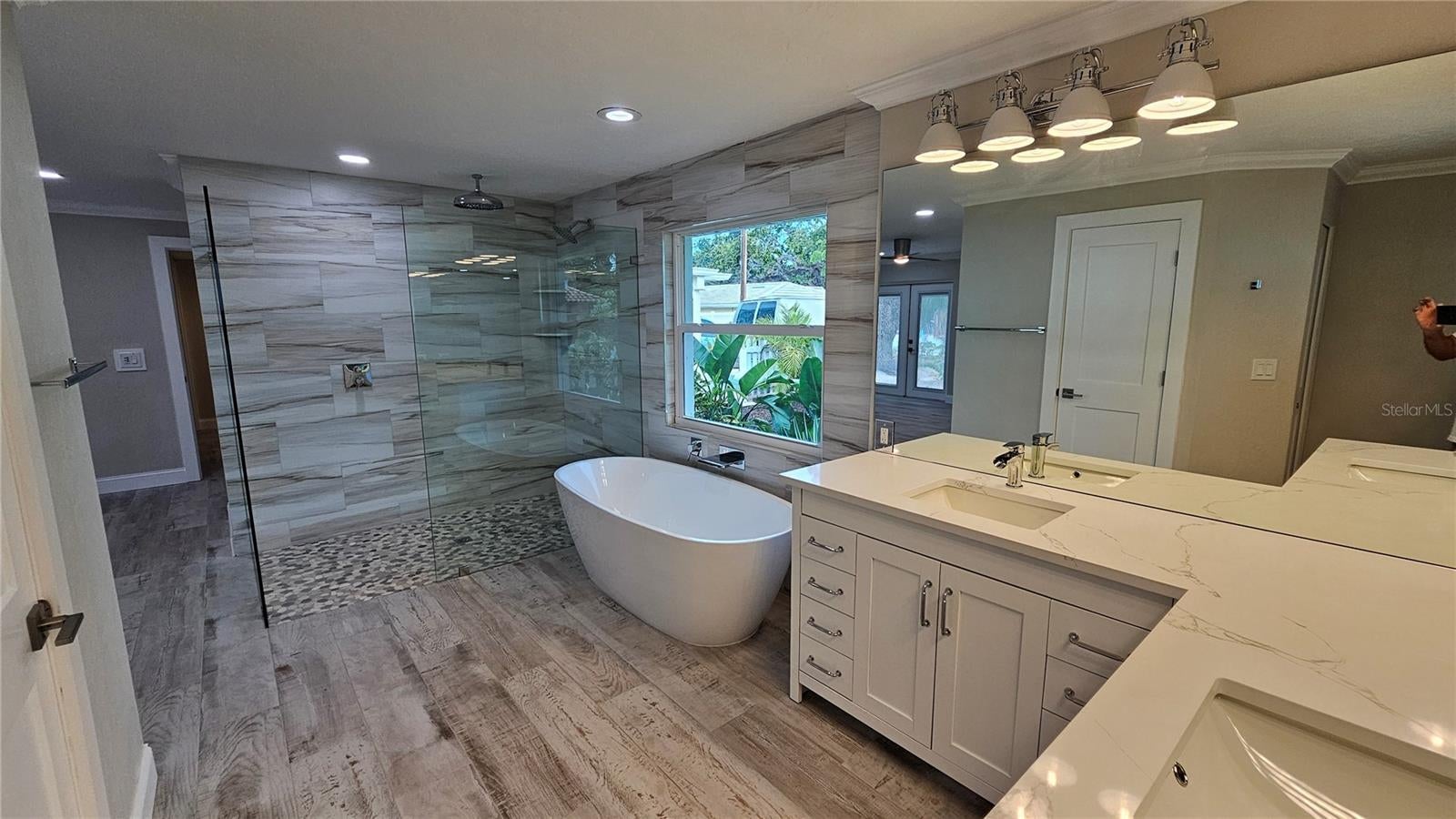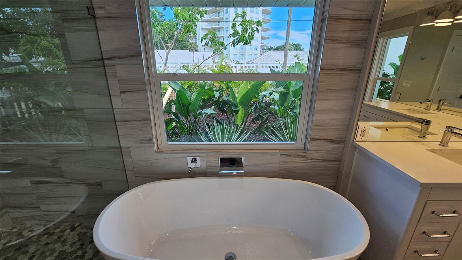 Discover Unrivaled Coastal Elegance Steps from Siesta Key Beach! This rare gem features two meticulously remodeled canal-front homes with stunning partial views of the bay, perfectly situated in a prestigious neighborhood. The main residence boasts a contemporary design with open and spacious layouts, highlighted by soaring 24 ft ceilings adorned with stylish gray wooden accent beams.Culinary enthusiasts will be captivated by the gourmet kitchen, featuring custom-made wood cabinets complemented by exquisite Carrara Quartz countertops. Equipped with top-of-the-line appliances, including a new stainless Thermador refrigerator, Bosch dishwasher, and an impressive center island with a bar area, it truly caters to the most discerning chefs. Zoned RMF2 while located in a single-family neighborhood, this property allows for daily Airbnb rentals, making it an excellent investment opportunity. A private, charming guest cottage serves as an ideal retreat or rental for additional cash flow. Recent upgrades include new Window World Hurricane-rated windows, French doors, and a newly installed seawall (2025), ensuring your investment remains safe and secure. The main house spans 3,005 sq ft, featuring three bedrooms and 2.5 baths adorned with luxurious Panaria marble and 24x48 tile flooring. Bathrooms boast contemporary Miseno vanities and premium Grohe and Hansgrohe fixtures. The decadent master suite invites relaxation with a rain cap shower and a sumptuous soaking tub. Both homes are equipped with new Rheem A/C units, while the property’s outdoor oasis features a large screened lanai overlooking the canal and bay. Dive into the newly resurfaced pool with a stunning stone waterfall or enjoy the expansive outdoor space, surrounded by tropical landscaping. The cozy guest cottage, covering 1,700 sq ft, includes three bedrooms and two full baths, showcasing beach-washed ceramic tile flooring, white wood Shaker cabinets, and modern KitchenAid and Bosch appliances. The new dock provides easy access to pristine boating waters with no bridges obstructing your path to the bay. Siesta Key is a haven for music lovers and foodies alike, while Sarasota delights with its vibrant art scene, ballet performances, the Asolo Performing Arts Center, the Ringling Art Museum, and world-class shopping. Relax with your favorite beverage on the rear patio, shaded by a majestic live oak, or grab your fishing rod, bathing suit, and water toys to fully embrace the Siesta Salt Life. Act fast! This exquisite property offers a luxurious lifestyle and lucrative potential in one of Florida’s most sought-after destinations!
