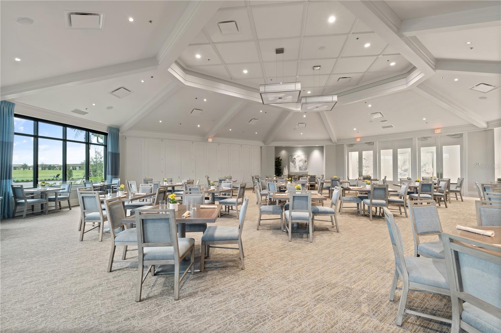 - Ceiling Fans(s), Eat-in Kitchen, High Ceilings, Kitchen/Family Room Combo, L Dining, Living Room/Dining Room Combo, Open Floorplan, Primary Bedroom Main Floor, Solid Wood Cabinets, Split Bedroom, Stone Counters, Thermostat, Walk-In Closet(s), Window Treatments