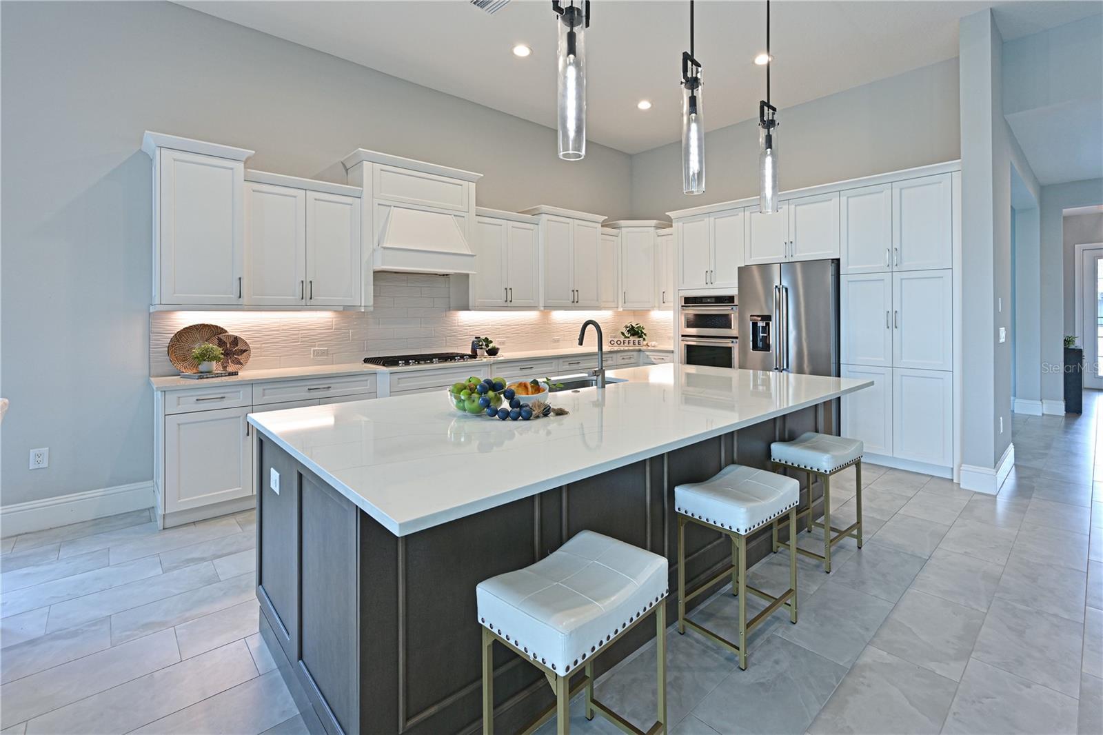 Welcome to this elegant 5-bedroom, 4-bath home with 2 half baths and a den, located in the gated community of The Lake Club in Lakewood Ranch. Built in 2021, this expansive residence blends timeless elegance with modern comfort, showcasing an open-concept layout, soaring ceilings, and upscale finishes throughout. The gourmet kitchen is a chef’s dream, featuring premium stainless steel appliances, quartz countertops, custom cabinetry, and a generous island perfect for entertaining. The spacious great room flows effortlessly to the oversized screened pool cage. Gorgeous stainless outdoor kitchen, tiled lanai, large pool/spa with convenient bathroom. You’ll enjoy a peaceful, private view of lush greenery, there are no houses directly behind you, offering a true backyard escape. The luxurious primary suite offers tray ceilings, dual walk-in closets, and a spa-like bathroom with double vanities and an oversized walk-in shower. Four additional bedrooms provide flexibility for guests, family, or a dedicated office space, while the two half baths add convenience for entertaining. Residents enjoy exclusive access to world-class amenities, including a grand clubhouse, fitness center, resort-style pools, tennis and pickleball courts, and scenic walking trails. Ideally located near UTC, fine dining, golf, and the Gulf beaches, this home delivers the best of Florida’s luxury lifestyle. Schedule your private showing today and experience the best of Florida living!