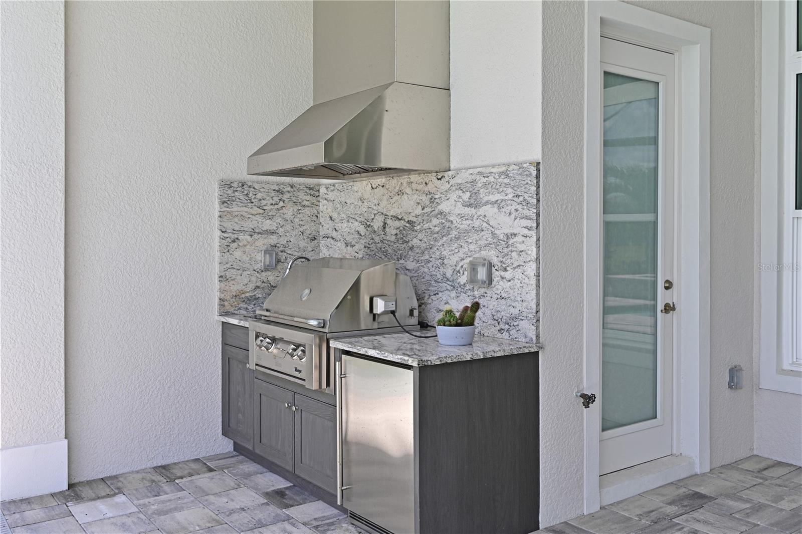 - French Doors, Outdoor Grill, Outdoor Kitchen, Rain Gutters, Sidewalk, Sliding Doors