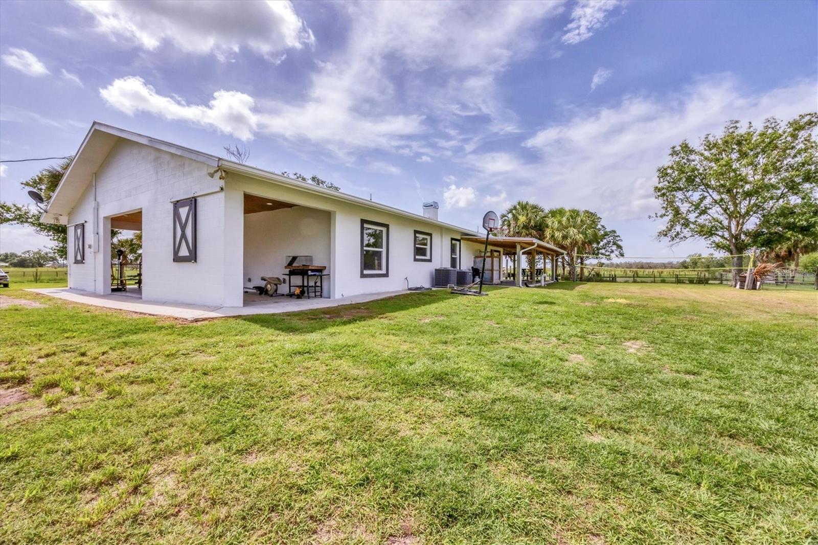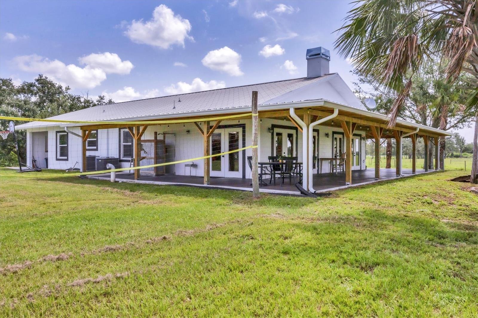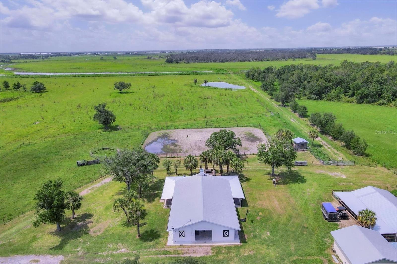Welcome to your private ranch style homestead! Sitting on 37 picturesque acres, this property offers the perfect blend of comfort, space, and functionality for country living. The 4-bedroom, 2.5-bathroom home boasts an inviting layout, perfect for family living or entertaining. Natural light floods the interior, highlighting the warm Saltillo style tile floors, cozy living areas, and an open kitchen ideal for preparing meals with a view of the sprawling landscape. An ensuite and additional bedroom and bathroom were recently added within the last two years. The addition has wood grained waterproof vinyl floors and wood-stained trim throughout. A newly constructed wrap around porch with metal roof was installed in March 2025. Equestrian lovers will appreciate the concrete five-stall horse barn, with tack room. The barn is also multipurpose as a dog kennel that can be used for boarding, breeding or training. There is also a large arena that can be used for horse training, exercising or provide a space for teaching riding lessons. A detached garage adds even more utility, perfect for storing vehicles, equipment, or transforming into a workshop. The land itself is a mix of open pasture and wooded areas, ideal for riding, recreation, or simply enjoying the peace and privacy of rural life. Whether you're seeking a private family retreat, a hobby farm, or a place to bring your animals and live off the land, this rare offering has many potential uses. There are two parcels being sold together. No HOA or deed restrictions. Located approximately 20 minutes to Lakewood Ranch and 30 minutes to Sarasota.