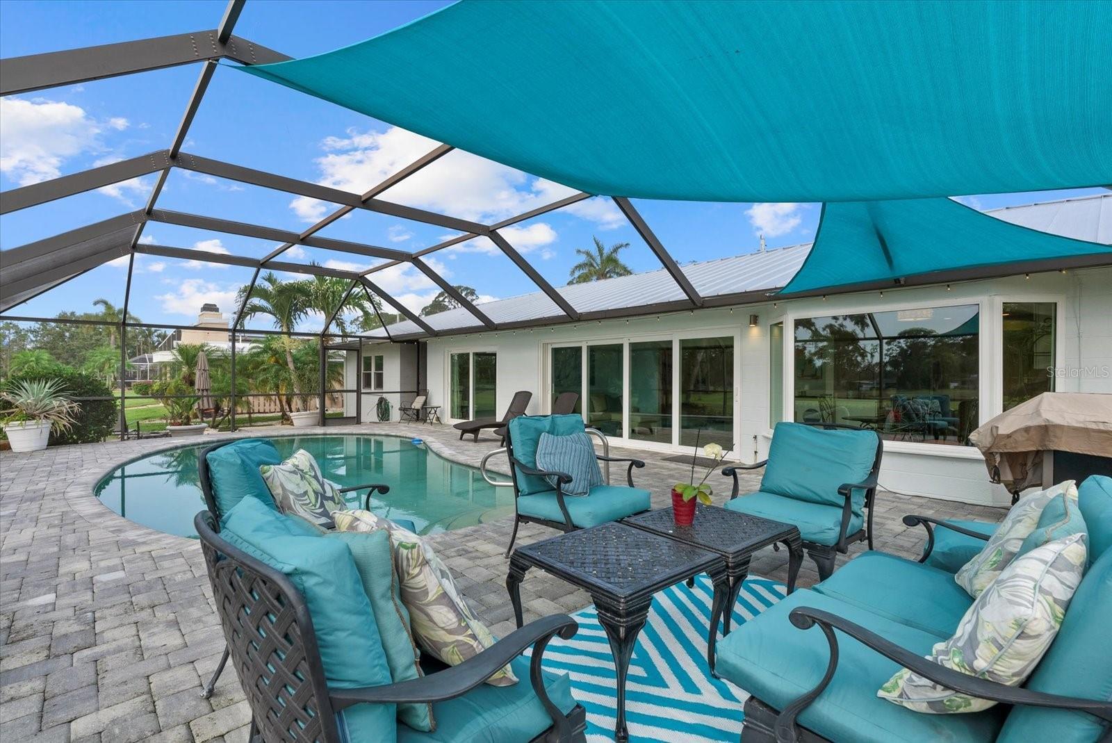 Welcome to "Serenity on 7" – Where Coastal Charm Meets Everyday Relaxation. Discover the perfect blend of casual elegance, coastal living, and lasting quality in this completely remodeled retreat, located on the 7th hole of the historic Sara Bay Golf & Country Club. Situated on one of the most sought-after streets in Whitfield Estates, “Serenity on 7” offers timeless style, unmatched location, and peace of mind. From the moment you arrive, the charm begins. A grand circular driveway welcomes you and your guests with ample parking. The entry courtyard and covered porch invite you into a home that instantly feels right—calm, welcoming, and filled with natural light and tranquil views. Inside, this spacious split-bedroom floor plan is designed for privacy and comfort. The newly renovated kitchen boasts quartz countertops, a cozy breakfast nook, and sweeping views of the pool and golf course. The primary suite offers serene views and a peaceful escape, while the opposite wing includes two well-appointed guest rooms. A major highlight of this home is the semi-attached Casita, complete with a private entrance, full bath, patio, and its own stunning golf course and pool views—perfect for guests, a home office, rental income, gym, or multigenerational living. Built to last, this home features a standing seam metal roof and hurricane-impact windows and doors throughout, offering durability, safety, and peace of mind. This home remained safe and dry through last year’s storms with no damage or flooding. Step outside and take in the view—your private pool oasis seamlessly blends into the lush greens of the golf course. Whether you're enjoying a swim, dining al fresco, or simply relaxing, the setting is unforgettable. Located between Downtown Sarasota and Downtown Bradenton, with Sarasota Bay just minutes away, you’re truly in the heart of it all. Even if you’re not a golfer, you’ll still enjoy a complimentary social membership to the club, offering access to fine dining and community events. Live the lifestyle you’ve always dreamed of—sunshine, golf, bay breezes, and effortless comfort. Homes like this rarely come available. Current owner has made huge capital improvements since purchasing in 2022: New metal roof $42k, New impact windows and doors $65k, New AC/ Duct work $16k, New patio pavers $6k, new sewer lines $26k, New kitchen $15k. Schedule your private showing today and experience "Serenity on 7" for yourself.