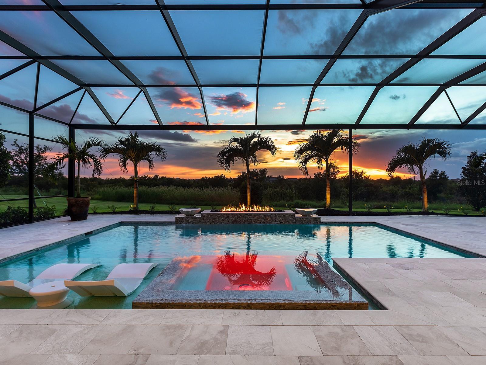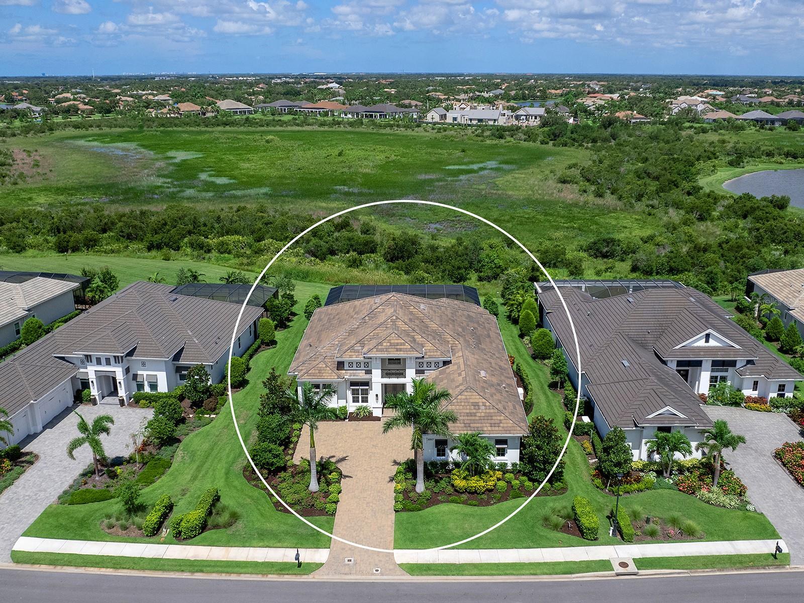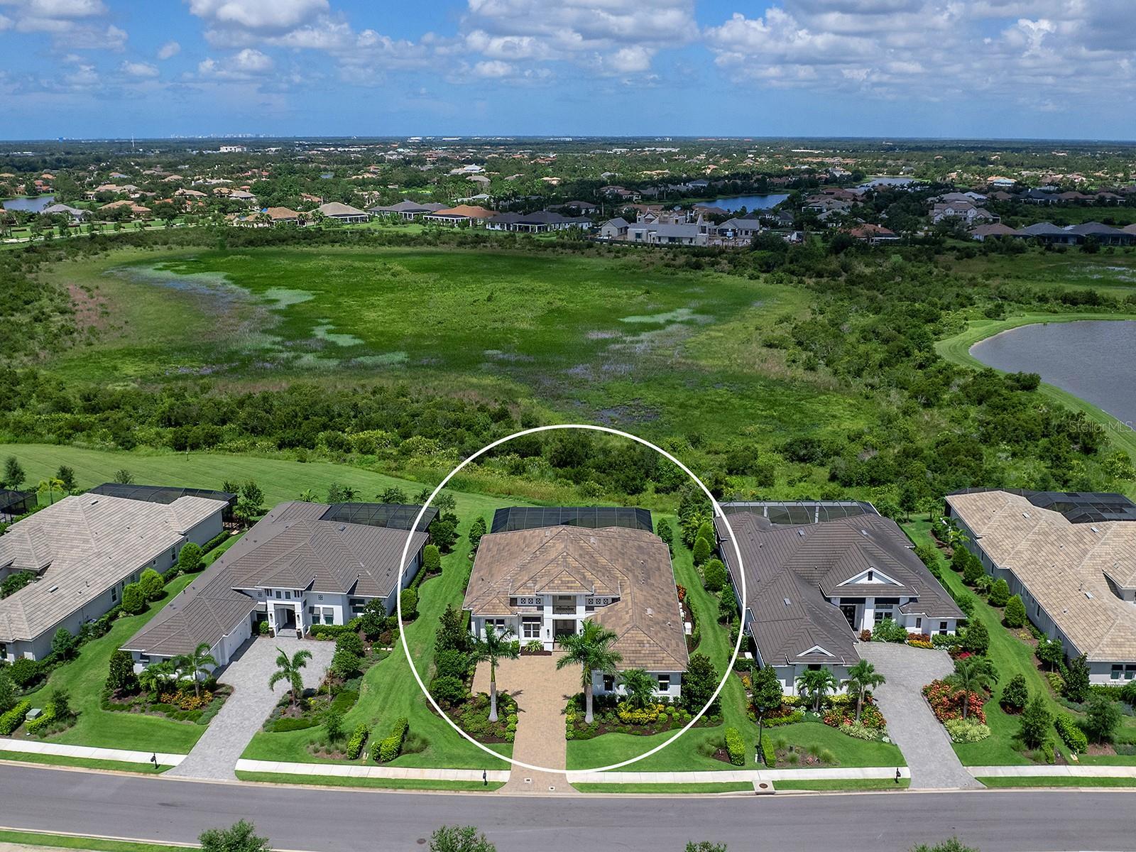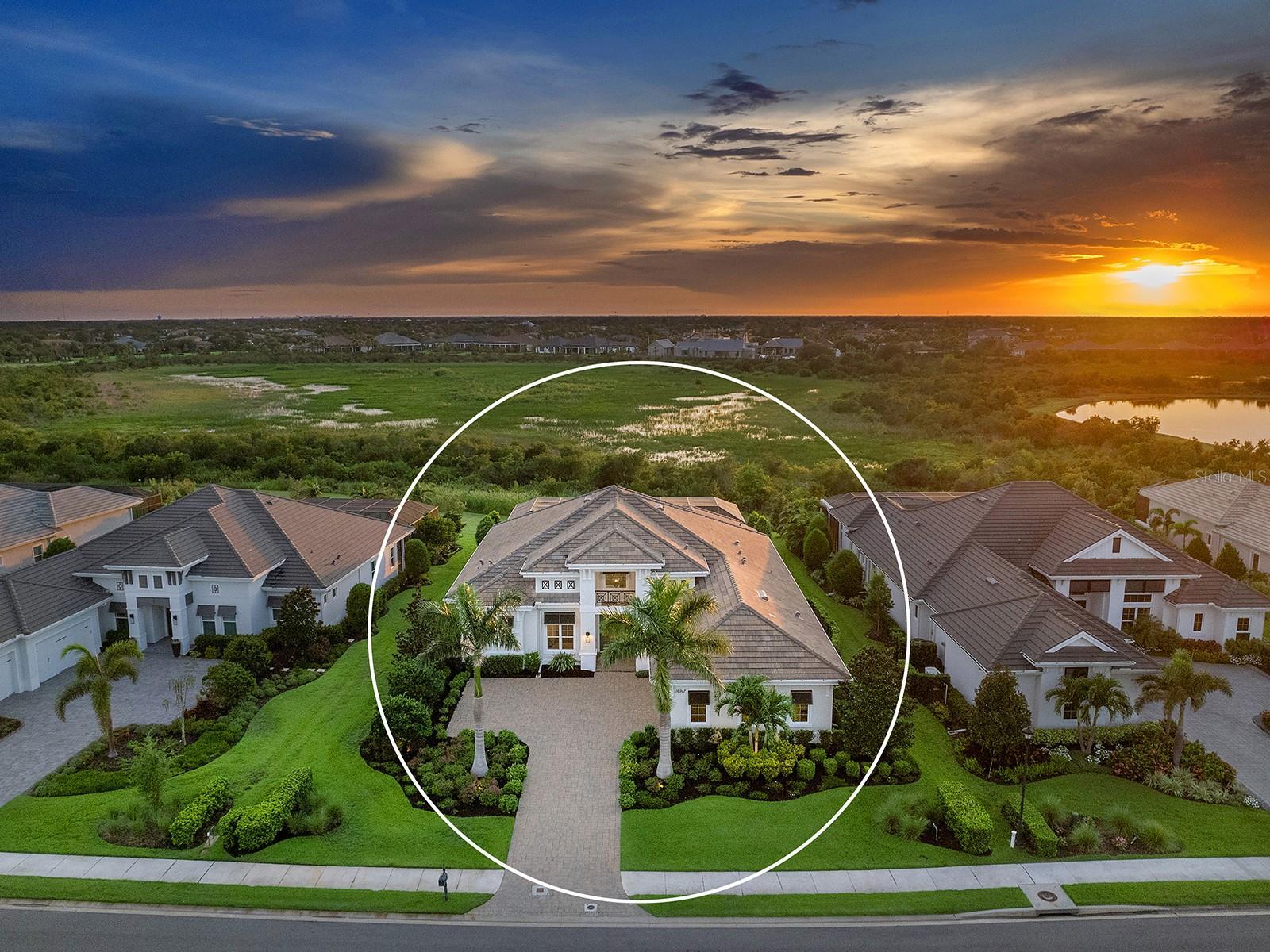 BUYER FINANCING FELL THROUGH - DON'T MISS THIS OPPORTUNITY! Prestigious living in The Lake Club of Lakewood Ranch in within reach! Nestled among towering palms and verdant landscaping is this completely, custom Madison II home built by Stock Luxury Homes in 2021. The lush Florida conservation wetland provides a beautiful backdrop for the western rear exposure with spectacular sunsets. This entire residence had every detail carefully hand-selected to evoke a luxurious and comforting residence including oak hardwood flooring, cove crown molding and custom ceilings, high-end designer light fixtures, plantation shutters, and top-of-the-line functional selections in every room. Superior details and a sense of security continue with high-end construction, impact doors and windows throughout, additional remote control hurricane screens on the lanai, 22kw whole-house generator, surge protector, and whole-house water filtration system. The central great room is the heart of the home with custom coffered ceiling, custom built-in display shelving and entertainment cabinetry, and a full wall of impact sliding glass doors to the lanai. Enjoy a modern open-concept floor plan that flows effortlessly throughout the living areas and out onto the marble paver lanai. With beautiful and private views of the preserve, the lanai offers a serene space to gather around the gas fireplace and under wood ceilings, take in the views from panoramic screen enclosure, or dine by the outdoor kitchen. The custom saltwater pool offers a sunken 360-edge spa, sunshelf, Nebula lights built into the screen enclosure to create a starlight effect above, and a built-in fire bar feature plus water bowls – you won’t find another lanai like this at any other home. The luxurious lifestyle continues indoors with the executive kitchen that is expertly outfitted with high-end appliances including Wolf gas cooktop, Miele dishwasher, Sub-Zero refrigerator, and dual Wolf wall ovens. The custom cabinetry offers complimentary two-tone colors, thick quartz counters with full-height backsplash, pots and pans drawers, additional integrated pantry tower, and a walk-in pantry with shelving. The adjacent dining room has custom ceilings, disappearing corner impact sliders, and a breathtaking designer chandelier. Work from home in the study equipped with dual built-in desks with glass tops, file drawers, and display shelving. The primary suite sparkles with designer wallpaper, custom ceilings, impact French doors to the lanai, and impressive dual walk-in closets with custom closet systems. The spa-like bathroom gives you a five-star experience with dual vanities, make-up space, linen closet storage tower, modern freestanding soaking tub, and walk-in shower with rain shower head. Guests will find similar comfort in two guest suites with their own private en-suite bathrooms. The spacious rear bonus room is ideal for gathering with a custom dry bar with quartz counters, mirrored backsplash, display cabinetry, and two Sub-Zero wine refrigerators. There is also a dedicated full pool bathroom with walk-in shower and exterior lanai access, plus a guest powder bathroom. A functional laundry room, mudroom-style garage entry, spacious 3-car garage and oversized driveway complete this impressive home. You’ll also enjoy a lower property tax bill than other homes because the debt portion of the CDD Lakewood Ranch Stewardship has been PAID OFF.